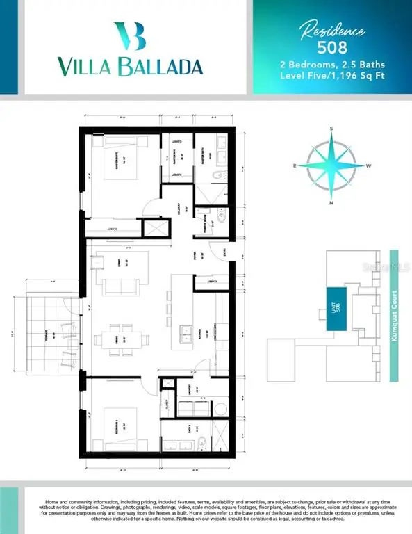 Under contract-accepting backup offers. PreConstruction. Introducing Villa Ballada - the third in our series of extraordinary contemporary architectural designs in the Rosemary District by local award-winning architects, Halflants + Pichette. Villa Ballada follows our first two projects by Dunn Hospitality Group - Zahrada and Zahrada 2, just a half block away. 22 residences and two retail units presenting unbelievable opportunity to choose from 21 different floor plans, each offering its own unique feel, and desirable to many with lifestyle all on one level. Wide-open foyer, spacious designer kitchens with breakfast bar, and welcoming dining and living rooms are the main features in all 21 designs. In this #508 penthouse condo with two full bedrooms, two baths and 1,196 square feet, there is a spacious balcony facing west from which to enjoy Sarasota’s spectacular sunset and city lights! Additionally, the beautiful swimming pool/courtyard will cool you down on those hot summer days. Secure lobby and parking garage with assigned parking and optional EV charging stations keep you safe and sound. But in the end, the architecture, the location where you can experience a myriad of Sarasota’s downtown delights, such as delectable culinary opportunities, arts and culture, Florida Studio Theatre, Sarasota Opera House, Westcoast Black Theatre and the farmers market, Whole Foods close by, the John Ringling Bridge, Marina Jack and the Sarasota waterfront. The new construction techniques, premium finishes and craftsmanship rule the day. You must come experience Villa Ballada, as you won't be disappointed. Remember we are only four blocks away from our incredible new “the Bay Sarasota” 53-acre bayfront park underway for everyone who frequents and delights in Sarasota. Your new condo is available from $840,000 to $1,840,000 with two-, three- and four-bedroom designs. Completion dates - Spring 2024. See you soon! Low HOA fee includes insurance, management fees, building maintenance, manager, annual exterior window cleaning, water, sewer, trash and exterior pest control.