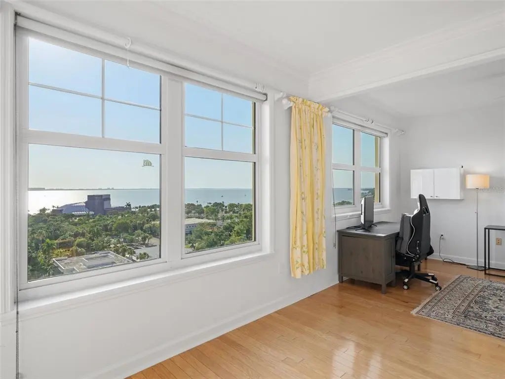 Discover upscale living in this beautifully updated condo, featuring panoramic views of the bay and hardwood flooring. Step out onto your private balcony to enjoy mesmerizing sunsets and expansive views of Sarasota Bay. This residence is part of The Renaissance, a community known for its rich amenities and luxurious lifestyle. Indulge in the resort-style pool with lap lanes and a jet spa, or gather in the club room complete with a kitchen, library, fireplace, and TV. Maintain your wellness routine in the state-of-the-art fitness center, yoga room, and two serene massage rooms. The building also offers a business center, conference room, multimedia room, and secure bicycle storage. Hosting guests is effortless with two exclusive guest suites available for daily rental. Safety is paramount with 24-hour security, a manned front desk, and secure parking for residents. Exceptionally located in Sarasota’s cultural arts district, The Renaissance is directly across from The Bay—a vibrant 53-acre waterfront park offering kayak rentals, scenic paths, and regular events. It’s also just steps away from the iconic Van Wezel Performing Arts Hall. Nearby, find downtown’s exquisite shops and restaurants, along with convenient access to Whole Foods, Publix, Lido Beach, the Marina, Selby Gardens, and St. Armand’s Circle. Experience the best of Florida living at The Renaissance.