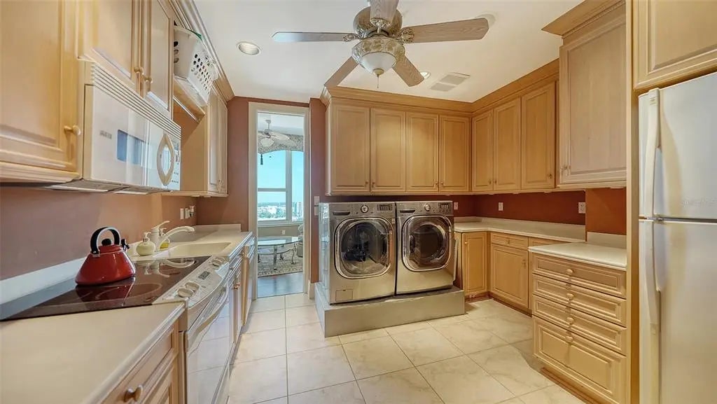 - AppliancesBuilt-In Oven, Cooktop, Dishwasher, Disposal, Dryer, Electric Water Heater, Microwave, Range Hood, Refrigerator, Trash Compactor, Washer, Water Filtration System, Wine Refrigerator