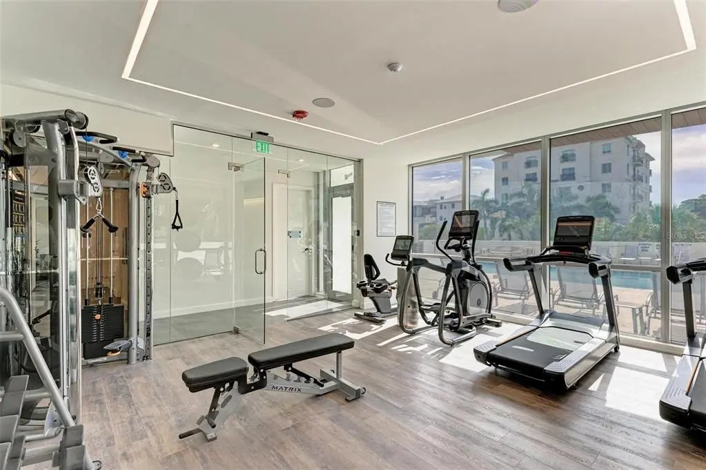 "SELLER SAYS BRING ANY OFFERS"--. Step into Unit 402 at The Evolution, a luxurious condo nestled in the Golden Gate Point neighborhood in the heart of Sarasota. This fourth-floor residence spans 2,314 square feet of refined living space, offering 3 bedrooms, 3 bathrooms and a 2 car garage. The spacious open-concept living area presents breathtaking bay views and high-end upgrades, including Italcraft custom cabinetry, a full lighting package, and floor-to-ceiling impact-resistant windows for a seamless blend of elegance and resilience. This modern two-tone kitchen is perfect for both everyday living and entertaining, providing all the essentials for crafting culinary masterpieces. Outfitted with premium Sub-Zero and Wolf appliances, meal preparation becomes an enjoyable experience, while the induction cooktop ensures precise, energy-efficient cooking. The kitchen's aesthetic is further enhanced by a sleek quartz backsplash and a quartz waterfall island, which serves as a focal point for gatherings and casual dining. Just beyond, a spacious balcony with breathtaking views invites you to enjoy outdoor living and relaxation. The primary bedroom offers a serene retreat, a luxurious bathroom featuring custom cabinetry, an shower, and a standalone bathtub with city views. The two additional bedrooms, one with an en-suite bath, are perfect for family or guests. Additional conveniences include an in-unit laundry room and generous storage space throughout. The Evolution, home to just 20 exclusive condos, offers incredible amenities. When it's time to unwind, head to the rooftop sunbathing deck with a covered outdoor kitchen and barbecue area – the perfect spot for entertaining with stunning 360 views of the downtown and the bay. The clubhouse offers a pool table, sauna, and meeting rooms, providing spaces for both relaxation and productivity. The private concierge service is always ready to assist, ensuring you have access to entertainment and convenience at your fingertips. Each residence comes with a two-car garage. Some of the additional features include a quick-charging station for electric cars, an on-site car wash, and a grooming studio for your pets. Experience the ultimate in luxury living at The Evolution, where upscale amenities and stunning views of downtown Sarasota and the bay await. Embrace the vibrant lifestyle that comes with living in this remarkable community, where every detail is designed to enhance your quality of life.