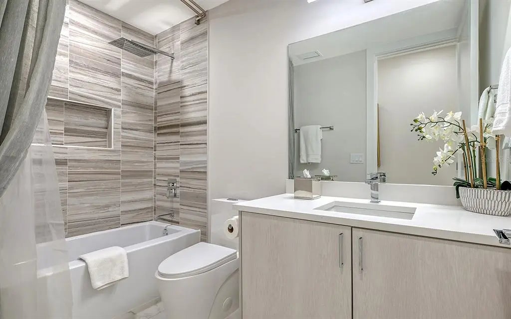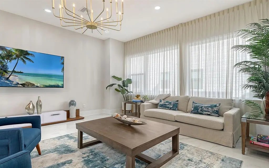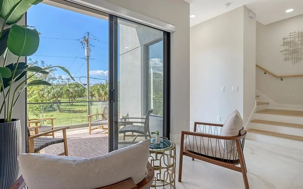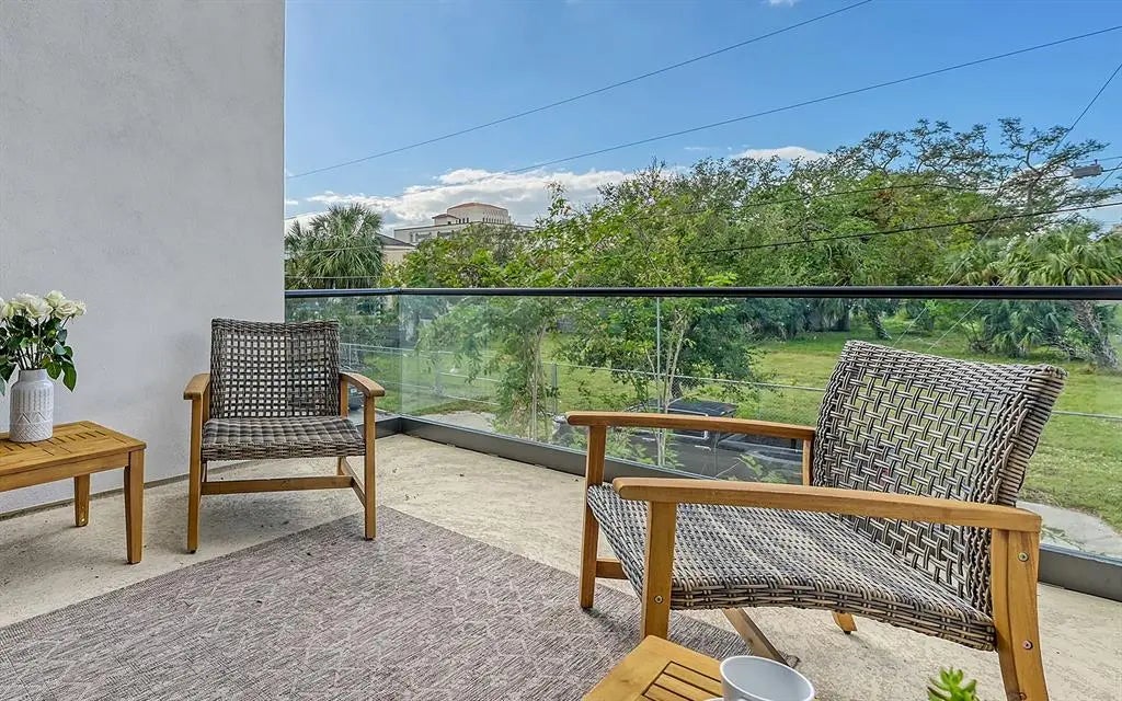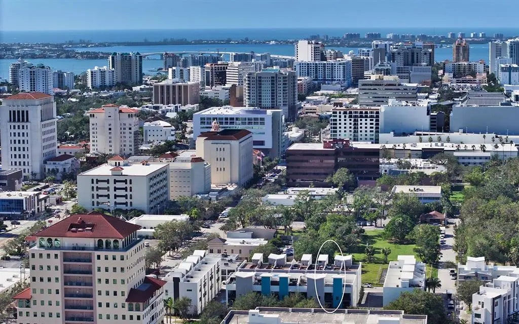 Nearly new, four-bedroom townhouse in Sarasota’s uptown district. Outstanding location on upper Main Street close to everything that makes Sarasota such a great place to live and visit. Walk to galleries, cafes, restaurants and boutiques. Just minutes to beaches, golf, hospital, airport and world-class cultural venues. Next to northern terminus of Bay Runner trolley with complimentary service to downtown, St. Armands Circle and Lido Beach. Dressed to impress with designer-selected finishes, this 2,763-square-foot residence comes turnkey furnished. Move right in and swoon over the alluring good looks in every detail. The smart, four-level floor plan features double-concrete construction, high ceilings, private elevator, eight-foot interior doors, energy-efficient systems, hurricane-rated impact windows, multiple balconies, finished rooftop, and parking for four vehicles in the two-car garage plus attached two-car carport. Now, for a quick floor by floor tour. The first level has a private guest suite. The main second level features an open floor plan with kitchen, dining and living. The kitchen is a delight with sophisticated European cabinetry, quartz countertops, under-cabinet lighting, center island with waterfall feature, and high-end Samsung and Bosch stainless steel appliances. The third level houses three bedrooms and two baths, including the primary suite with an outdoor balcony, walk-in closet and luxe en-suite bath. The fourth level is a finished rooftop designed for outdoor living. It has various gathering areas, an outdoor kitchen, jetted spa and glass railing with city view. The location, the floor plan, the decor, the turnkey furnishings. Indulge in an urban lifestyle just moments from Sarasota’s cultural charms.