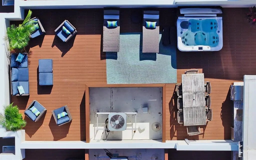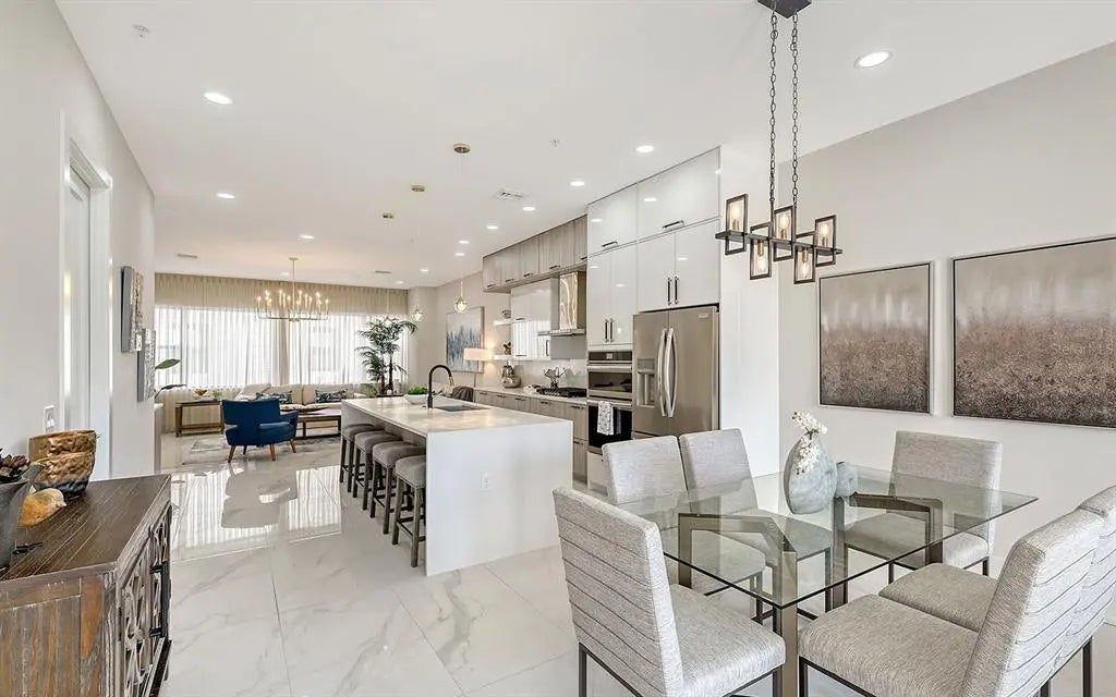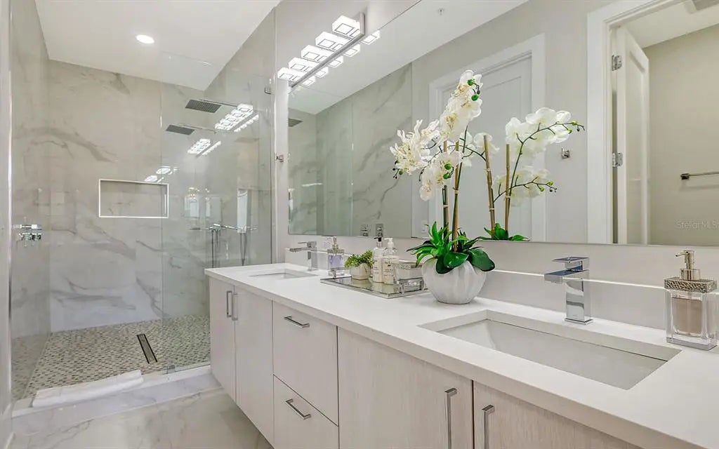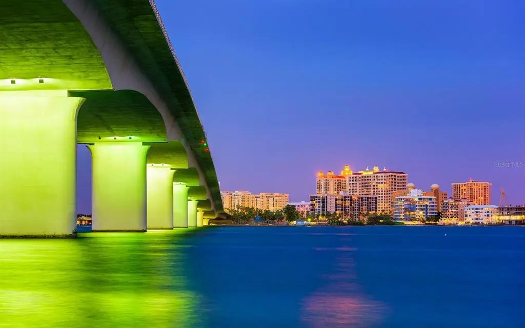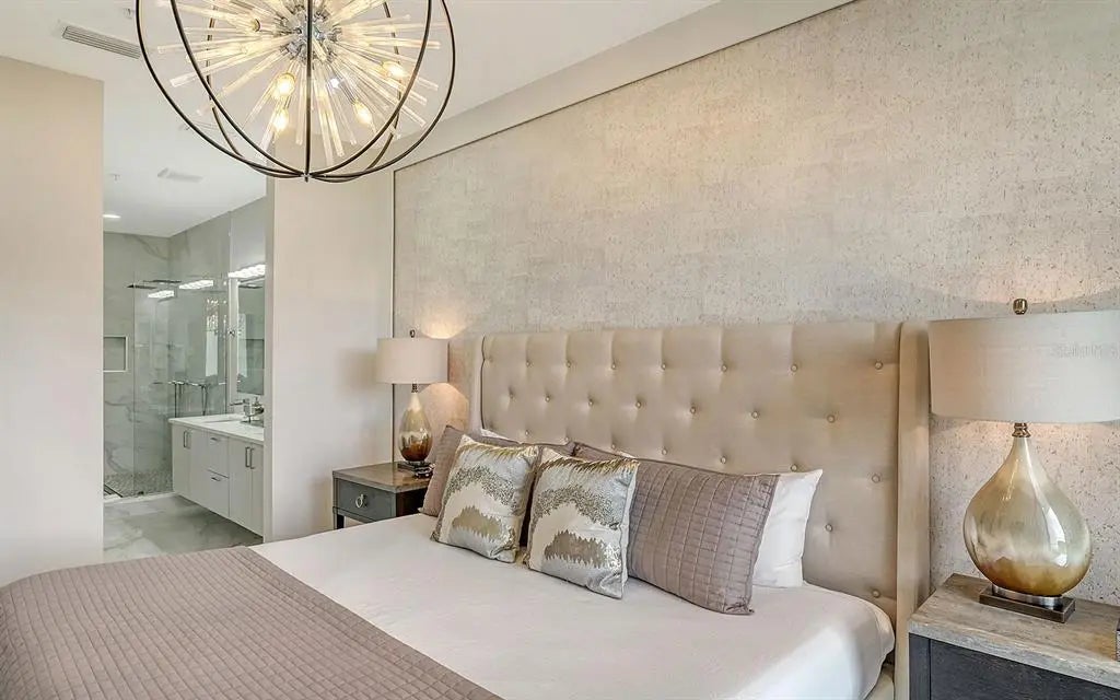 Nearly new, four-bedroom townhouse in Sarasota’s uptown district. Outstanding location on upper Main Street close to everything that makes Sarasota such a great place to live and visit. Walk to galleries, cafes, restaurants and boutiques. Just minutes to beaches, golf, hospital, airport and world-class cultural venues. Next to northern terminus of Bay Runner trolley with complimentary service to downtown, St. Armands Circle and Lido Beach. Dressed to impress with designer-selected finishes, this 2,763-square-foot residence comes turnkey furnished. Move right in and swoon over the alluring good looks in every detail. The smart, four-level floor plan features double-concrete construction, high ceilings, private elevator, eight-foot interior doors, energy-efficient systems, hurricane-rated impact windows, multiple balconies, finished rooftop, and parking for four vehicles in the two-car garage plus attached two-car carport. Now, for a quick floor by floor tour. The first level has a private guest suite. The main second level features an open floor plan with kitchen, dining and living. The kitchen is a delight with sophisticated European cabinetry, quartz countertops, under-cabinet lighting, center island with waterfall feature, and high-end Samsung and Bosch stainless steel appliances. The third level houses three bedrooms and two baths, including the primary suite with an outdoor balcony, walk-in closet and luxe en-suite bath. The fourth level is a finished rooftop designed for outdoor living. It has various gathering areas, an outdoor kitchen, jetted spa and glass railing with city view. The location, the floor plan, the decor, the turnkey furnishings. Indulge in an urban lifestyle just moments from Sarasota’s cultural charms.