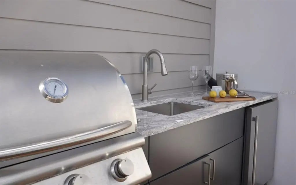 - Exterior FeaturesBalcony, Irrigation System, Lighting, Outdoor Grill, Outdoor Kitchen, Sidewalk, Sliding Doors