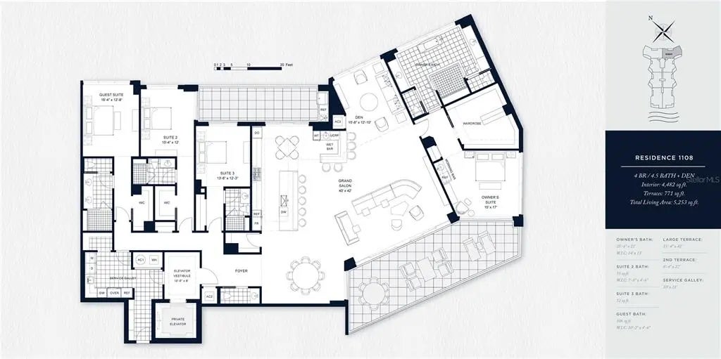 One or more photo(s) has been virtually staged. Under Construction. The Rosewood Residences, Lido Key is the first collaboration between Rosewood and a developer for a stand-alone residential condominium bearing the prestigious Rosewood name. Offering a limited collection of 65 stunning private residences located on 3.5 acres of one of the most treasured beaches on the West coast of Florida with 235 feet of beach frontage. The 11-story design by Miami based Swedroe Architecture with interiors spaces thoughtfully designed by Lillian Wu Studios of NYC. Offering 24-hour concierge, valet parking and bespoke owner services by Rosewood Resorts. Residence #1108 features 11’ ceilings, 4 bedrooms, 4.5 baths plus den with 4,482 square feet perfect for entertaining. Dramatically organized around an expansive island and an inviting full size wet bar warmed by sunny southern exposure with city and bay views to the East. As the private elevator doors open to the grand salon, the abundance of light and floor to ceiling windows provide a spectacular view of the Gulf of Mexico. Three guest ensuite bedrooms plus a spacious den ensuring owners and guests privacy. The Owner’s suite continues the views even further, with a full wall of floor to ceiling windows and glass door leading out to your expansive terrace. Imagine waking up to this view and enjoying a cup of coffee from the morning bar without having to leave your owner’s suite. No detail overlooked in the expansive kitchen Wolf, Sub-Zero, Waterworks plumbing fixtures, Rocky Mountain hardware and Irpinia cabinets with a multitude of finish choices. Grab your favorite vintage from your Sub-Zero wine refrigerator as the chef in your life creates their masterpiece on the outdoor summer kitchen with built in gas grill. The residence is a perfect location for entertaining and offers a separate service galley with a second refrigerator, oven, and dishwasher, a perfect space for catering or a dinner prepared by your onsite chef and delivered by the in-residence dining team. The 46,900 square foot amenity level offers an intimate, private club atmosphere surrounded only by family and friends. The spaces are perfect for gathering or quiet escape. Only 65 owners, your experience will be as private as it will be luxurious. Lavish amenities include a private waterfront Bistro dining option, a world-class fitness center with options for private training and yoga, two outdoor pools, private cabanas, day beds, towels, food and beverage service. The wellness spa is a haven for relaxation with hot and cold plunge pools, salt and steam rooms and private massage and treatment rooms. The Club Lounge, serving morning coffee, is a wonderful place to start the day. The other amenities include an exciting game room with TV’s, bar, billiards, jukebox and game tables, a nine-seat private theater and six generously sized guest suites allowing owners’ family and friends to enjoy the pleasures of this private resort. The 3rd level pool terrace offers a Zero-edge swimming lap pool & spa with sun shelf, day cabanas and social seating. Fire pit terraces, bocce lawn, Butterfly & chefs garden. The Beach club with a Zero-edge swimming pool with sun shelves and day cabanas, chairs, towel and umbrella service also includes an outdoor pursuits program including kayaking and standup paddle boards. Rosewood’s “Enriched Living” creating experiences that are authentic, original, and deeply personal by offering impeccable service and unparalleled attention to detail. Private enclosed 4 car garage included.