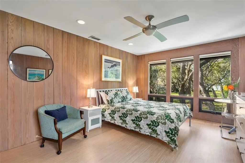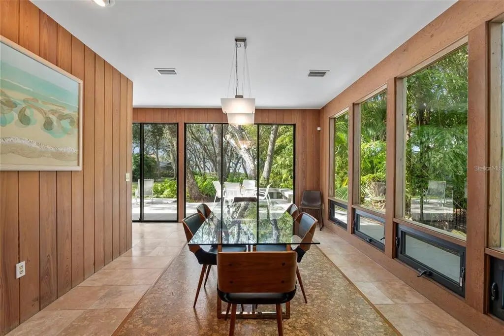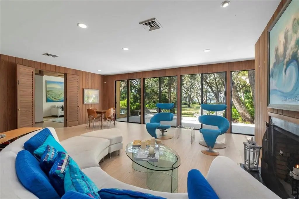 A Mid-Century Masterpiece Near the Beach & Village Discover this rare Mid-Century Modern gem, perfectly situated just moments from the beach and a short stroll to the shops and dining of Southside Village. Designed with timeless architecture and an enduring sense of style, this residence showcases dramatic cypress inside and out, blending warmth, character, and sophistication. Soaring ceilings and walls of glass bathe the interiors in natural light, creating a seamless connection to the lush surroundings. The expansive living room, anchored by a striking wood-burning fireplace, is both dramatic and inviting—an ideal setting for entertaining or quiet evenings at home. The open kitchen, designed for gathering, flows effortlessly to multiple outdoor patios and sitting areas. Upstairs, the private primary retreat offers a serene escape with its spacious bedroom, spa-inspired bath, and a dedicated laundry room for convenience. A second upstairs suite provides flexibility for family or guests. On the main level, an additional guest suite is complemented by a versatile bonus room—perfect as a home office, fitness space, or media room. Set on beautifully landscaped grounds with layered gardens and outdoor living areas, this home embodies the perfect balance of elegance and tranquility. Rarely does a property of such architectural significance and modern livability come to market.