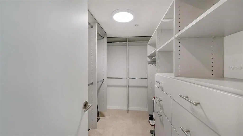 One or more photo(s) has been virtually staged. Direct Bayfront living in the heart of Sarasota at Condo on the Bay. This fully renovated 2 bed/2 bath residence features beautiful panoramic views of the Sarasota Bayfront with breathtaking sunsets over LBK and Ringling Bridge. Step into the inviting Great Room – greeted by a wall of impact glass floor-to-ceiling sliding doors that seamlessly blend the outdoors in, opening to a spacious balcony overlooking one of two residents pools, just steps from one of the long piers and boat slips. Interior features include White Oak engineered hardwood flooring flowing throughout the Main Living space, complemented by custom built-in cabinetry and a dry bar with a wine refrigerator for easy entertaining. A chef’s delight, the modern kitchen features Elite Woodwork of Sarasota Cabinetry, stainless steel appliances including an induction cooktop and built-in wall oven and microwave, quartz countertops, Walnut wood backsplash, built-in pantry, and breakfast bar for casual dining. A conveniently located laundry closet with full-size stackable front-loading washer and dryer completes the kitchen. A true oasis, the master suite has serene water views, remote controlled Hunter Douglas shades, and plenty of storage space with a large walk-in customized closet plus a full entry wall of built-in cabinetry. The updated en-suite bathroom features dual floating vanities, modern floor-to-ceiling tile, a walk-in shower with frameless glass enclosure and multiple shower heads. The generously sized secondary bedroom boasts double built-in closets and a secondary bathroom with a floating vanity, walk-in shower with a frameless glass enclosure, and a built-in linen closet. New Ruud A/C in March 2023. Set directly on Sarasota Bay, the highly sought after community offers a lifestyle of sophistication and serenity. A range of amenities include staffed 24-hour security gated guardhouse, “sky lobbies” located on a number of floors throughout, two resort-style pools overlooking the bay, two fitness centers, tennis courts, pickleball courts, concierge services and boat/kayak docks with a fishing pier. This pet-friendly Tower II residence includes one assigned under-building parking space with secure access and storage. Just steps away from Sarasota Bay Park and the vibrant culture and arts scene of Downtown Sarasota, world-class dining, shopping and entertainment. A short drive to St. Armand’s Circle and Lido Beach. Don’t wait – it is time to experience a luxurious urban life from the 3rd floor of Tower II, in the Bayfront heart of Downtown Sarasota!