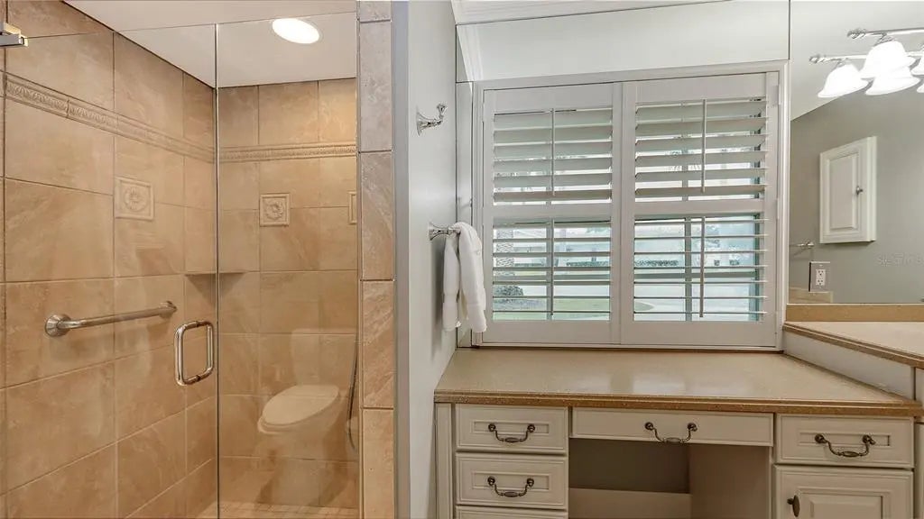 - Interior FeaturesCeiling Fan(s), Crown Molding, Eating Space In Kitchen, Kitchen/Family Room Combo, Open Floorplan, Primary Bedroom Main Floor, Solid Surface Counters, Split Bedroom, Walk-In Closet(s), Window Treatments