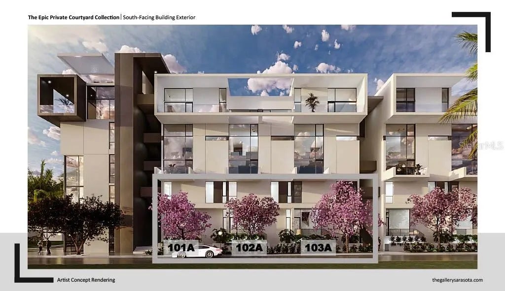 Under Construction. A flawless fusion of art and world-class architecture, The Gallery Sarasota is a boutique style condominium centrally located downtown 3-blocks from the bay, above floodplain with unparalleled proximity to restaurants, shopping, cultural venues, and the new 53-acre waterfront park. The iconic European design offers five distinct collections of light-filled residences that boast high-end Italian finishes, up to 26-foot ceilings, and full-height windows. The tranquil oasis of the private rooftop pool terrace and social lounge provides an elevated retreat for socializing, unwinding, and basking in sun drenched splendor while the vast two-room state-of-the-art fitness center and yoga studio provides an all-encompassing environment for a healthy lifestyle. Under Construction with LIMITED AVAILABILITY, The Gallery Sarasota offers a unique collection of residences you won’t find anywhere else. Private Courtyards, Penthouses, Open Staircases, and more! The best way to discover this exceptional property is to schedule a private site & showroom tour. Our Sales Gallery is conveniently located downtown at 625 S Orange Sarasota, FL 34236 (complete with models & finishing selections).