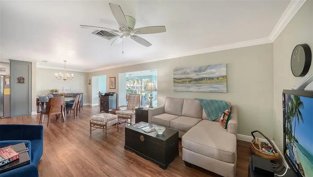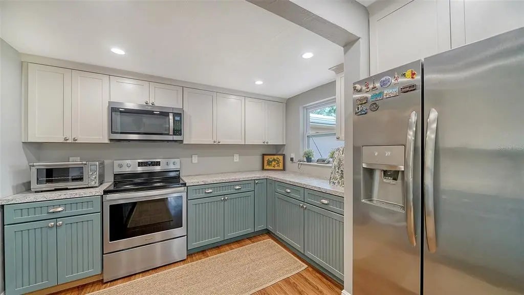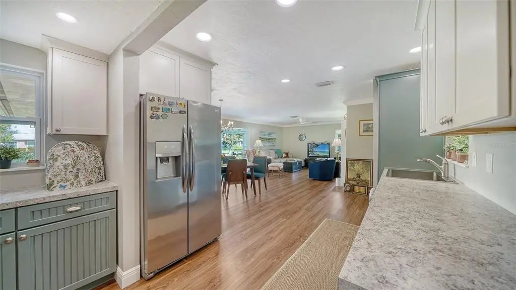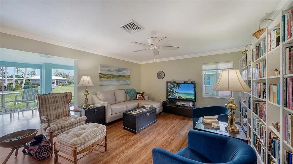 NEW roof has been installed, making this a great deal. This is a WOW from the moment you enter you will be impressed with this light & bright remodeled villa. Improvements include open kitchen, with stainless appliances, wood cabinets, canned lighting, beautiful barn doors, updated baths, window shades, electrical box, added surge protectors, A/C, replaced several windows, paint, newer ceiling fans, & water proof luxury vinyl flooring. Epoxy painted floor in garage and family room. This is a 55+ community with community pool & shuffleboard. Golf course nearby, shopping, banking, restaurants and just minutes to Siesta Key Beach. Sorry no pets or rentals.