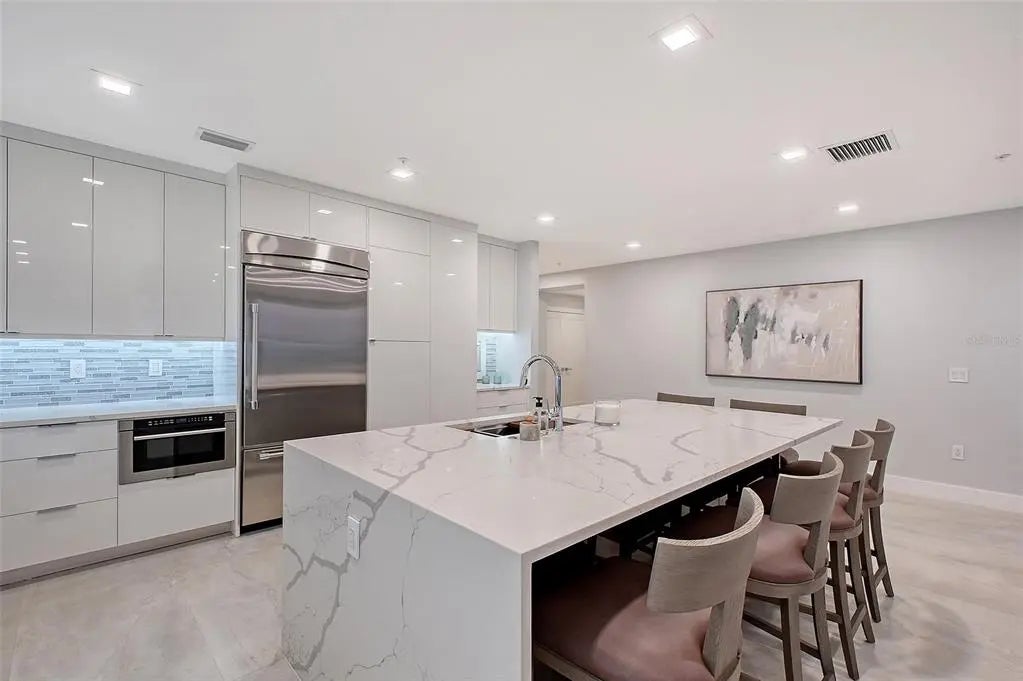 Discover Sarasota's Crown Jewel: WATERFRONT LUXURY REDEFINED Perched on the corner of the 4th floor at the exclusive Harbor View Condominiums, this stunning 2-bedroom plus den, 2.5-bath, some furnishings included in sale.* This recently remodeled residence is the epitome of coastal elegance. Prepare to be captivated by unobstructed, panoramic views stretching from the sparkling Sarasota Bay to the dazzling downtown skyline. A BOATER’S PARADISE Imagine stepping off your 38' boat onto your deep-water condo dock, complete with a newer 16,000 lb boat lift. The coveted deeded boat slip is your gateway to endless nautical adventures, positioning you at the heart of Sarasota's vibrant waterfront lifestyle. This is the only luxury condo with a deeded boat slip at this price point – this close to downtown Sarasota. LUXURIOUS LIVING SPACES Floor-to-ceiling windows flood the open-concept living area with natural light, creating a seamless blend of indoor luxury and outdoor splendor. The chef's kitchen is a culinary masterpiece, boasting: • High-end Thermador appliances, including a 36" gas range • Custom cabinetry and sleek stone countertops • Wine Fridge and Built-in water filter • Spacious island that seats 6 • Large format Porcelain tile flooring Unwind on your private balcony, where you'll witness breathtaking sunrises, marina activity, and the twinkling city lights beneath a canopy of stars. UNPARALLELED AMENITIES • Heated pool and spa overlooking the waterfront • Two deeded assigned parking spaces • Gated community of just 14 residences • Deeded Boat Dock and Slip with Lift • Additional outside locked storage • Security cameras in parking, dockside and lobby PRIME LOCATION Nestled on Golden Gate Point, you're just steps away from: • World-class museums and galleries • Downtown Shops and Restaurants • Luxury boutiques and fine dining • St. Armands Circle and beautiful LIDO BEACH • RECENT UPDATES: The building was redeveloped in 2007 and enhanced with $1.5M in updates in 2017; and finally, a new seawall, docks, renovated pool/patio in 2022, and a new roof in 2024. This residence stands as a testament to modern coastal living. Don't miss this rare opportunity to own a slice of Sarasota paradise – where every day feels like a luxury vacation. Your dream waterfront lifestyle awaits. Schedule your private showing today and prepare to fall in love with the very best of Sarasota living.