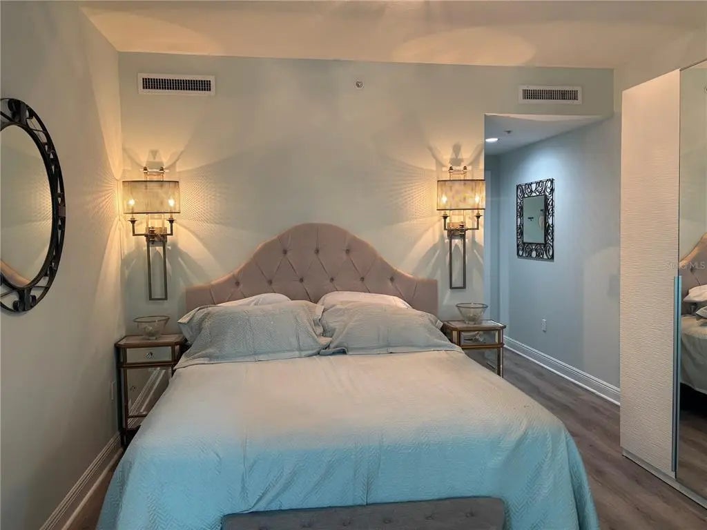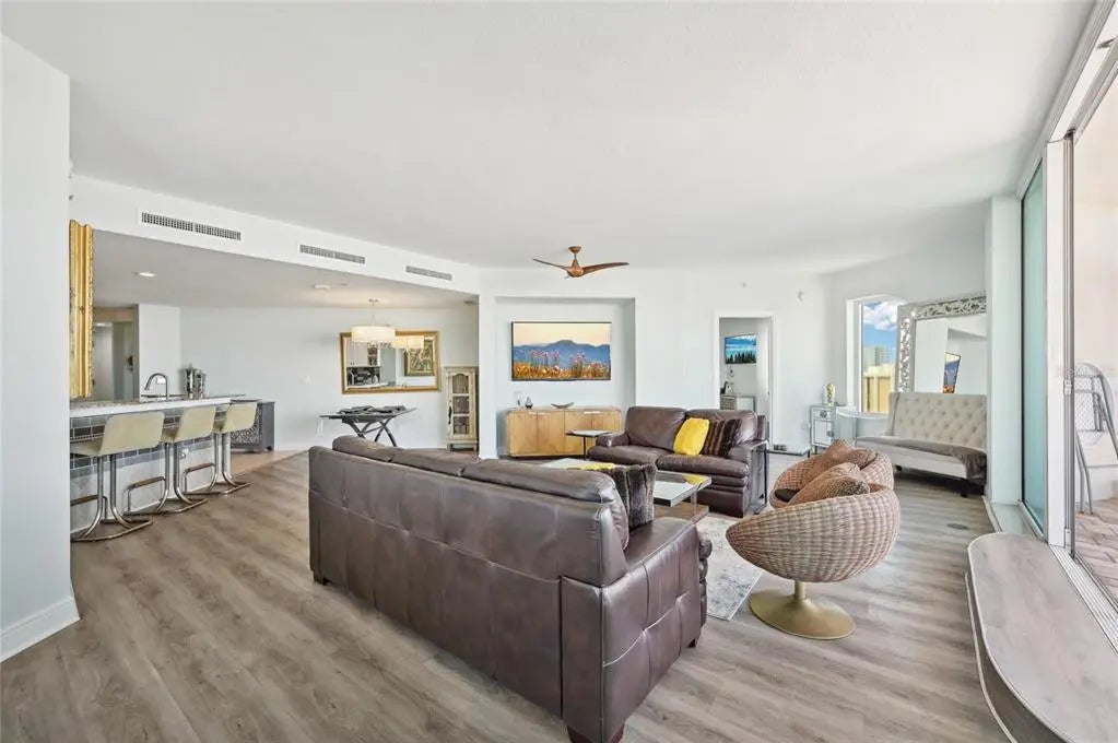 Priced under current Appraisal Report. Report available to qualified Buyers. Discover the ultimate in contemporary living with this rarely available northwest corner unit on the 10th floor of Rivo at Ringling. This iconic residence promises a luxurious lifestyle, boasting extensive concierge services and an amenity-rich level that includes a pristine pool, a state-of-the-art fitness center, and secure parking. Upon entering, you're greeted by a welcoming generous foyer that effortlessly guides the eye through the expansive living area. The highlight? An impressive 16-foot sliding glass wall that opens onto a stunning 20’ x 9’ terrace, showcasing enchanting views over the city, the islands, and verdant landscapes. Enjoy vistas of Main Street and beyond, admiring diverse architectural styles juxtaposed with tree canopies and water views. The panorama also stretches through Big Pass to the Gulf of Mexico, extending to Siesta Key to the south and northerly to Sarasota Bay. The open-plan great room is a delight, offering ample space for casual seating and formal dining, all while being immersed in the beauty of the outdoor scenery and the evening's twinkling lights. The master suite is a private haven, featuring a custom walk-in closet and an en-suite bath adorned with a double-size vanity, a granite countertop, a spacious walk-in shower surrounded by chrome-framed glass, and a luxurious soaking tub. The thoughtful split-bedroom design offers additional seclusion, with two additional bedrooms providing captivating views of the city and water. A full bathroom boasts a shower/tub combination accented with a quartz countertop and a chic vessel sink. Abundant closet space and a dedicated full-size laundry room add to the well-planned functionality of the home. Recent upgrades include a new Rheem water heater ( 2022) and a Trane air conditioner (2024). The property's secure gated parking garage with two private spaces ensures stress-free parking. Rivo at Ringling delivers vibrant urban living within an architectural masterpiece built around an atrium bathing the interiors in natural light and adorned with lush indoor landscaping. Positioned perfectly to enjoy all that downtown Sarasota has for you to enjoy, while remaining a serene escape from the bustle, it is only a quick free trolley ride to stunning beaches and within a quick walk to fine dining, boutique shopping, and entertainment. On the third floor, residents are treated to luxurious amenities including a heated pool and spa with sundeck, a BBQ area, a modern gym, a social room, friendly on-site management, a convenient bike room, and a kayak rack. Redefining urban sophistication, Rivo at Ringling stands as a testament to iconic style, with fully funded reserves ensuring peace of mind and a vibrant social calendar that enriches community life.