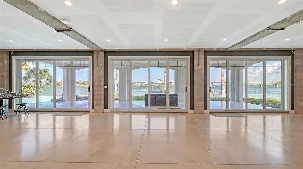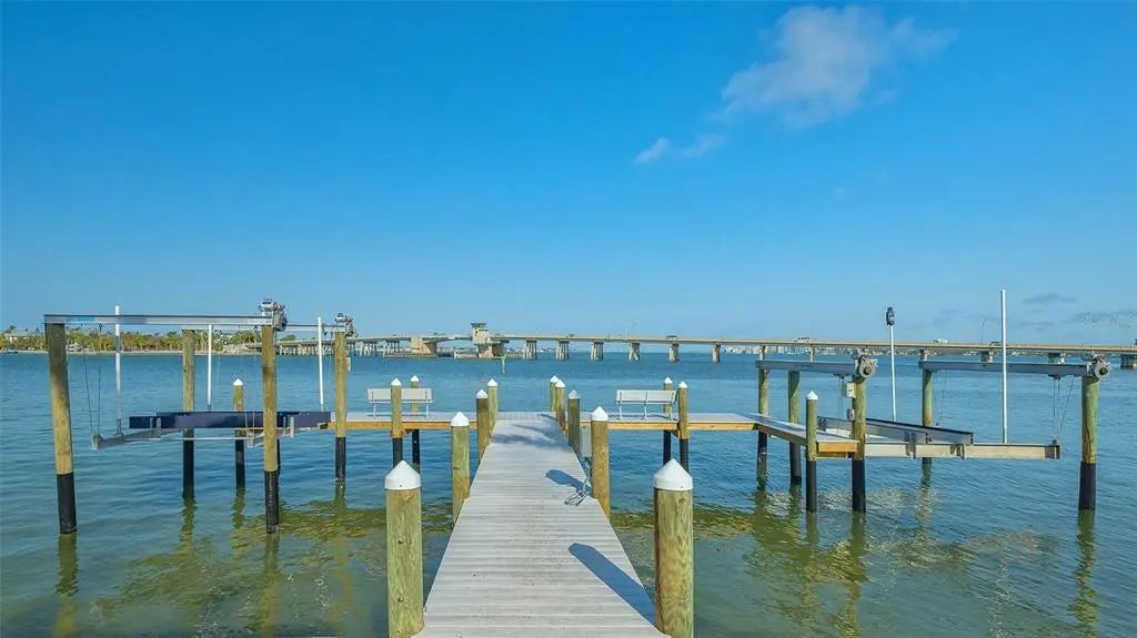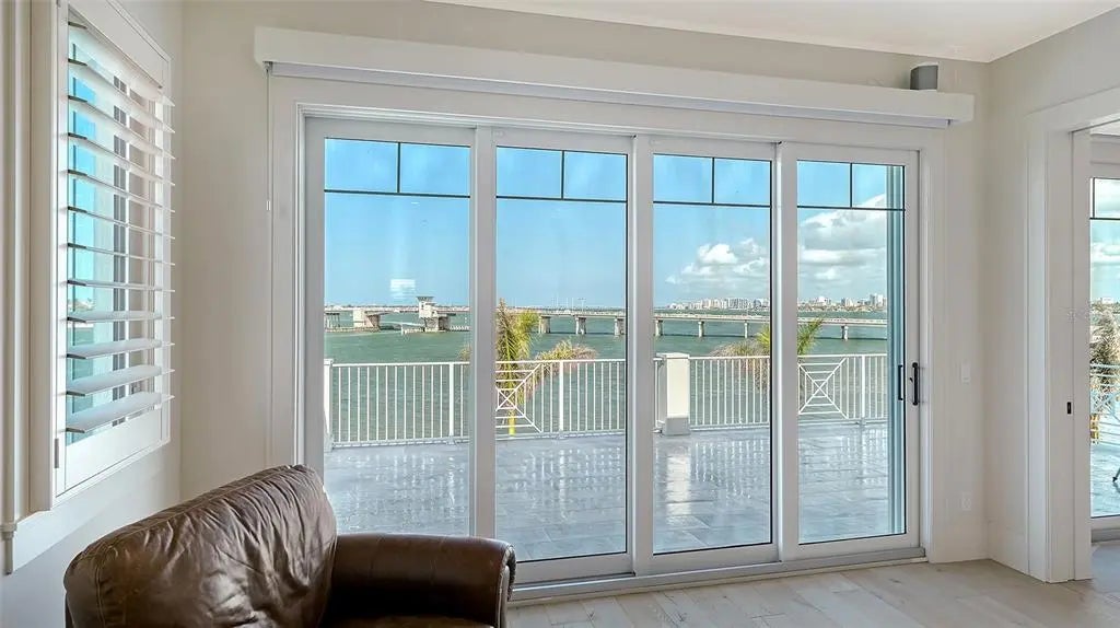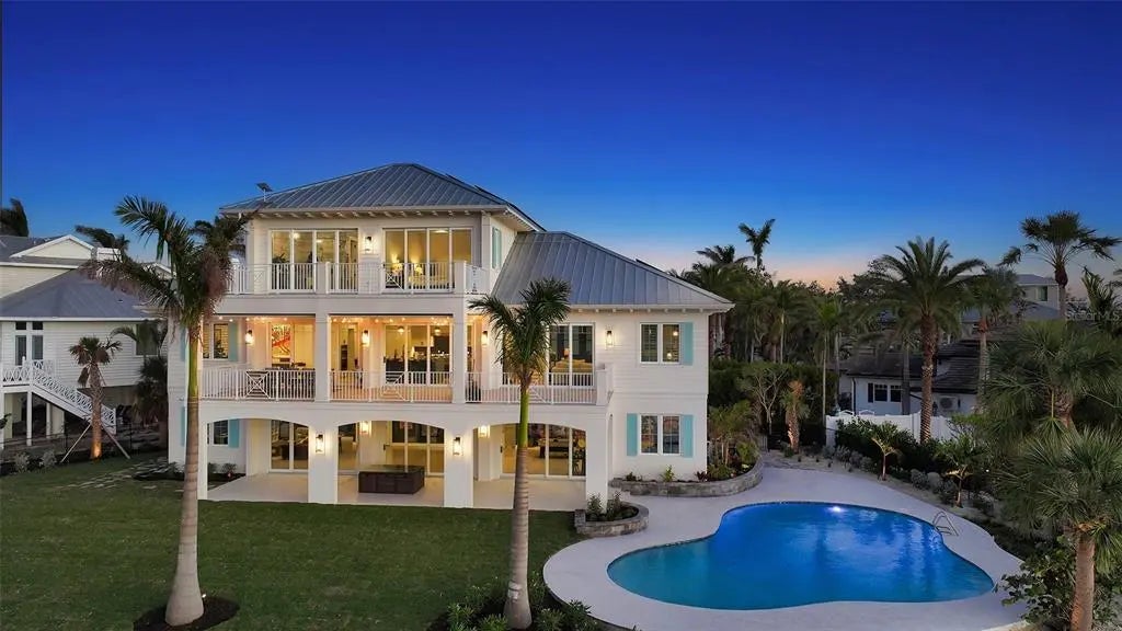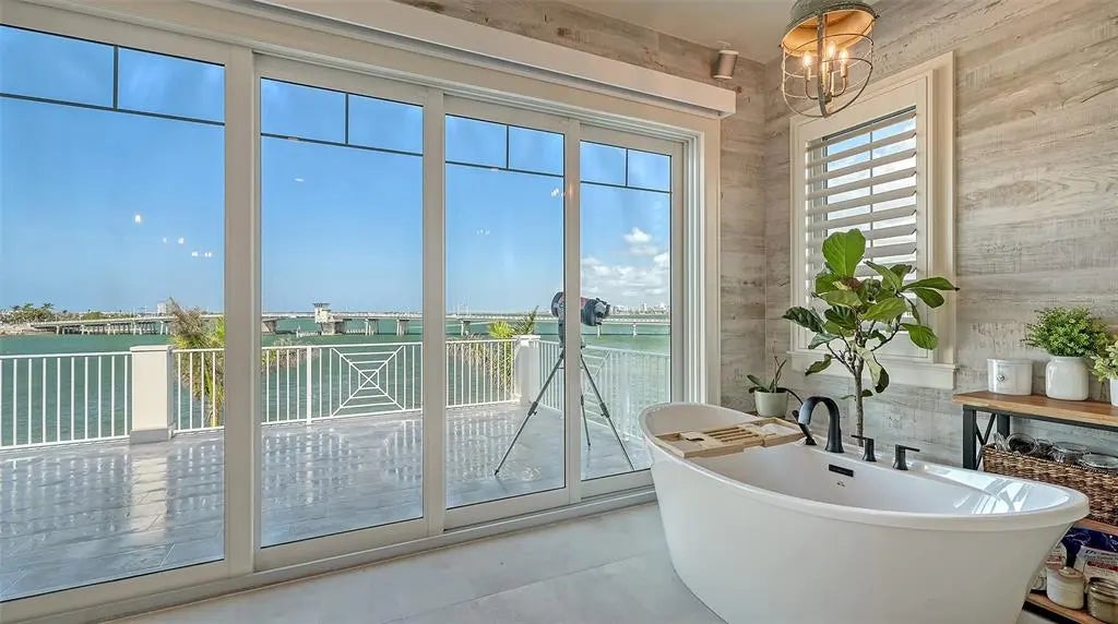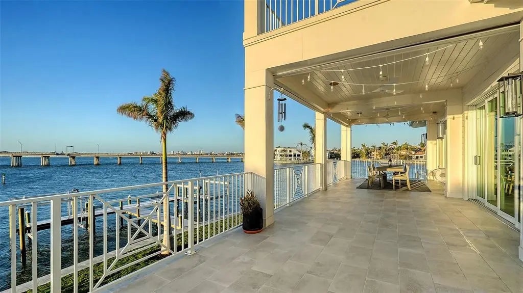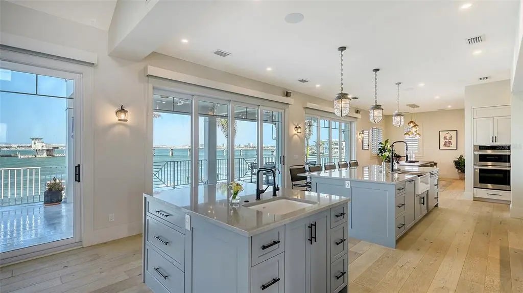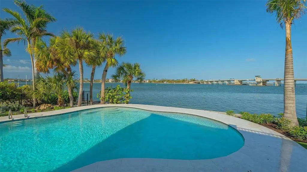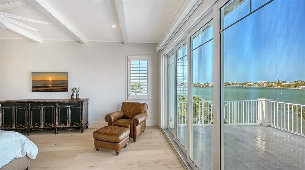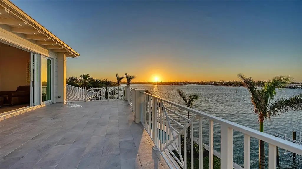Experience the epitome of waterfront living in the sought-after San Remo neighborhood, ideally positioned at the tip of the peninsula. This exceptional 2022 custom-built residence offers sweeping panoramic views of Sarasota Bay and the city skyline, providing an unparalleled backdrop for everyday living. Boasting 4,359 square feet of thoughtfully designed living space, this home features 4 ensuite bedrooms, powder room, two expansive terraces, and a private study. The moment you step inside, you are greeted by breathtaking bay views through floor-to-ceiling windows and sliding glass doors that flood the space with natural light. The open-concept main level is designed for both comfort and style, with vaulted ceilings, unobstructed views and hardwood floors throughout. The chef’s kitchen is a true highlight, complete with a large island offering seating, a hidden pantry, custom cabinetry and designer appliances. The kitchen opens to a large covered terrace, featuring an automated screen system to seamlessly blend indoor and outdoor living. The upper level is dedicated to the owner’s suite, offering a spacious bedroom, a spa-like bathroom, a private terrace, and a separate area ideal for a study or lounge. An elevator services all levels. The backyard is designed for ultimate relaxation and entertainment, featuring a large saltwater pool, a new dock with two boat lifts, new seawall and a generous lawn with panoramic water views. Additional features include solar panels with 3 Tesla Powerwalls and an oversized 3-car side-entry garage with epoxy flooring. Located just minutes from downtown Sarasota, Southside Village’s shops and restaurants, and the world-renowned Siesta Key beaches, this home is the perfect sanctuary for those seeking newer construction, convenience, and an unmatched lifestyle. Schedule your private showing today.