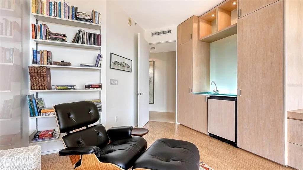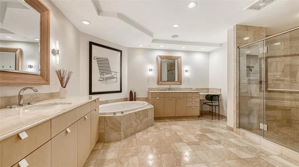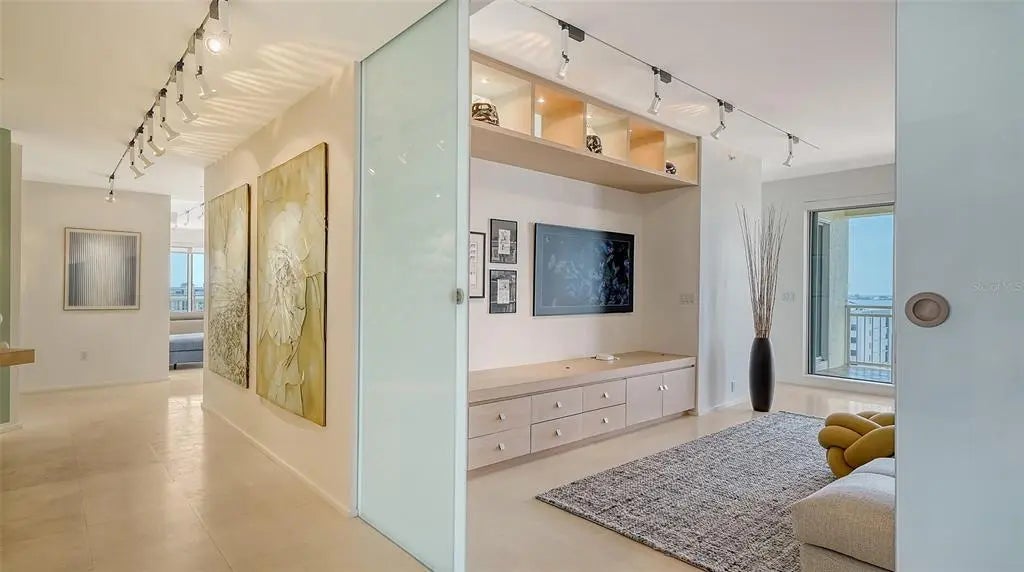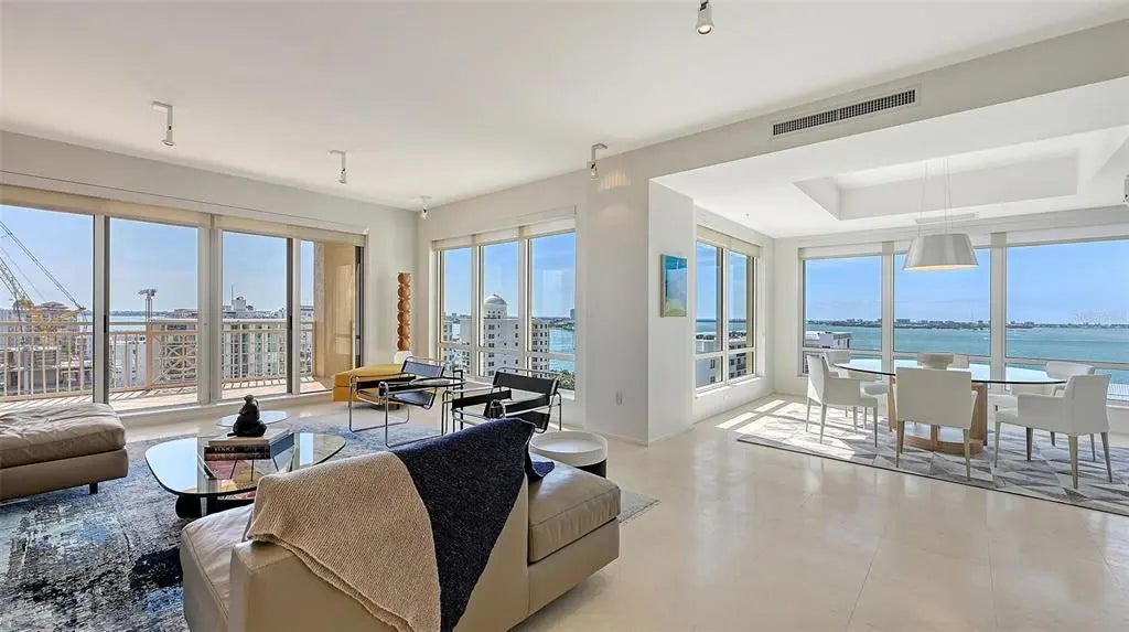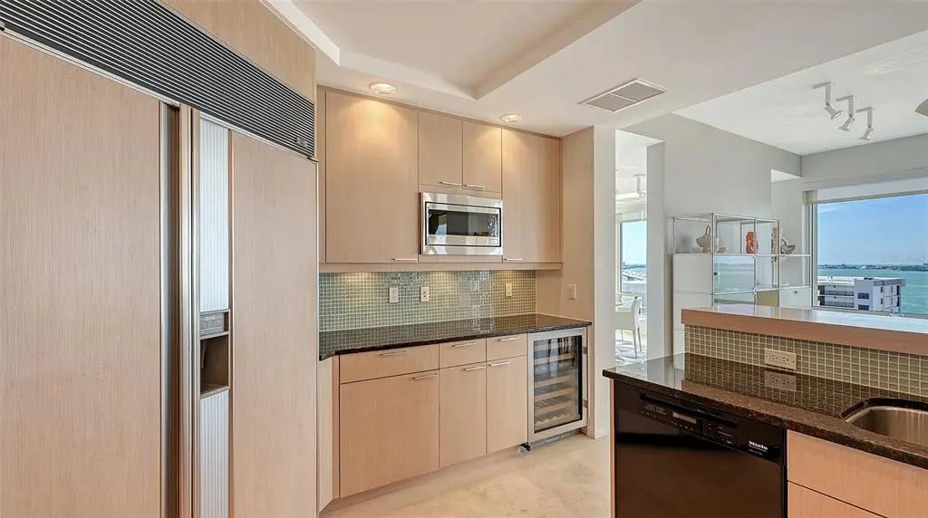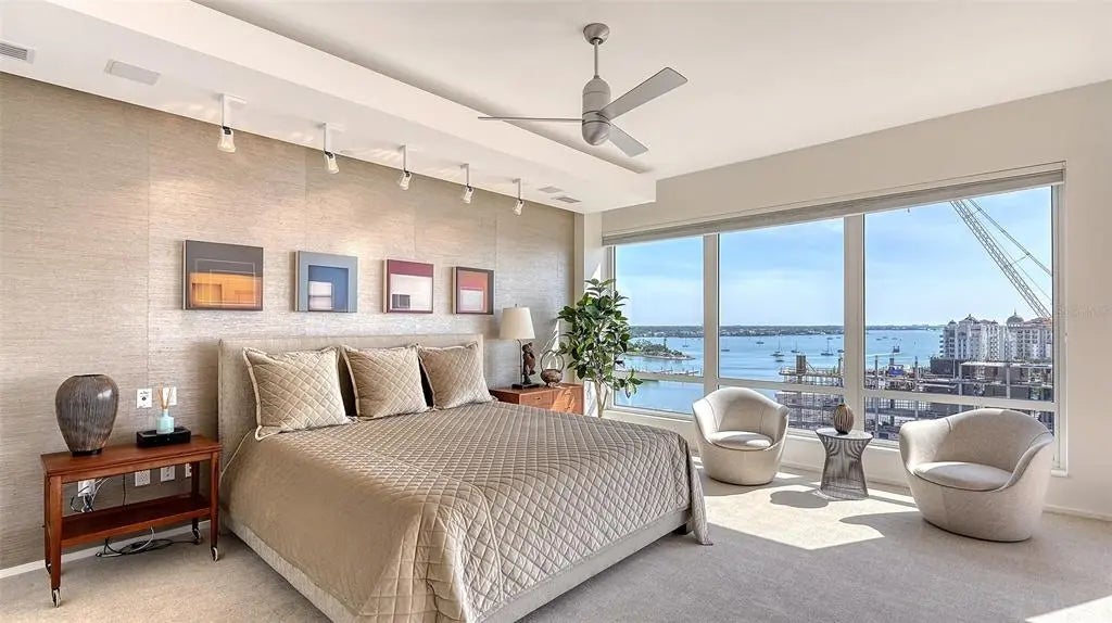 Experience unmatched elegance and world-class service in this exclusive Ritz-Carlton residence, where breathtaking views and luxury amenities define the ultimate lifestyle. Nestled near downtown Sarasota's vibrant cultural scene, this rare southwest corner home seamlessly blends sophistication, comfort, and contemporary design. Step off your private elevator into a meticulously curated space, where every room showcases sweeping vistas. Designed with modern finishes, clean lines, and natural materials, this residence exudes refinement. The coveted three-bedroom layout boasts two expansive terraces, inviting you to unwind while taking in spectacular sunset panoramas. Crafted with impeccable attention to detail, the luxurious interior features custom-built cabinetry, designer accents, and elegant bamboo and zebra wood finishes. Neutral travertine flooring flows seamlessly through the main living areas, enhancing the home's timeless appeal. A climate-controlled wine storage system accommodates over 200 bottles, perfect for collectors and entertainers alike. The gourmet kitchen is equally impressive, featuring an induction cooktop, premium stone countertops, a striking backsplash, and ample storage. The regal master suite offers a serene retreat, overlooking the iconic Marina Jack with its ever-changing waterfront scenery. Designed for both relaxation and grandeur, this private sanctuary provides the perfect escape. Residents enjoy an unparalleled array of Ritz-Carlton amenities, including two sophisticated social lounges, a private movie theater, a state-of-the-art fitness center with saunas, steam rooms, and a dedicated massage treatment space. The heated outdoor pool and spa are surrounded by lush tropical landscaping, while outdoor grilling and dining areas create the ideal setting for entertaining. Just moments from Sarasota's renowned performing arts venues, art galleries, pristine beaches, fine dining, and luxury shopping, this residence offers a lifestyle of sophistication and ease. More than just a home, it is a statement of prestige and refinement, where luxury knows no limits.