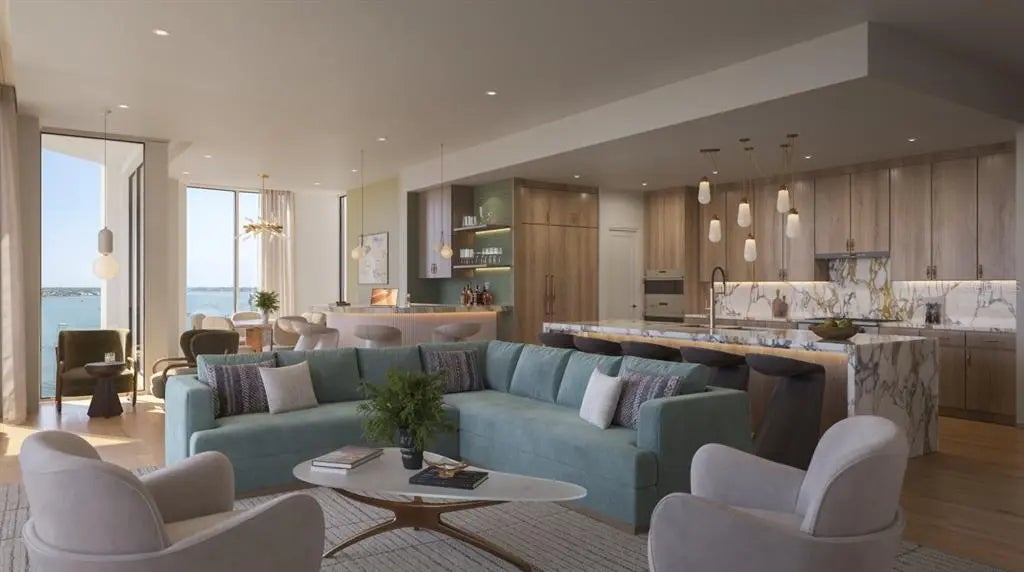 One or more photo(s) has been virtually staged. Pre-Construction. To be built. The attractions of Amara, diverse and extraordinary, know no equal. This begins with its Golden Gate address – for the Point is one of those rarest of natural wonders – enclave that looks across the bay and back to the city – once-in-a-lifetime views that are yours everyday. Amara offers a collection of 54 stylized residences with floor to ceiling glass windows throughout to take in the unobstructed views over Sarasota Bay. Floor Plans vary from 2,272 to 3,429 square feet of living space complete with spacious sunset terraces. Level two offers a very rare opportunity of only five one-of-a-kind terrace residences showcasing exquisitely private outdoor living spaces, with private pool and spa set above Amara’s lush esplanade and marina. Sophisticated design by MHK Architecture and DWJA Landscape Architects. An elegant and elevated interior design by Lillian Wu Studio, NYC. This thoughtfully designed residence offers a touch under 3,200 square feet of indoor/outdoor living space, among the most spacious of all the Amara floor plans. One will immediately appreciate that the kitchen, open-plan salon with the separate dining room and bar are unique to this plan. The terrace is expansive, as are each of the ensuite bedrooms. The private den will easily become a media or office space. Inside you will also find long gallery-like walls for the owner’s art collection. Residences are appointed with luxurious finishes including Wolf and Sub-Zero appliances, Gessi plumbing fixtures, Richelieu hardware, Neff cabinets and stone countertops with island waterfall and full height-backsplash. Outdoor summer kitchens include a built-in Artisan gas grill. Exceptional indoor and outdoor amenities include a breathtaking esplanade with infinity pool terrace, social and game room, private lushly landscaped marina and bayside terrace, kayak and paddleboard launch, fire table seating, intimate waterside seating area, bocce ball court, putting green, and dog walking area. The spacious state of the art fitness center offers Techno-gym equipment, hot and cold plunges, steam and sauna rooms, a yoga garden, massage treatment room and dual locker rooms. By the water, in the water, on the water. Whenever you wish. Wherever you want. This is the incomparable life Amara, unquestionably, Sarasota’s most exciting and remarkable residences, ever.