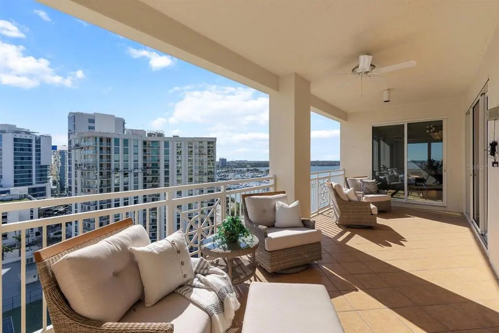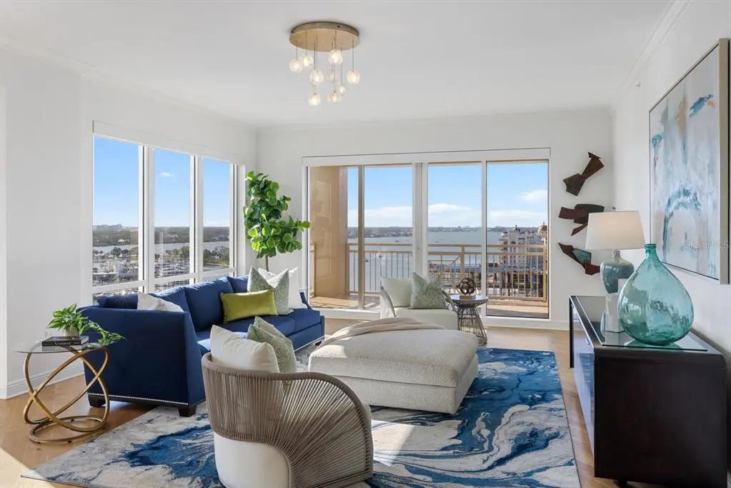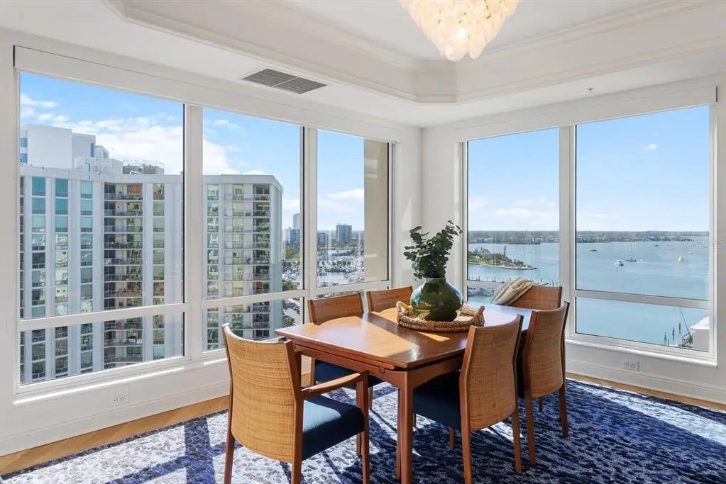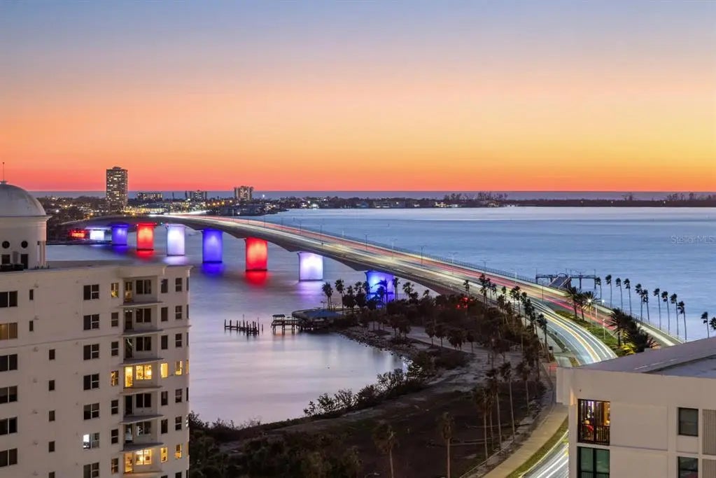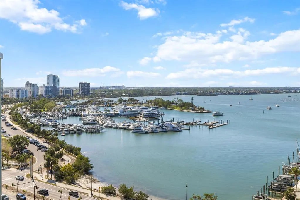 COME HOME TO RITZ-CARLTON TOWER RESIDENCE 1402 COUPLED WITH MAINTENANCE FREE SERVICES AND PANORAMIC VIEWS AFFORDING TRUE COMFORT AND LUXURY. Step of your private elevator into a fabulous home featuring the most superb views you will find of Sarasota Bay, Marina Jack, and The John Ringling Bridge along with the downtown Cityscape. This rarely available four bedroom, four bath open floor plan offers the most tasteful updated interior appointments throughout including white oak flooring in the main areas, an upgraded chefs’ kitchen with gorgeous hand selected granite counters. This is a Smart Home including motorized blinds throughout, a leak detection system, water purification system and EV Station wiring in the two generous parking spaces. The Lifestyle afforded each Owner is one of comfort and convenience with exemplary Ritz-Carlton services. The Friendly Ritz-Carlton Team is there for you 24 hours per day along with 24-hour in-Residence dining and exclusive Ritz-Carlton Tower amenities. THIS TOWER RESIDENCE 1402 IS AN ABSOLUTE MUST SEE!!
