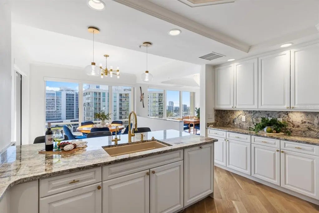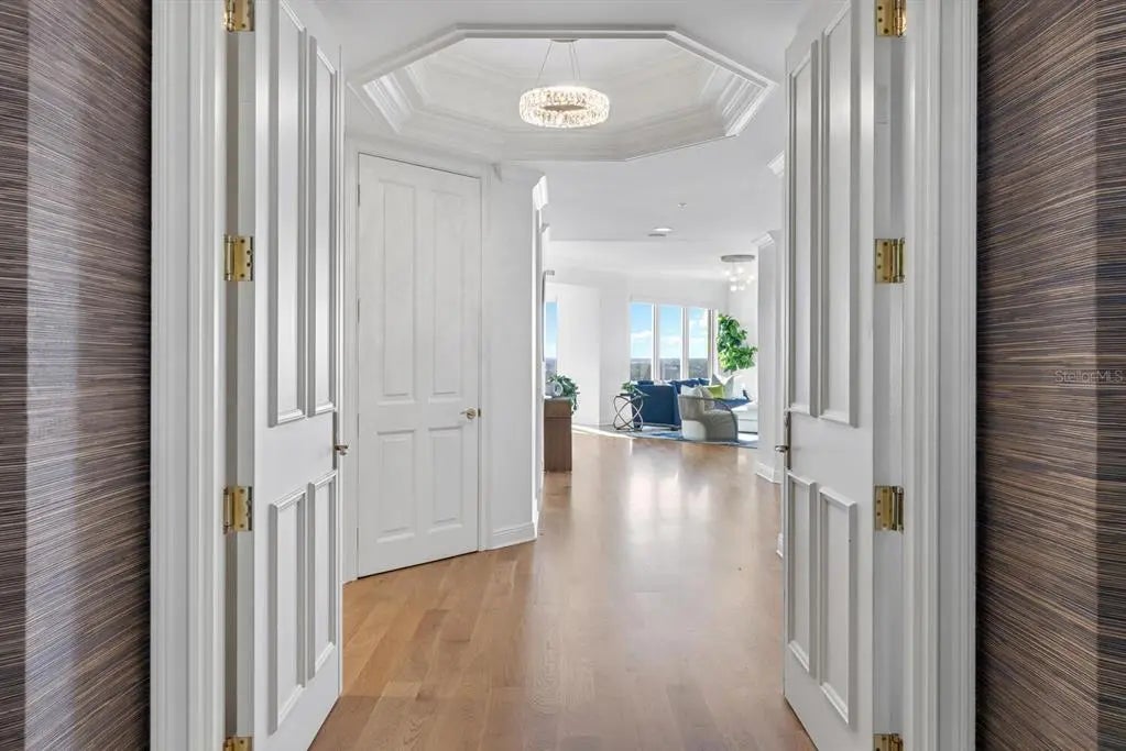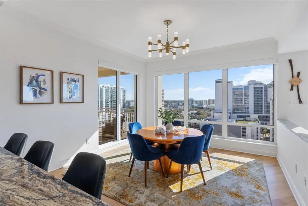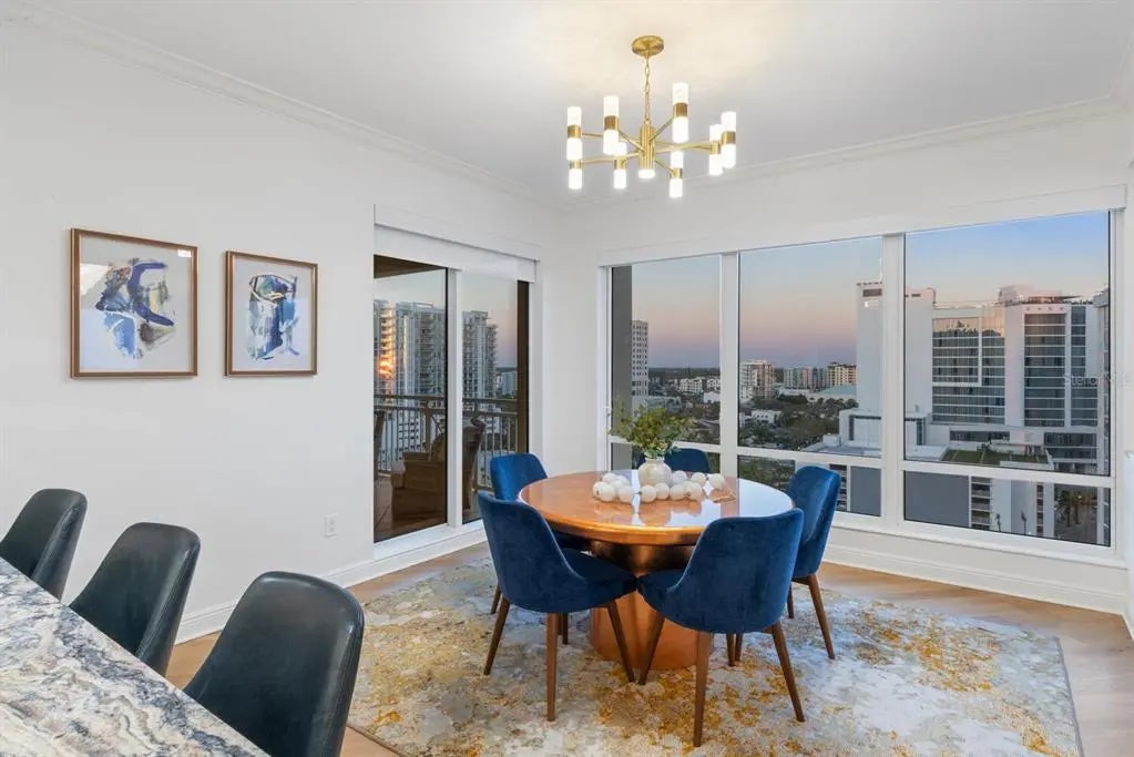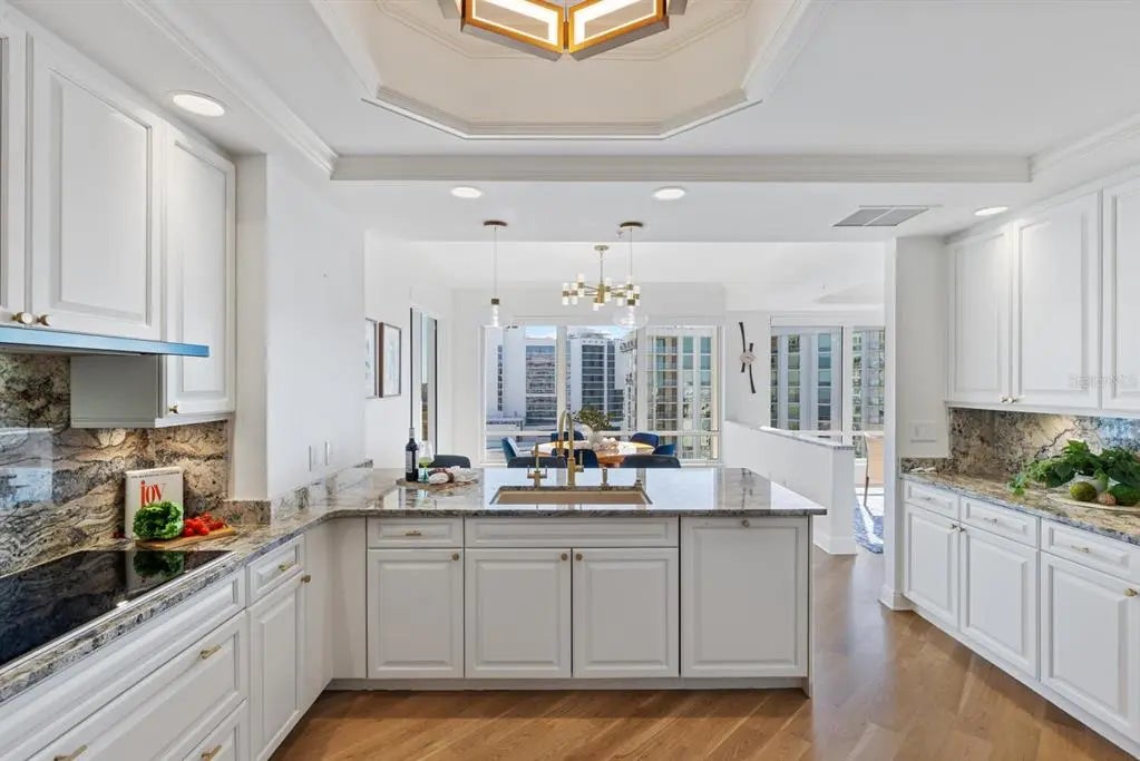 COME HOME TO RITZ-CARLTON TOWER RESIDENCE 1402 COUPLED WITH MAINTENANCE FREE SERVICES AND PANORAMIC VIEWS AFFORDING TRUE COMFORT AND LUXURY. Step of your private elevator into a fabulous home featuring the most superb views you will find of Sarasota Bay, Marina Jack, and The John Ringling Bridge along with the downtown Cityscape. This rarely available four bedroom, four bath open floor plan offers the most tasteful updated interior appointments throughout including white oak flooring in the main areas, an upgraded chefs’ kitchen with gorgeous hand selected granite counters. This is a Smart Home including motorized blinds throughout, a leak detection system, water purification system and EV Station wiring in the two generous parking spaces. The Lifestyle afforded each Owner is one of comfort and convenience with exemplary Ritz-Carlton services. The Friendly Ritz-Carlton Team is there for you 24 hours per day along with 24-hour in-Residence dining and exclusive Ritz-Carlton Tower amenities. THIS TOWER RESIDENCE 1402 IS AN ABSOLUTE MUST SEE!!