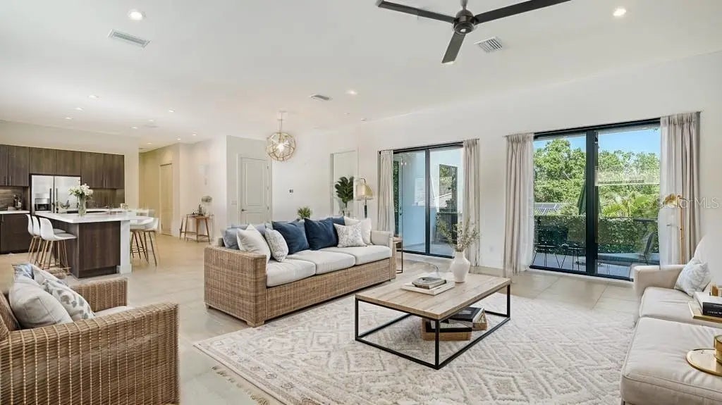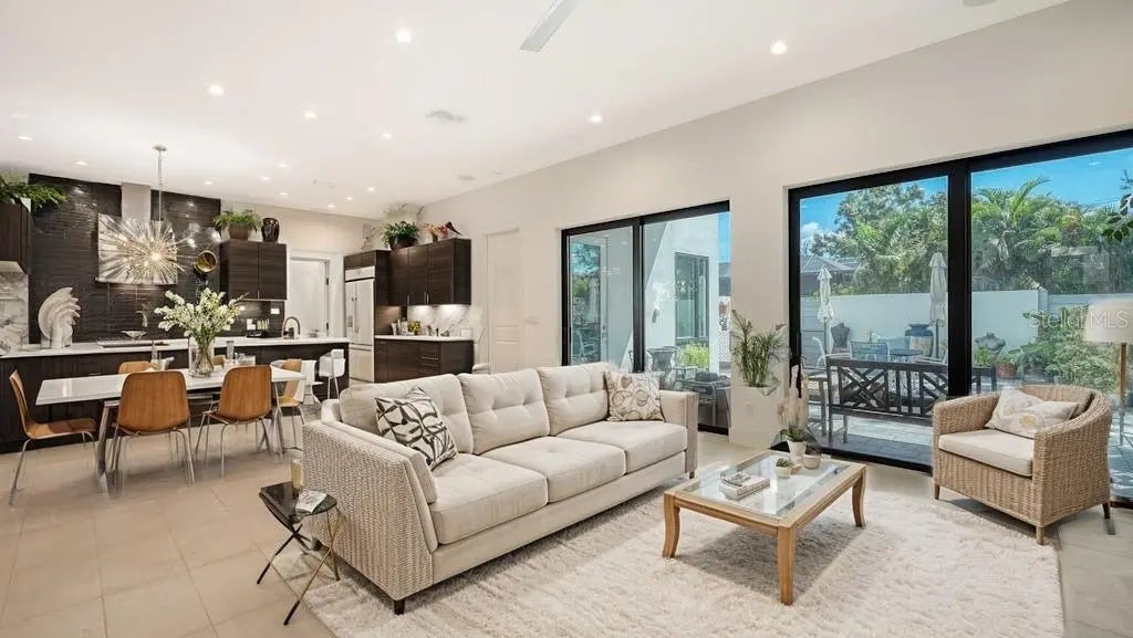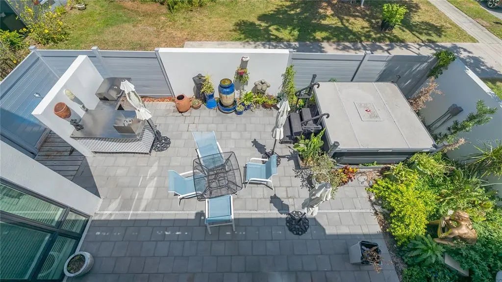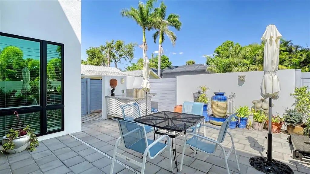 MAJOR $200,000 PRICE IMPROVEMENT on this 2023 DOWNTOWN SARASOTA DUPLEX IS NOW BELOW ASSESSED VALUE and ideal as a family compound, multi generation residence, or income producing investment. One of Gillespie Park’s most exceptional offerings, this sleek contemporary property sits just steps from downtown and delivers over 4,400 sq. ft. of luxury living designed for two independent households or an effortless conversion to a spacious single family home. • Two 2,200 sq ft Residences: Each level features a 2 bed / 2 bath ADA compliant layout with 10 ft ceilings, abundant natural light, motorized blinds, and downstairs surround sound. • Gourmet Kitchens: – Downstairs: Thermador appliances, 6 burner gas cooktop, dual dishwashers, walk in pantry, coffee/wine bar, and laundry room. – Upstairs: Bosch appliances, laundry room, and two ensuite bedrooms. • Outdoor Living: Ground floor courtyard with outdoor kitchen, hot tub, and lush privacy walls; expansive partially covered second floor balcony ideal for relaxing or entertaining. • Energy Smart: Natural gas tankless water heaters; solar panels currently power the second floor and can be redirected to the first. • Rare 3 Car Garage with rear alley access—available on only a few blocks in Gillespie Park. • Elevator + Wide Stairwell for seamless access between floors. • Zoned for Short Term Rentals—a prime opportunity for investors. • Gillespie Park Perks: Dog run, tennis courts, and a vibrant community atmosphere. • Walkable Lifestyle: Minutes to the Rosemary Arts District, downtown dining, shopping, and theaters.