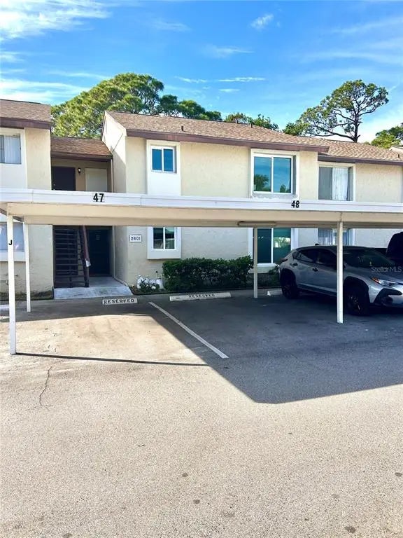 This beautiful remodeled two-bedroom, two bath condominium is ready for you. Everything has been updated in desirable neutral painting. The large living room has a ceiling fan and lots of light from the sliding glass doors leading to the screened in lanai. The kitchen has brand new cabinets with stainless steel appliances including a dishwasher and self-cleaning oven. There is ample storage in the kitchen provided by a large pantry. The dining area is defined by a hanging light with room for a table and chairs and there are two stools at the breakfast bar. The bathrooms have new walk-in showers with sliding glass doors, and new vanities, mirrors and lights as well. There is new vinyl flooring and base boards throughout the condo in addition to new hurricane windows. This condo includes a covered parking place. Located just only 5 minutes from downtown Sarasota and 15 minutes from one of the most amazing Beaches, Lido. Hidden Lake Village offers its residents two swimming pools, tennis courts, a library, billiards room, and fitness center. There are several washers and dryers in many of the buildings for resident use. Perfect for owner occupied or makes a great rental.