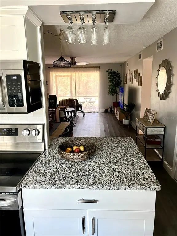 - Interior FeaturesCeiling Fan(s), Living Room/Dining Room Combo, Primary Bedroom Main Floor, Solid Surface Counters, Stone Counters, Thermostat