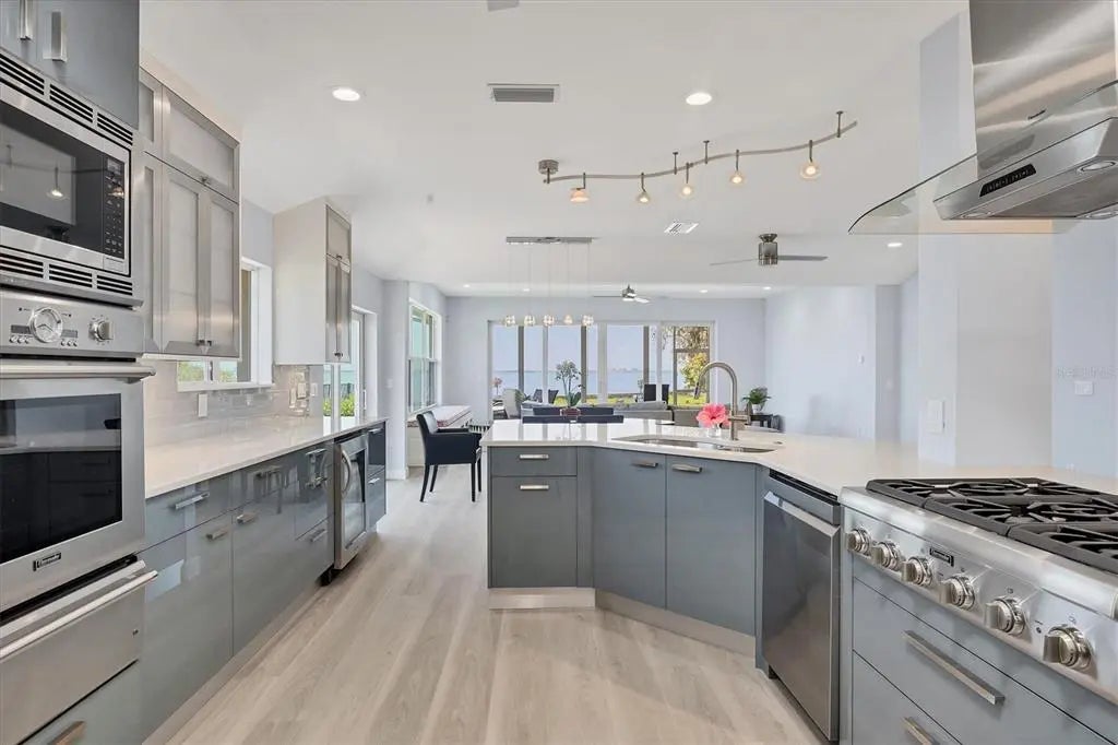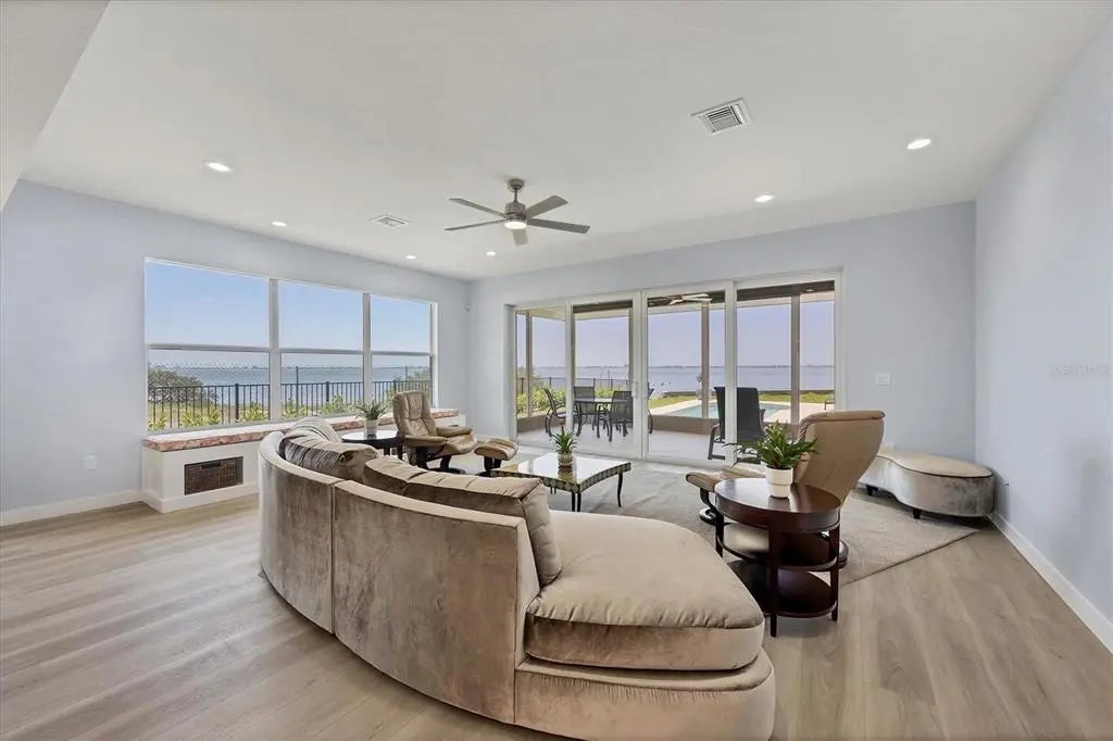 One or more photo(s) has been virtually staged. • Welcome to Beyond the Gates, where timeless elegance meets coastal serenity in the heart of the historic Indian Beach-Sapphire Shores neighborhood. Perfectly nestled between Sarasota College of Art & Design and the iconic Ringling Museum, this bayfront estate offers an unmatched blend of privacy, architectural distinction, and location. Reimagined in 2010 by renowned architect Terry Green and meticulously updated in 2025, this single level 4-bedroom, 3-bathroom modern Coastal retreat highlights clean lines, warm textures, and panoramic water views that will take your breath away. By day, watch sailboats drift across the turquoise bay; by night, the lights of Longboat Key dance across the water, creating a magical ambiance that soothes the soul. Whether you are entertaining guests or enjoying a quiet evening at home, the views alone are a masterpiece—providing a daily dose of peace and inspiration. Inside, an eclectic blend of historic charm and modern design welcomes you into spacious living areas filled with natural light, seamlessly blending indoor comfort with outdoor beauty. Each room is thoughtfully designed to encompass views of Sarasota Bay and the surrounding landscape and provide a sense of effortless luxury. This exceptional residence is not just a home, it is a private sanctuary where luxury, location, and lifestyle converge just 3.5 miles to Downtown Sarasota and approximately 5 miles to St. Armands Circle & Lido Beach.