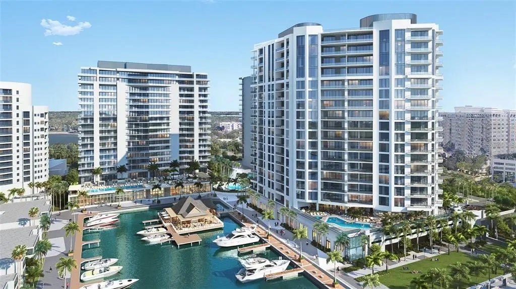 One or more photo(s) has been virtually staged. Pre-Construction. To be built. This 20-story Ritz-Carlton Residences tower enjoys a prime waterfront location in the heart of Sarasota’s walkable downtown cultural district. Residence #405 is at north end of the tower and optimizes beautiful vistas of Quay Harbor, The Bay Park, Sarasota Bay and Gulf of Mexico. Its impressive Residence E design features soaring walls of glass that create an expansive and luxurious great room experience. This spacious area is accentuated by a wraparound terrace with a summer kitchen. The primary bedroom offers a breathtaking bay view through dramatic, oversized windows, complemented by two generous walk-in closets. The spa-style bath boasts a deep soaking bathtub, a double shower and a double vanity. Additionally, two guest bedrooms each come with private en-suite baths and access to a separate east-facing wraparound terrace. In The Ritz-Carlton global tradition of peerless service, this private residence will enjoy a dedicated on-site team that takes pride in anticipating every need and fulfilling every wish. A 24-hour dedicated staff and concierge, food and beverage services available from a private, on-site service kitchen, dedicated 24-hour valet, housekeeping services and an impressive array of private amenities overlooking the sparkling yacht harbor. In addition to the exceptional private amenities and services available exclusively to our tower residents, membership in The Harbor Club provides access to nearly 20,000 square feet of amenities dedicated to socializing, health and wellness.