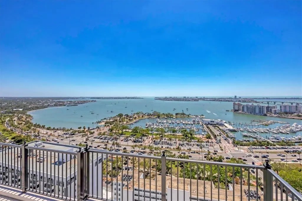 Welcome to the DeMarcay- an 18-story boutique condominium community on prestigious Palm Avenue, in the heart of downtown Sarasota. This impeccably designed 2-bedroom, 2-bathroom home on the 14th floor can be furnished and move-in ready- offering a seamless blend of luxury, comfort and convenience. Step inside to soaring 11-foot ceilings, elegant porcelain flooring, and expansive windows that fill the home with natural light and delightful city and bay views. The chef’s kitchen features Italian custom cabinetry, Miele appliances including a gas cooktop, sleek quartz countertops and a large island perfect for cooking and entertaining. Additional highlights include built-out closets, stylish window treatments, a custom-designed dry bar, and a temperature-controlled storage space. Relax on your private terrace and enjoy the abundance of natural light and sweeping views of Sarasota. The amenities are found on the 18th floor rooftop and include a heated saltwater pool and lanai area, an outdoor kitchen and casual entertaining space, a fitness center, and a sophisticated club room with a catering kitchen - all with unobstructed 360-degree views of the Bay and downtown skyline. On-site staff is available 24/7 providing resident services for owners and their guests. This is downtown living at its best.