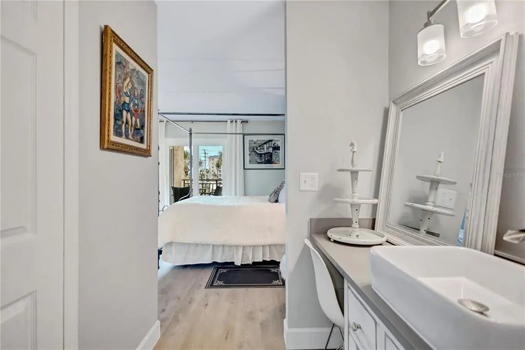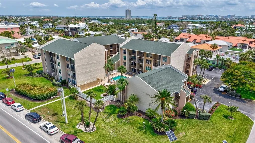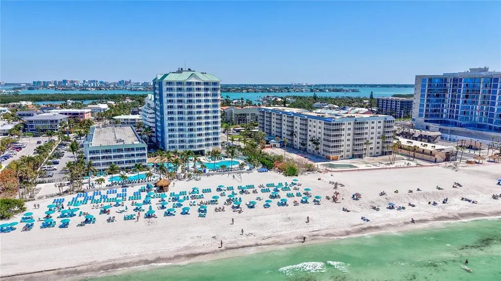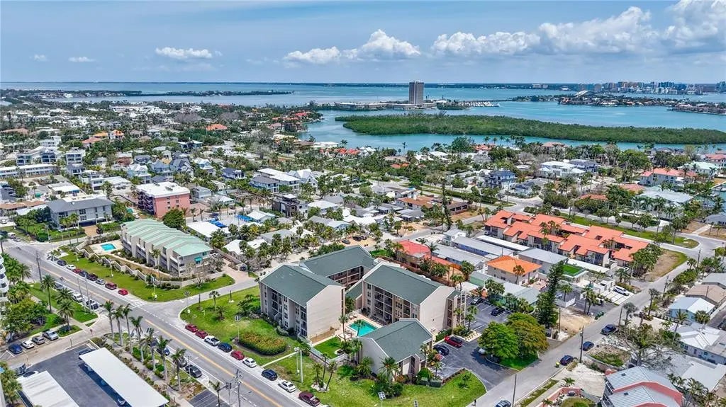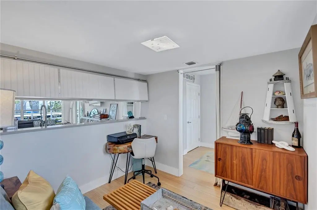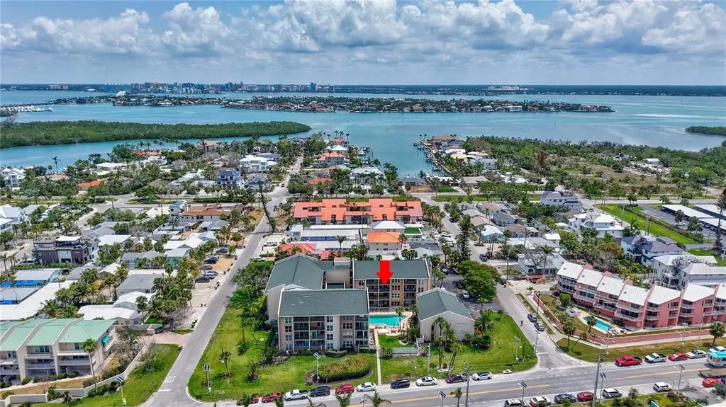Dreaming of living on a small island surrounded by the gorgeous blue waters of Lido Key’s gulf and bay? Unit 302 at Lido Presidential is the home for you. Awake each day in your little piece of paradise. Take your morning coffee out to your covered, beach-facing balcony overlooking the heated pool and pinch yourself. It’s real… The interior of this condo has been redesigned to add an additional ½ bedroom for family and guests. With a futon and desk, this space is perfect as a day office. At night, fold down the shutter to close off the kitchen and you have a comfortable sleeping area. There is also a sleeper sofa in the living room. The decor is for those looking for a unique and eclectic vibe as the Seller leans toward the fun and funky. The kitchen and bathroom cabinets are custom constructed from reclaimed wood from a Brooklyn Shipyard building in NY. All the appliances, A/C, hot water heater, and 2 sets of impact sliding doors are 4 yrs old or younger. With only 40 units, Lido Presidential offers a warm and inviting island feel. Your new home is in the perfect location with easy access to St. Armands Circle, the Ringling Bridge, and Ted Sperling Park. Kayak the mangrove tunnels at Lido Key Park. The free Bay Runner trolley stops steps from your door to take you into downtown Sarasota with multiple theatre venues and vibrant night life choices. Directly across the street is the famous Lido Beach Resort, where you can enjoy lunch at the beach or have a delicious dinner upstairs overlooking the Sarasota Bay. SRQ Airport is a quick drive. Ready to relax? Move right in- most furniture is included.