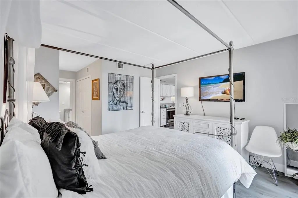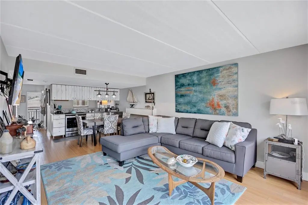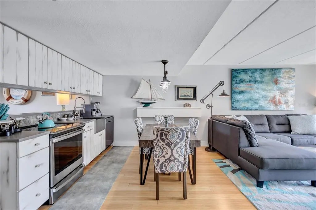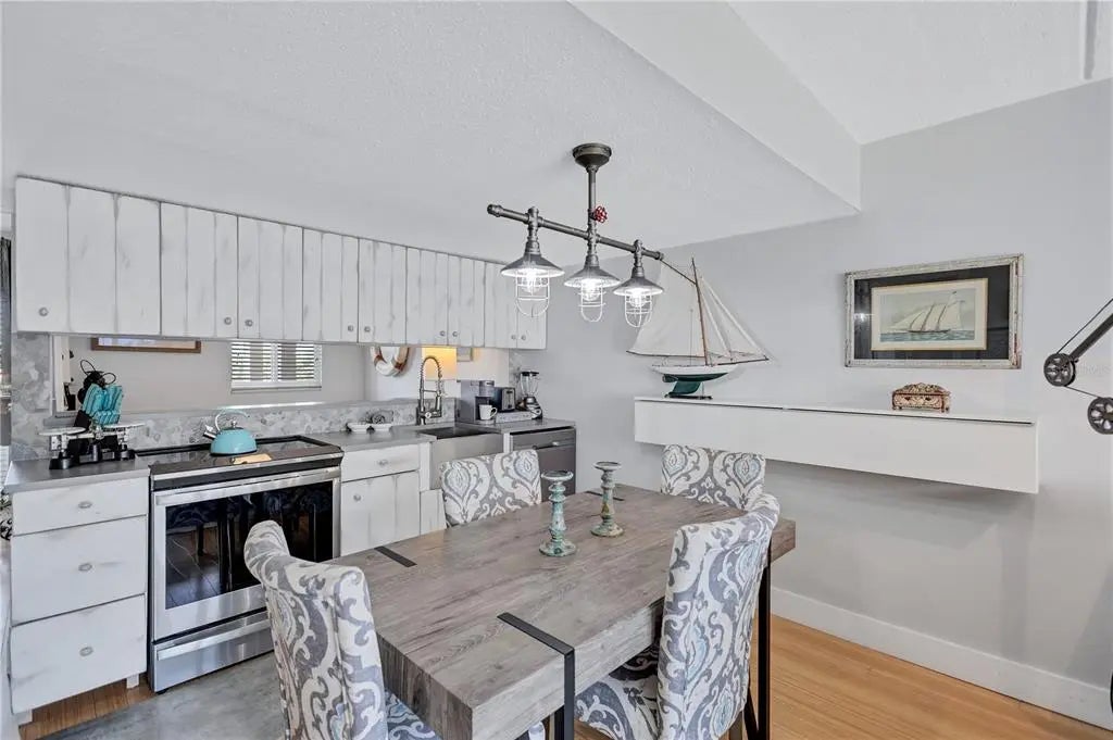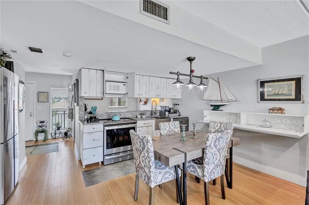 Dreaming of living on a small island surrounded by the gorgeous blue waters of Lido Key’s gulf and bay? Unit 302 at Lido Presidential is the home for you. Awake each day in your little piece of paradise. Take your morning coffee out to your covered, beach-facing balcony overlooking the heated pool and pinch yourself. It’s real… The interior of this condo has been redesigned to add an additional ½ bedroom for family and guests. With a futon and desk, this space is perfect as a day office. At night, fold down the shutter to close off the kitchen and you have a comfortable sleeping area. There is also a sleeper sofa in the living room. The decor is for those looking for a unique and eclectic vibe as the Seller leans toward the fun and funky. The kitchen and bathroom cabinets are custom constructed from reclaimed wood from a Brooklyn Shipyard building in NY. All the appliances, A/C, hot water heater, and 2 sets of impact sliding doors are 4 yrs old or younger. With only 40 units, Lido Presidential offers a warm and inviting island feel. Your new home is in the perfect location with easy access to St. Armands Circle, the Ringling Bridge, and Ted Sperling Park. Kayak the mangrove tunnels at Lido Key Park. The free Bay Runner trolley stops steps from your door to take you into downtown Sarasota with multiple theatre venues and vibrant night life choices. Directly across the street is the famous Lido Beach Resort, where you can enjoy lunch at the beach or have a delicious dinner upstairs overlooking the Sarasota Bay. SRQ Airport is a quick drive. Ready to relax? Move right in- most furniture is included.