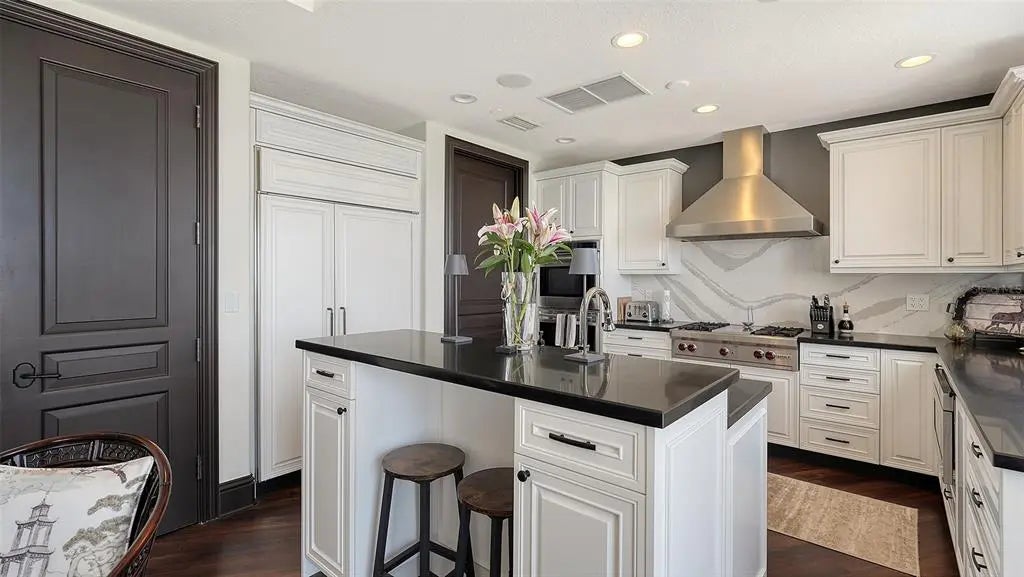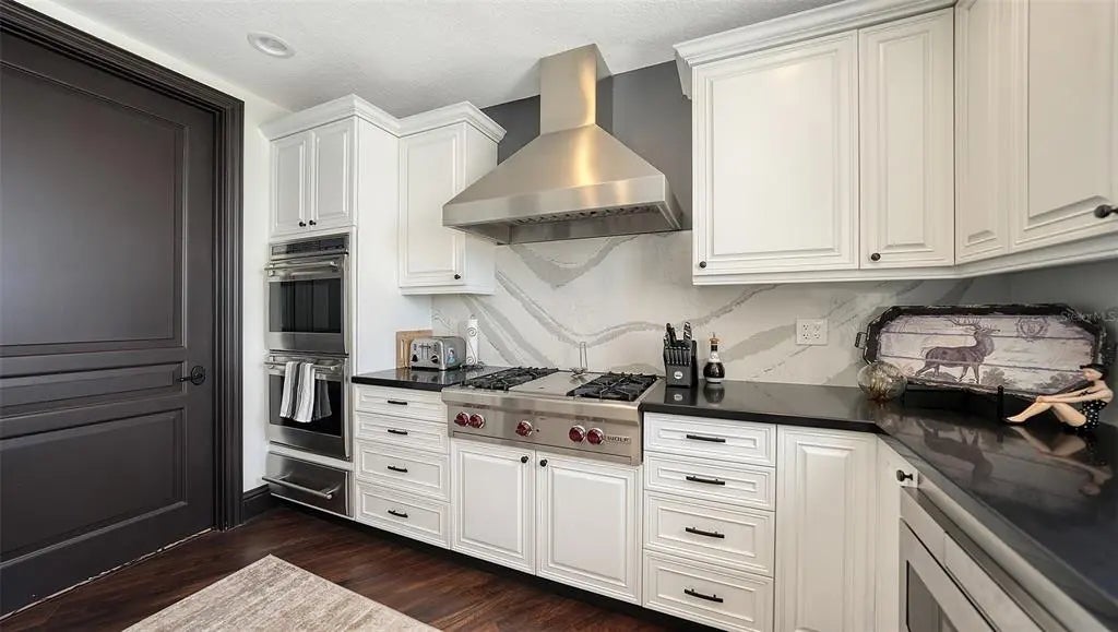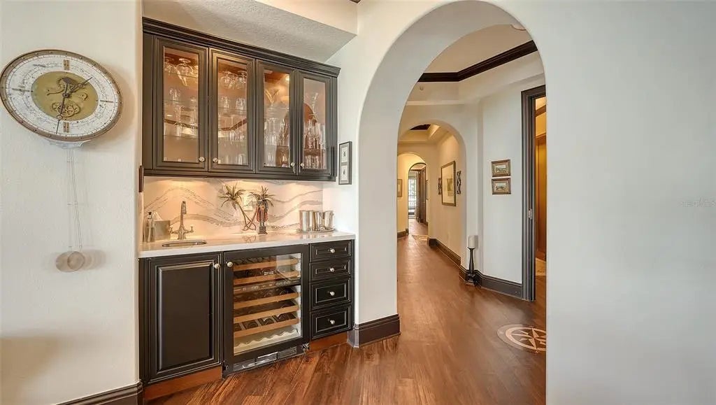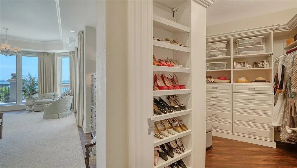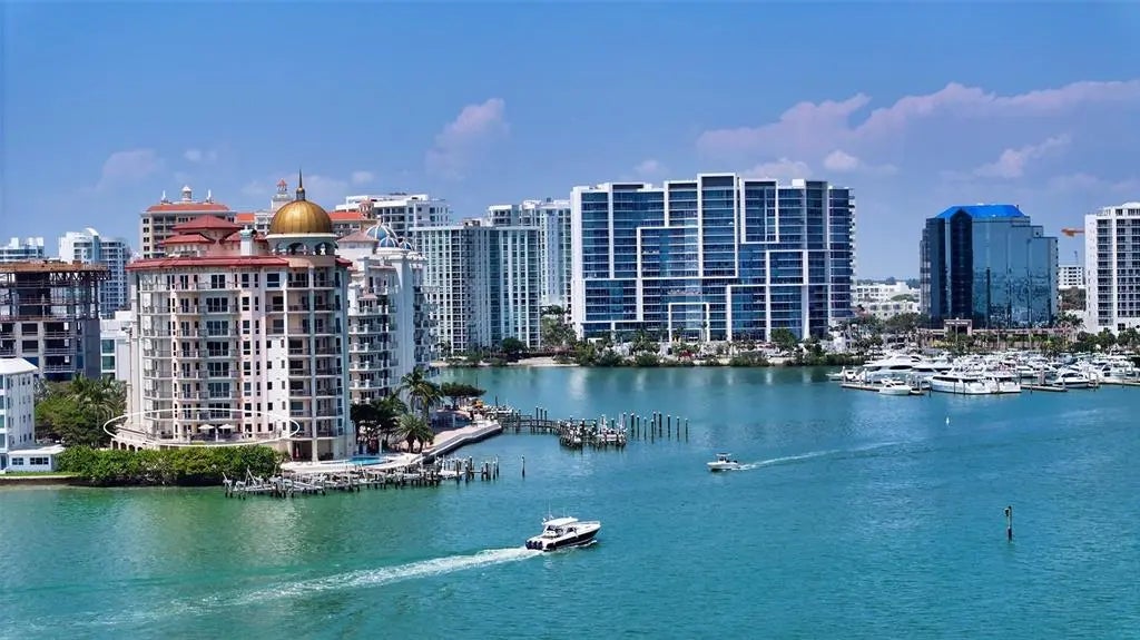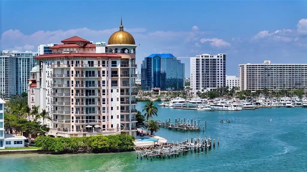 Experience the epitome of elegance and timeless sophistication in this exquisitely appointed three-bedroom residence. at the exclusive Grande Riviera, a breathtaking architectural gem nestled in the prestigious Golden Gate Point neighborhood. Meticulously maintained, this classic condominium offers panoramic views of Sarasota Bay and the sparkling downtown skyline, setting a new standard for luxury waterfront living. This residence boasts the largest terrace in Grande Riviera, approximately 2300 square feet, providing the ultimate setting for sunsets and entertaining friends and family. One of only 13 exclusive residences, this home offers an intimate and private lifestyle, with a private elevator entrance leading directly to the elegant foyer. Designed for both comfort and grandeur, the residence features arched walkways, rich crown molding, and expansive living spaces ideal for entertaining or quiet reflection. The heart of the home is a remodeled chef’s kitchen, outfitted with a large center island, solid wood cabinetry adorned with sleek black hardware, a quartz backsplash, granite countertops, and a Sub-Zero refrigerator and freezer, as well as a Wolf gas range and double wall oven. Deluxe Laundry room with custom cabinetry and workspace conveniently located near the kitchen. A wet bar with a Sub-Zero wine fridge seamlessly connects the open living space to the elegant dining and living areas, creating a perfect flow for gatherings. Step outside onto the largest private wraparound terrace in the building, where you’ll enjoy breathtaking, unobstructed views of the bay. This is truly one of the most distinguished outdoor living spaces in the complex. The owners’ suite is a serene retreat, featuring dual walk-in closets with custom built-ins, and a spa-like bathroom with marble floors, a dual quartz vanity, walk-in shower with dual showerheads, and a private water closet. The suite also offers direct access to the terrace, allowing for peaceful mornings with stunning bay views. The guest suite boasts a private terrace entry, en suite bath, and walk-in closet, while a versatile third bedroom/ den with double glass doors can serve as an office, sitting room, or additional guest space. Additional features include a private, deeded two-car garage with storage, resort-style pool, rooftop terrace, boat docks, on-site management, and private secured access. This is a rare opportunity to own a distinguished waterfront home in one of Sarasota’s most coveted locations, a residence that masterfully blends classic design, modern comforts, and breathtaking surroundings.