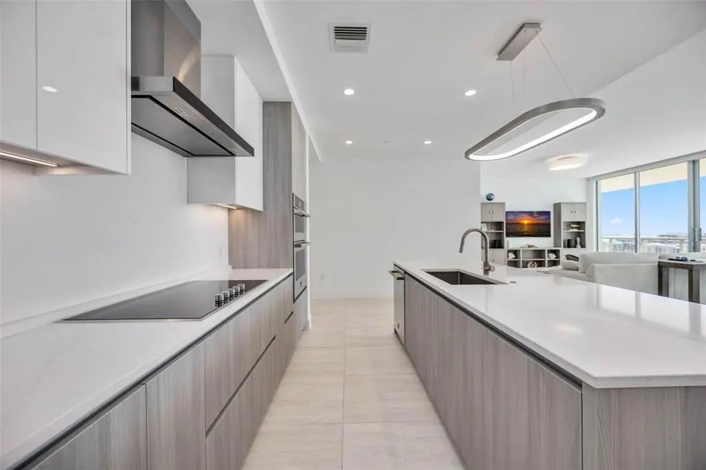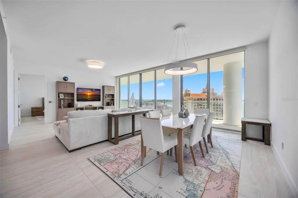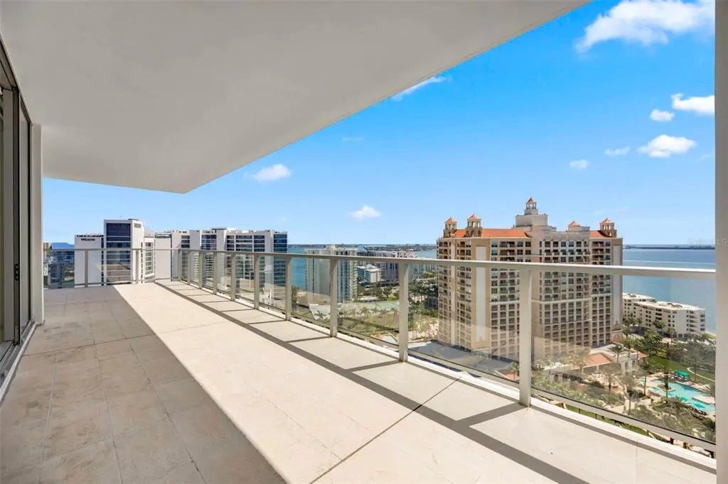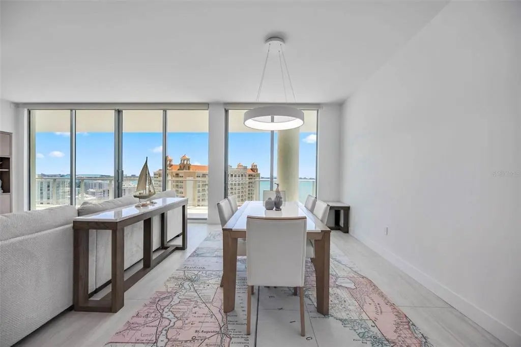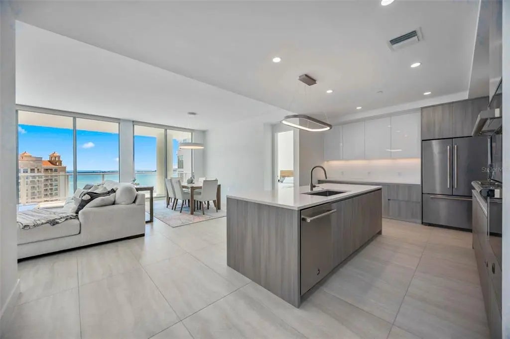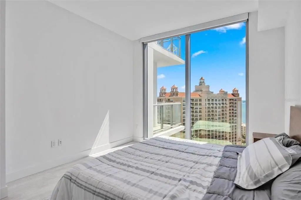 FURNISHED 17th FLOOR condo is positioned in the MOST HIGHLY DESIRED STACK in the building, DELIVERING THE BEST WATER VIEW in Bayso. Experience the pinnacle of luxury living at Bayso, Sarasota’s premier downtown Bayfront tower at The Quay. This exceptional 2,073 sq. ft. residence is perfectly positioned to capture breathtaking sunsets and panoramic views of Sarasota Bay, the downtown skyline, and the Gulf of Mexico. Soaring 10-foot ceilings and expansive 10-foot floor-to-ceiling windows and sliders flood the home with natural light, seamlessly connecting to an oversized 10-foot-deep terrace with sleek glass railings—ideal for entertaining or relaxing in style. Every detail of this two-bedroom, three-bath home has been thoughtfully designed for the most discerning buyer. The chef-inspired kitchen features designer European cabinetry, quartz countertops, and premium Jenn-Air stainless steel appliances. The owner’s suite is a private retreat, offering a spa-like bath adorned with Grohe fixtures. Residents enjoy an exclusive suite of five-star amenities, including a state-of-the-art fitness center, private movement studio, resort-style elevated pool and spa, outdoor entertainment terrace, dedicated dog park, and 24/7 front desk with secure, access-controlled entry. On-site property management ensures effortless living and peace of mind. Located just steps from world-class arts, dining, and entertainment, this is a rare opportunity to own Bayso’s most desirable residence in Sarasota’s best new address. Private showings available by appointment, in-person or virtually. Schedule your tour today and embrace the ultimate Sarasota lifestyle.