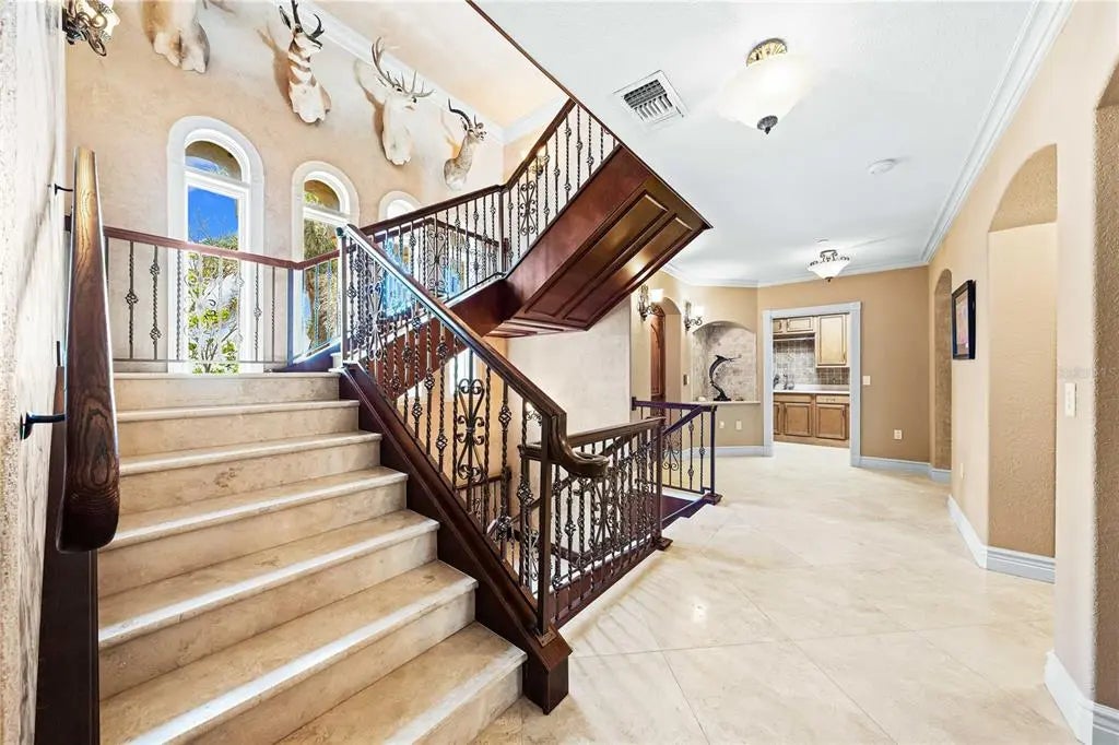 - Interior FeaturesAccessibility Features, Built-in Features, Ceiling Fan(s), Central Vacuum, Coffered Ceiling(s), Crown Molding, Elevator, Stone Counters, Thermostat, Wet Bar, Window Treatments