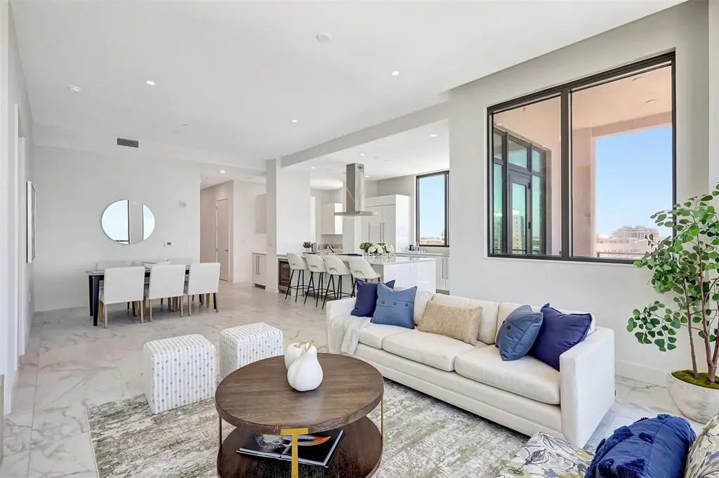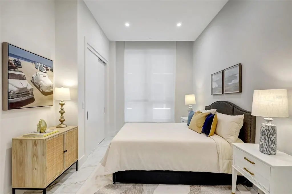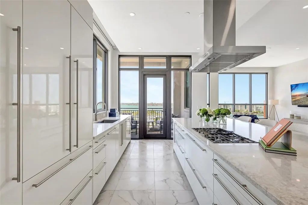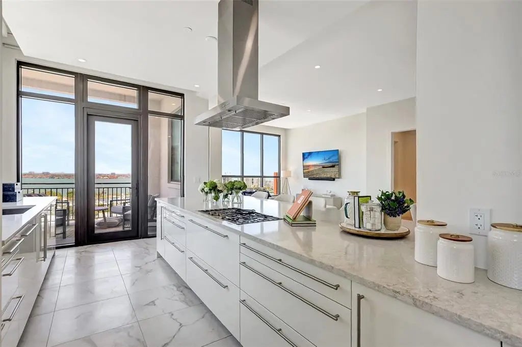 Experience elevated luxury at The DeMarcay in this brand-new, never-lived-in custom residence — a 3-bedroom, 3.5-bath sky home with a thoughtfully designed living space and breathtaking, unobstructed views of Sarasota Bay, the Gulf of Mexico, the Ringling Bridge, and Marina Jack's. From glowing sunrises to dazzling fireworks displays, your front-row seat to Sarasota’s skyline awaits. The chef’s kitchen is a dream come true, featuring a 6-burner gas cooktop, top-of-the-line appliances, custom cabinetry, wine cooler, and a generous walk-in pantry. The expansive primary suite welcomes the morning light with serene water views and includes a spa-like bath with double vanities, a freestanding soaking tub, glass-enclosed shower, and large walk-in closet. Both secondary bedrooms offer luxurious en suite bathrooms for comfort and privacy. No detail has been left untouched — this residence is fully outfitted with upgraded designer lighting, integrated audio, smart thermostat controls, and Lutron blackout curtains in every room. It truly lives like a single-family home in the sky. Amenities are located on the 18th floor and feature a resort-style pool, grilling area, catering/hosting lounge, and a fully equipped fitness center — all with panoramic views. Additional conveniences include 24-hour resident services, two assigned garage parking spaces, and a private storage unit. Set in the vibrant heart of downtown Sarasota, you’ll be just steps away from fine dining, boutique shopping, art galleries, theaters, and cultural attractions — all within easy walking distance. This is luxury redefined. Come home to comfort, sophistication, and Sarasota’s most spectacular views.