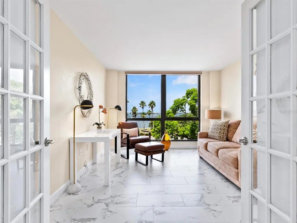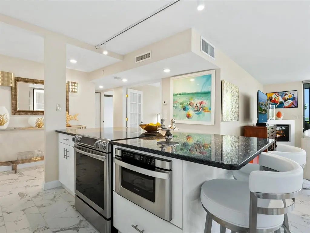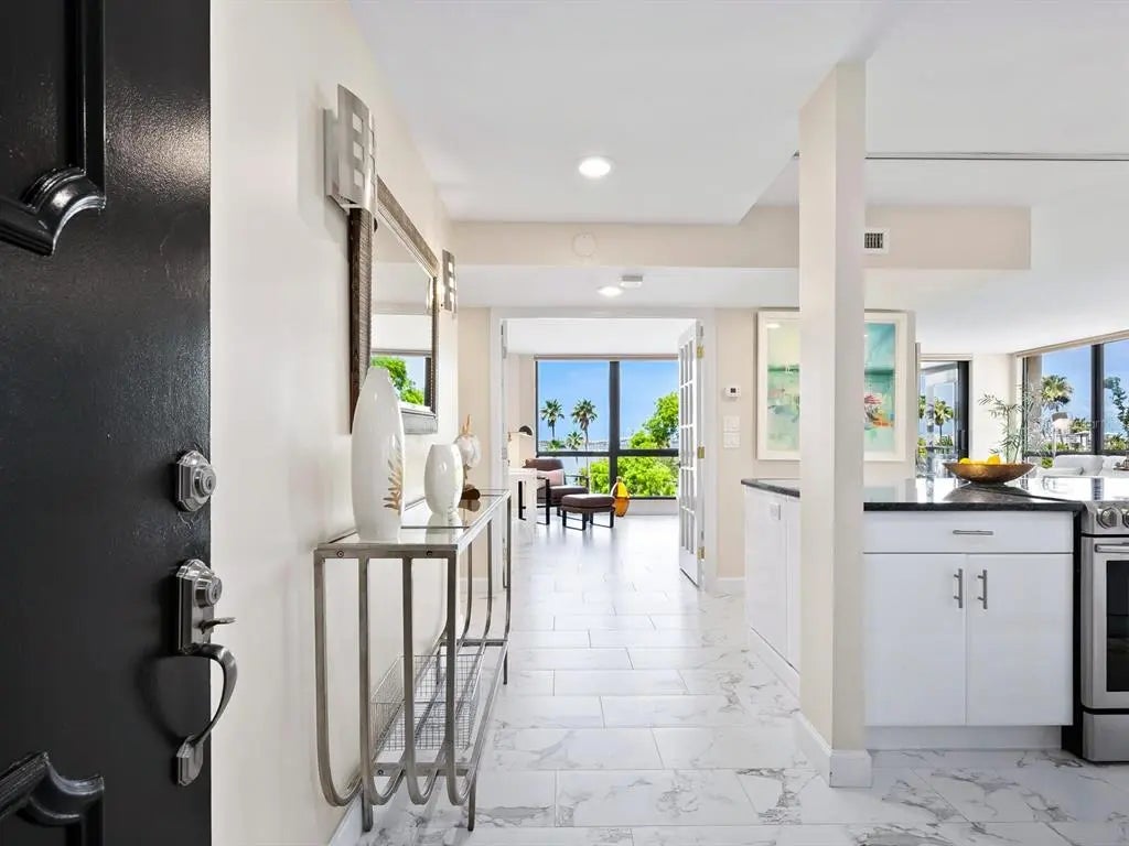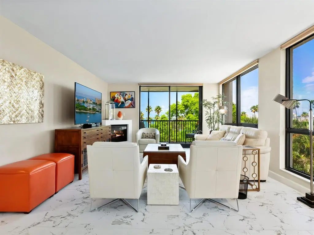 Welcome to Essex House—an elegant and sophisticated community that truly captures the essence of downtown Sarasota living. Perfectly positioned along the bayfront, this prestigious building offers a seamless blend of timeless design, modern comfort, and unparalleled access to the city’s vibrant cultural scene, fine dining, and waterfront attractions. This rarely available, updated 2-bedroom, 2-bath corner unit is ideally located on the 3rd floor. The light-filled residence boasts floor-to-ceiling windows that frame expansive views of Sarasota Bay, filling the open-concept interior with natural light and breathtaking scenery. Step out onto your private balcony to take in tranquil bay breezes and stunning sunsets—all just moments from the best of downtown Sarasota, including fine dining, boutique shopping, and world-class cultural venues. Inside, every detail has been thoughtfully curated, from the custom kitchen and spa-inspired bathrooms to oversized closets and porcelain carrara 12x 24 tile flooring. Designer furnishings are included, offering a turnkey opportunity for effortless, luxurious living. Residents enjoy an array of resort-style amenities, including a sprawling sun deck with a saltwater pool, gazebo, and grilling area—perfect for entertaining. Additional features include a fully equipped fitness center, stylish club room for private events, secure entry, and assigned garage parking. Whether you're seeking a full-time residence or a seasonal retreat, this exceptional property offers the perfect blend of comfort, style, and an unbeatable location. Discover the best of Sarasota Bayfront living at Essex House.