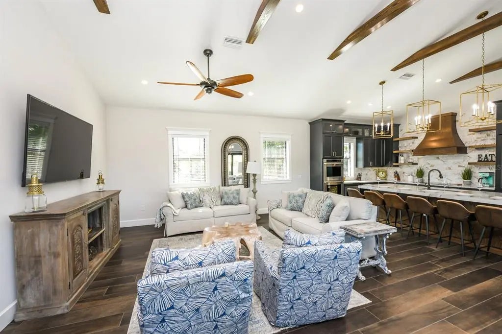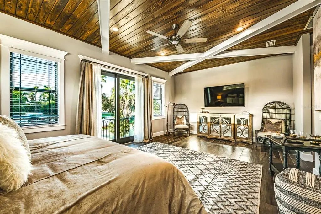 STUNNING ESTATE ON LIDO KEY!!! WELCOME TO YOUR COASTAL DREAM HOME!!! This 6 bedroom 5 1/2 bath property is TURNKEY FURNISHED, has an ELEVATOR to all levels, and boasts vaulted ceilings. The owner spared no expense when building this home. High end designer finishes and attention to detail are evident throughout. The master bedroom is a tranquil oasis and offers a private balcony providing breathtaking views. You will also find a large walk in closet and an oversized bathroom featuring double vanities, free standing bath tub, and a walk in shower. The additional four bedrooms are all en-suite and are laid out perfectly. The chef's kitchen has high end wood cabinets, quartz countertops, stainless steel appliances and a large center island. The great room floor plan is expansive and features high ceilings with wood beams. Step into your outdoor oasis with a private heated pool with a sun shelf, perfect for both kids and adults to soak up the Florida sun. A covered spa ensures year-round enjoyment. The expansive covered patio extends nearly the entire space beneath the home, ample bar-top seating, dining, TVs, and gaming areas, including a pool table and foosball. Convenience is key as you're just a short stroll to Lido Key Beach and or to St. Armand's Circle with wonderful shops and restaurants. With a 2-car garage and space for up to four cars in the driveway, you have ample parking options. This is the ultimate vacation home for you and your family. Currently a successful vacation rental with forward bookings in place.