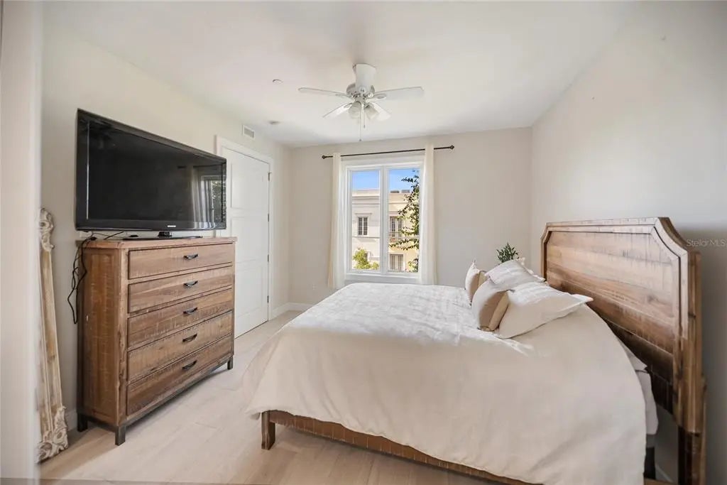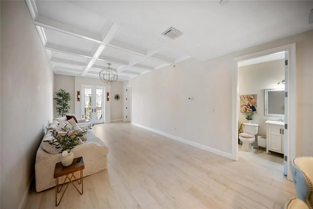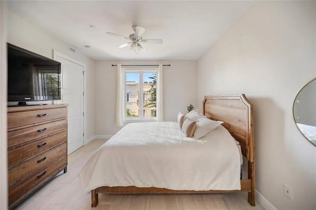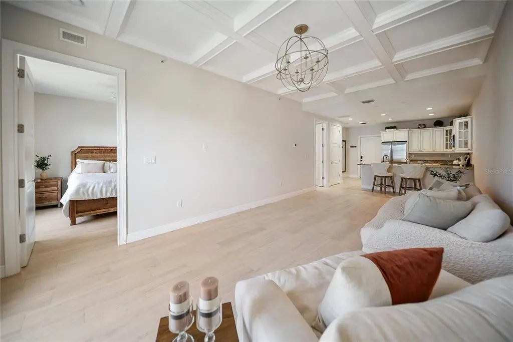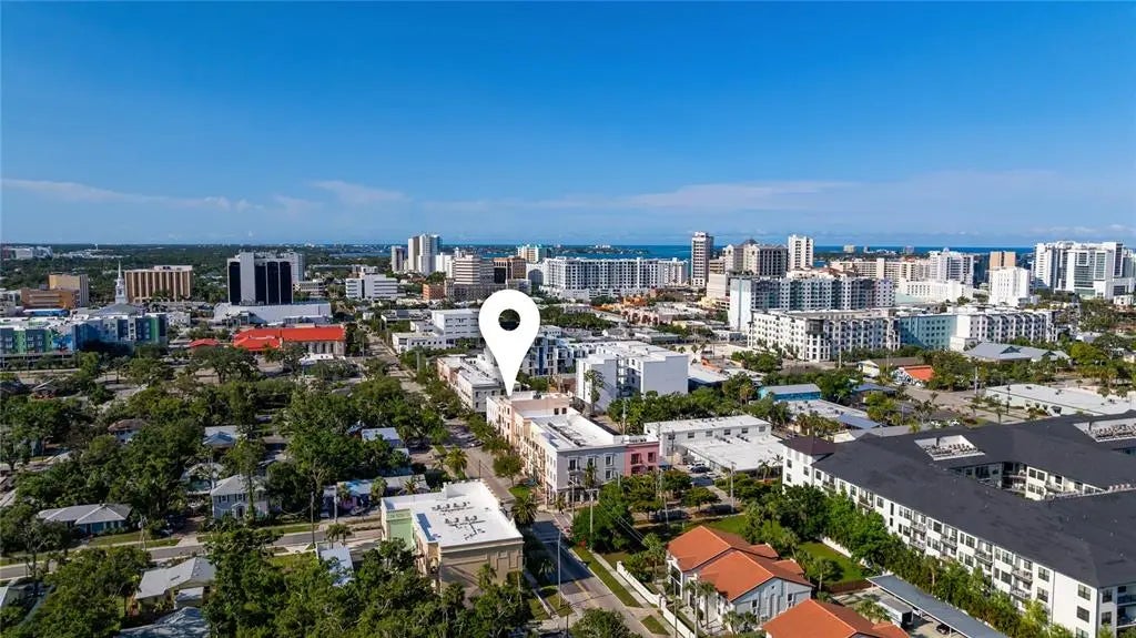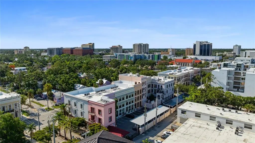 Huge reduction and priced to sell! Indulge yourself in the epitome of urban sophistication at this top floor, two-bedroom, two-bath residence situated in the heart of Sarasota's Rosemary District and 5 minitue walk to main street downtown. As you enter this luxurious home, prepare to be captivated by its refined details and impeccable design. The spacious open floor plan is tailor-made for hosting memorable gatherings with friends or family. The master suite offers a private haven where you can unwind after a long day,fabulous modern finishes in the bathroom and boasting a walk-in closet that will cater to your wardrobe needs and Relish in the enchanting sounds of violinists from nearby establishments on your Juliette balcony while savoring a glass of wine. The southern exposure allows an abundance of natural light to flow throughout, creating a bright and airy atmosphere. The attention to detail is apparent freshly painted inside with the high 10' ceilings, a coffered ceiling in the living room that exudes elegance, all-wood cabinetry with upgraded door styles and finishes, stainless appliances, and beautiful granite countertops in the gourmet kitchen. Solid doors, upgraded moldings, and exceptional sound insulation ensure a peaceful environment for you to unwind in. Outside, discover a tranquil courtyard with a lounge area and an outdoor fireplace, perfect for enjoying Sarasota's pleasant evenings. The unit features wood-look ceramic tile flooring throughout, adding to its aesthetic appeal while providing durability and easy maintenance. The luxurious walk-in shower is the finishing touch of elegance in your daily routine. Located near the best that downtown Sarasota has to offer - including fine dining options, galleries, boutiques, and the farmer's market - you will never be short on things to do. Adding to its already eco-friendly features, this residence comes with an accessible EV charging port for your electric vehicle. Embrace the sophistication of urban living in Sarasota's Rosemary District by scheduling a viewing today and experiencing the essence of luxurious sophistication in one of Florida's most sought-after neighborhoods