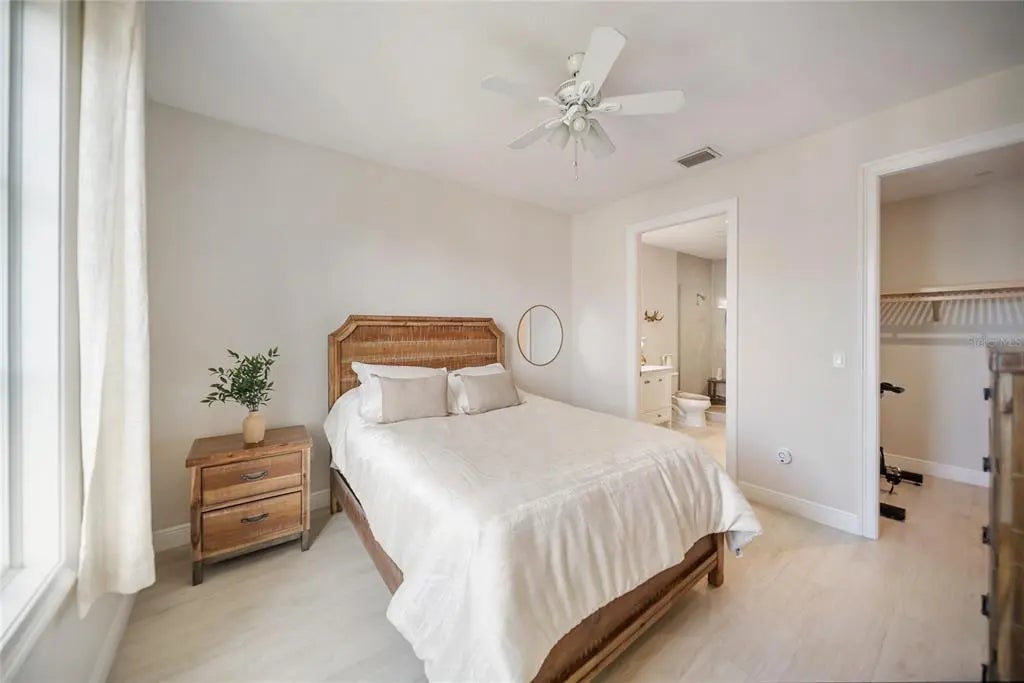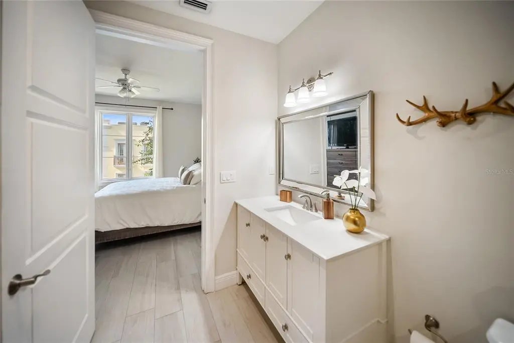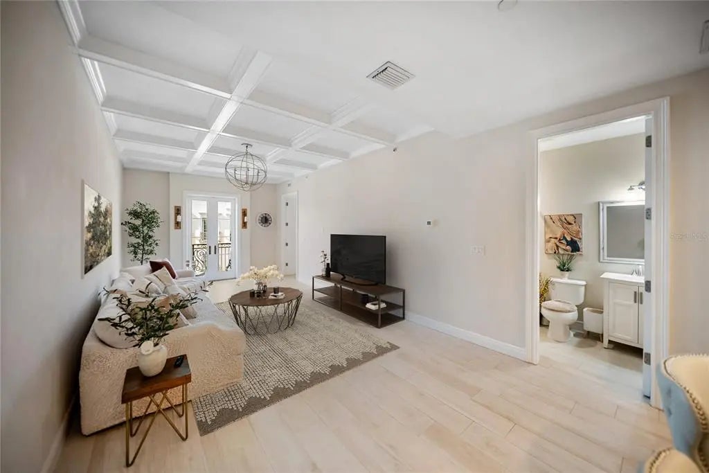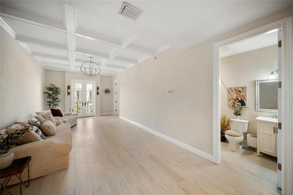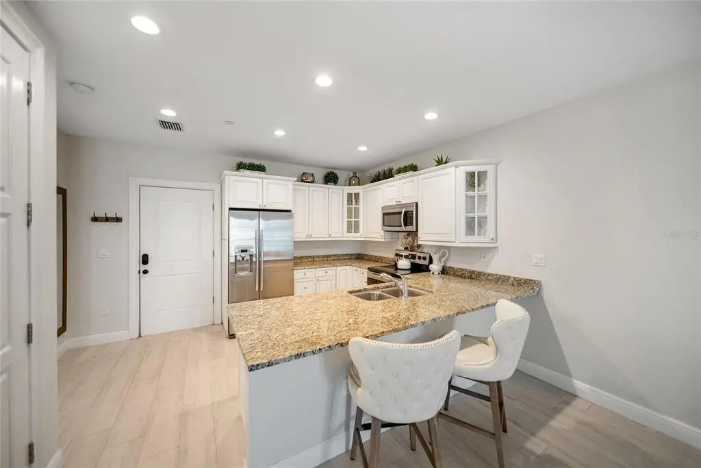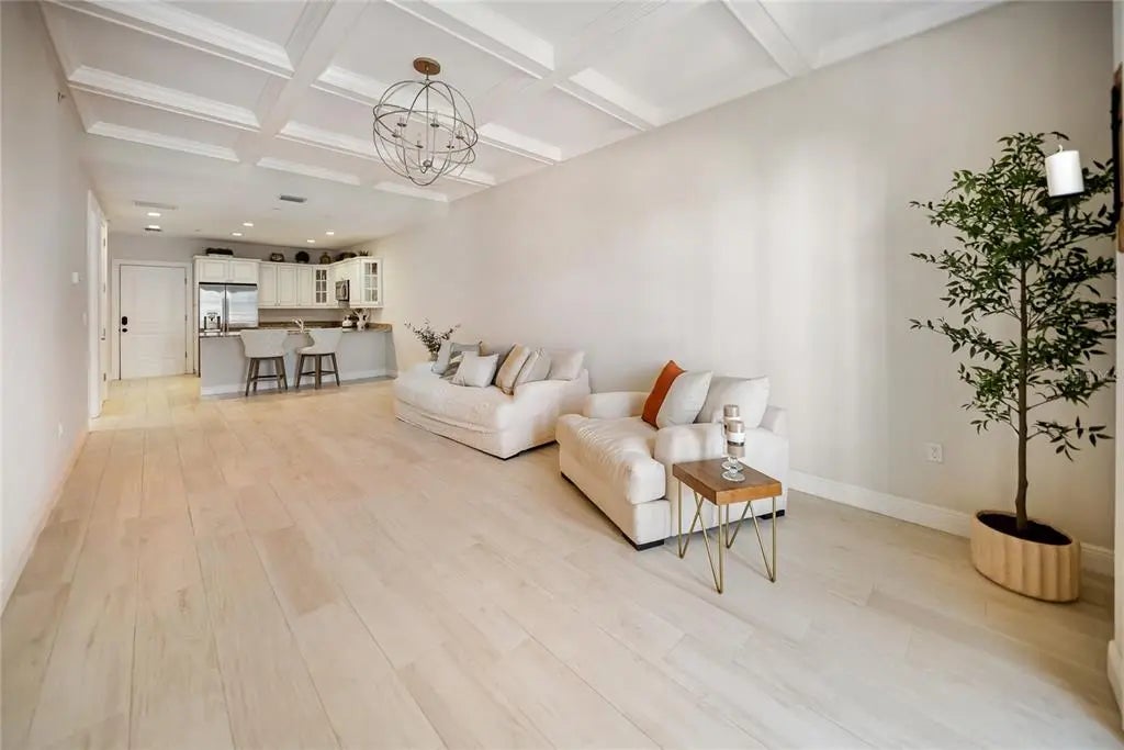 Huge reduction and priced to sell! Indulge yourself in the epitome of urban sophistication at this top floor, two-bedroom, two-bath residence situated in the heart of Sarasota's Rosemary District and 5 minitue walk to main street downtown. As you enter this luxurious home, prepare to be captivated by its refined details and impeccable design. The spacious open floor plan is tailor-made for hosting memorable gatherings with friends or family. The master suite offers a private haven where you can unwind after a long day,fabulous modern finishes in the bathroom and boasting a walk-in closet that will cater to your wardrobe needs and Relish in the enchanting sounds of violinists from nearby establishments on your Juliette balcony while savoring a glass of wine. The southern exposure allows an abundance of natural light to flow throughout, creating a bright and airy atmosphere. The attention to detail is apparent freshly painted inside with the high 10' ceilings, a coffered ceiling in the living room that exudes elegance, all-wood cabinetry with upgraded door styles and finishes, stainless appliances, and beautiful granite countertops in the gourmet kitchen. Solid doors, upgraded moldings, and exceptional sound insulation ensure a peaceful environment for you to unwind in. Outside, discover a tranquil courtyard with a lounge area and an outdoor fireplace, perfect for enjoying Sarasota's pleasant evenings. The unit features wood-look ceramic tile flooring throughout, adding to its aesthetic appeal while providing durability and easy maintenance. The luxurious walk-in shower is the finishing touch of elegance in your daily routine. Located near the best that downtown Sarasota has to offer - including fine dining options, galleries, boutiques, and the farmer's market - you will never be short on things to do. Adding to its already eco-friendly features, this residence comes with an accessible EV charging port for your electric vehicle. Embrace the sophistication of urban living in Sarasota's Rosemary District by scheduling a viewing today and experiencing the essence of luxurious sophistication in one of Florida's most sought-after neighborhoods