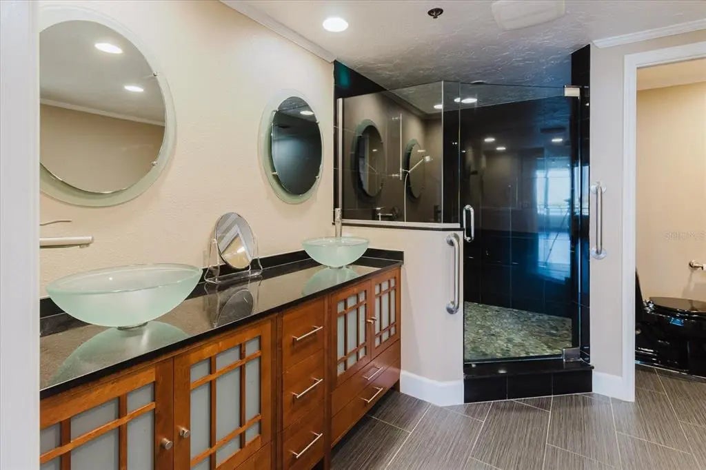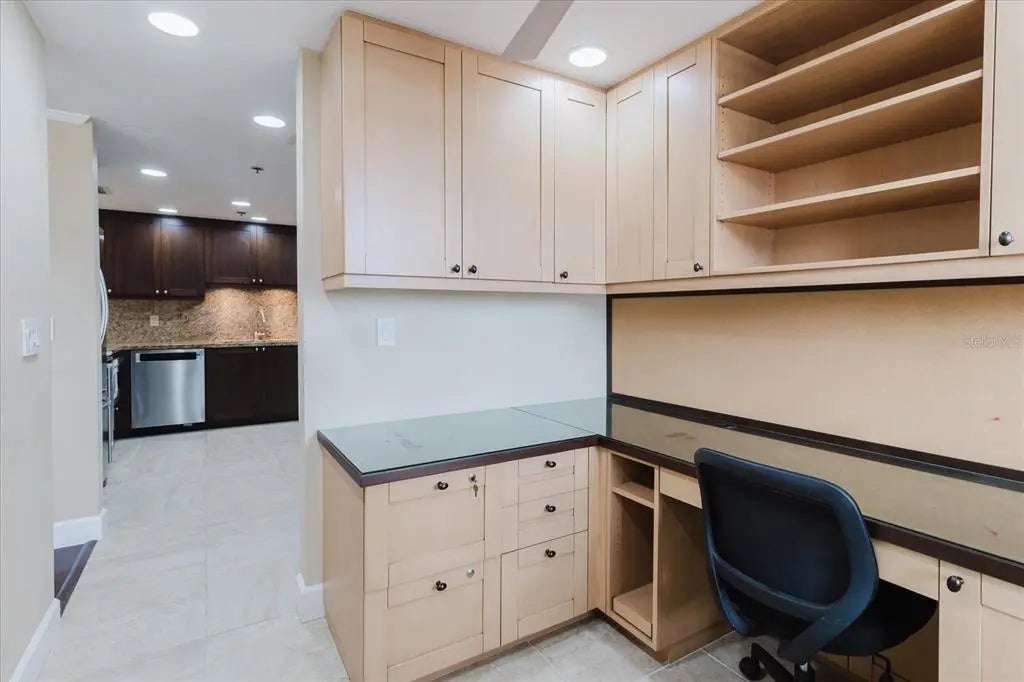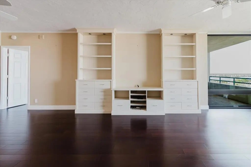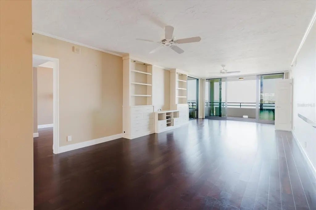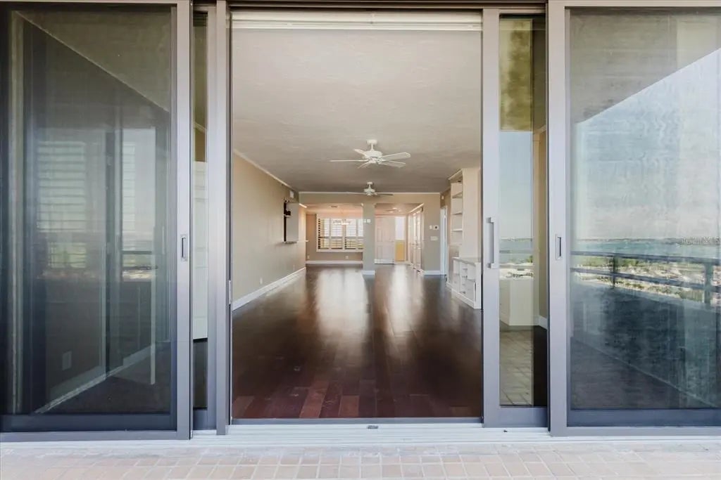 One or more photo(s) has been virtually staged. Experience luxurious downtown living from the 11th floor of the renowned Bay Plaza, offering sweeping, unobstructed views of Sarasota Bay. Perfectly positioned on Palm Avenue—between Main Street and Cocoanut Avenue—this iconic address puts you in the heart of it all. Bay Plaza delivers top-tier amenities including 24-hour concierge service, valet parking, a Contemporary lobby, well-equipped fitness center, library, and a media/meeting room. Relax poolside in the heated swimming pool and spa, or entertain outdoors using outdoor kitchen. Inside, this thoughtfully designed 2-bedroom, 2-bath home with an additional office space has been upgraded with new impact-rated sliding glass doors and windows, maximizing panoramic bay views from nearly every room. Brazilian cherry hardwood floors flow through the main living areas and bedrooms, setting a warm, elegant tone. The expansive great room opens onto a generous balcony—the perfect spot to catch unforgettable sunsets. The gourmet kitchen is a dream for any culinary enthusiast, featuring travertine marble flooring, granite countertops, custom walnut cabinetry, and premium appliances: KitchenAid refrigerator, double oven, Miele induction cooktop, Wolf microwave drawer, and a glass-door wine fridge. Retreat to a serene primary suite with its own private balcony, custom walk-in closets, and a spa-like en-suite bath showcasing designer porcelain tile, black granite counters, jetted soaking tub, walk-in shower with pebble stone flooring, and private commode. The guest suite offers a clever blend of style and function, with a queen Murphy bed, built-in shelving, and its own custom closet. The guest bath includes a glass-enclosed shower and in-unit washer/dryer setup. Known for its security and prestige, Bay Plaza is among the most desirable buildings in Sarasota. You’re steps away from world-class dining, entertainment, the opera, weekend farmers markets, Selby Gardens, and the vibrant Sarasota Bayfront. This is downtown waterfront living at its finest—don’t let this rare opportunity pass you by!