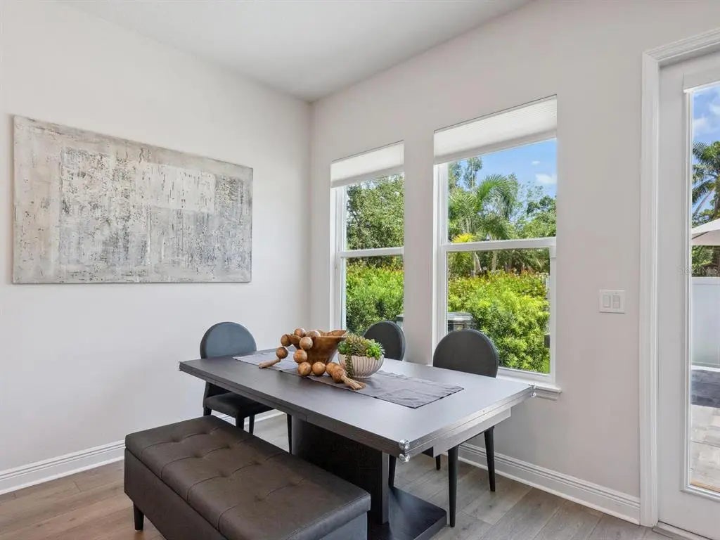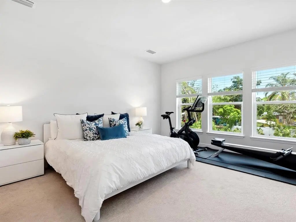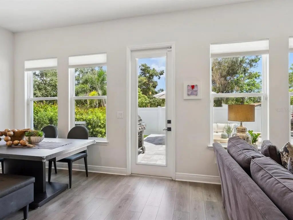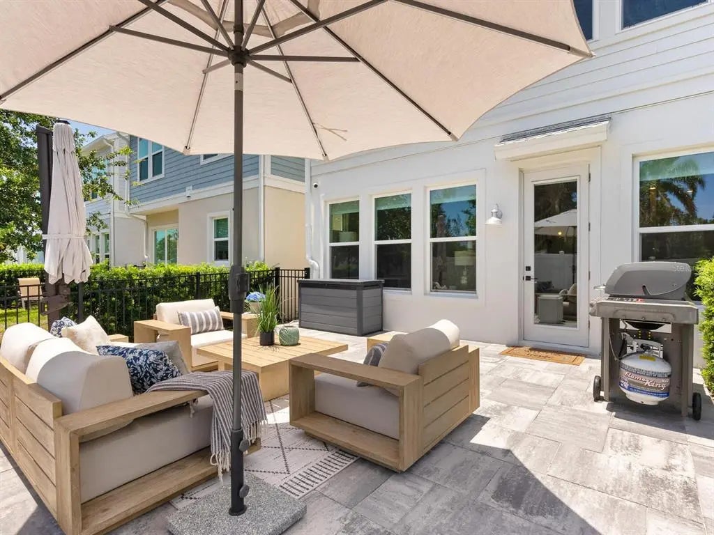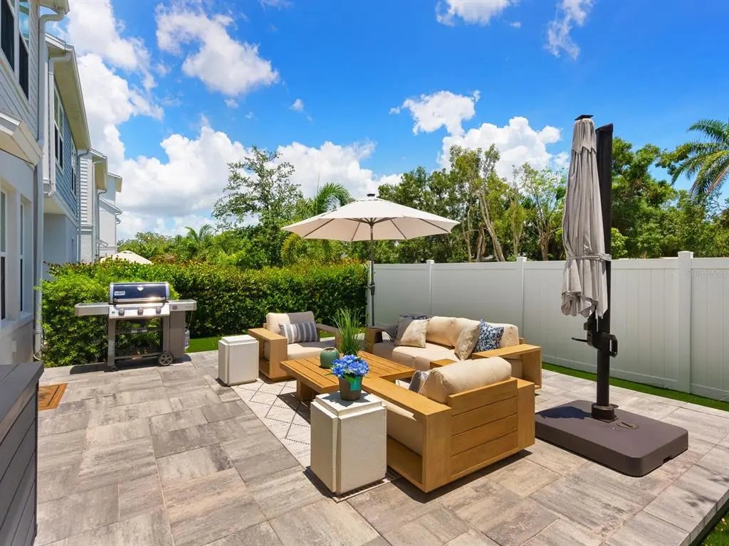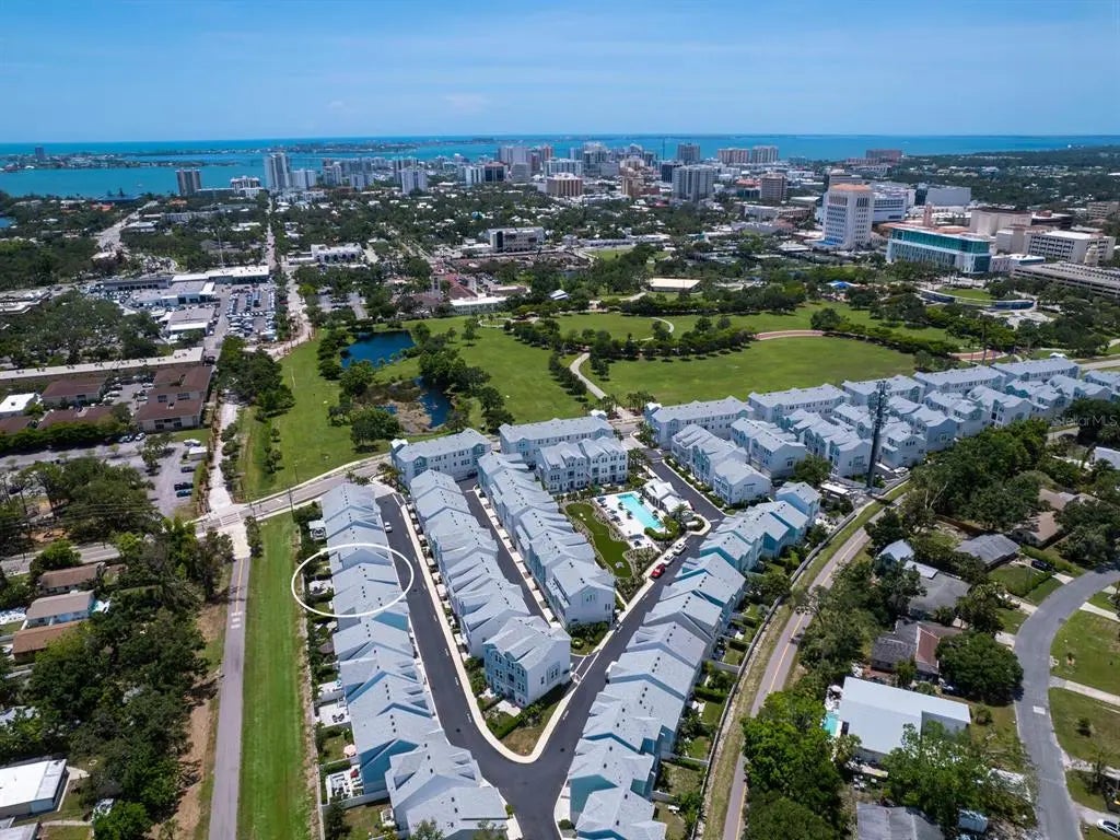 Welcome to this beautifully designed David Weekley home, in the desirable Payne Park Village in the heart of Sarasota. Built in 2020, this exceptional single-family residence features the unique and thoughtfully designed Littlebury floor plan, offering four bedrooms, 3.5 baths and approximately 2,711 square feet of sophisticated living space across three expansive levels. The first floor serves as the central gathering place of the home, boasting an open-concept layout that seamlessly connects the family room, gourmet kitchen and outdoor living space. At the center of the home, the gourmet kitchen impresses with white solid wood cabinetry, gleaming quartz countertops, and a suite of stainless-steel appliances, including a built-in oven, microwave, refrigerator and an electric cooktop. A large undermount apron-front farmhouse sink adds both charm and functionality, while the expansive island with seating provides a stylish hub for casual meals and conversation. Perfect for entertaining, this space flows effortlessly onto a newly enhanced outdoor living area featuring an oversized patio, lush tropical plantings, maintenance-free artificial turf and a privacy fence, ideal for relaxing or hosting gatherings year-round. Conveniently just off the kitchen, the attached two-car garage adds everyday practicality to this beautifully curated space and provides space for extra storage with two overhead storage racks. Many enhancements have been made with safety in mind, including hurricane-rated doors and impact windows, full home water system with a reverse osmosis system for drinking water and ultraviolet lights in the air conditioning space to avoid mold growth. Upstairs on the second floor, you'll find a serene and spacious primary suite flooded with natural light, soaring ceilings, a generous walk-in closet with custom built-ins, and a luxurious en-suite bath. The spa-like bath includes a double sink vanity, an oversized soaking tub and a sleek walk-in glass shower. Two additional guest bedrooms, a full bath, and a well-appointed laundry room complete this level. The third floor offers a private and flexible retreat, ideal for guests, a home office or media room. Here you'll find a 255-square-foot bonus room, the fourth bedroom with a walk-in closet, and another full bathroom with spacious, full double sink vanity, providing privacy and comfort. The neighborhood offers a large pool and dog park and is conveniently just steps from Payne Park, the Legacy Trail and moments from downtown Sarasota’s shopping, dining, cultural venues and Gulf Coast beaches, this home blends modern luxury with unbeatable convenience. Payne Park, formally a baseball spring training park, is now a 30-acre public park featuring a skateboard park, frisbee golf, tennis facilities, small waterpark and playground, an on-site café, and miles of recreational and biking paths around the park and lakes. Don't miss your opportunity to live in one of Sarasota’s most vibrant communities!