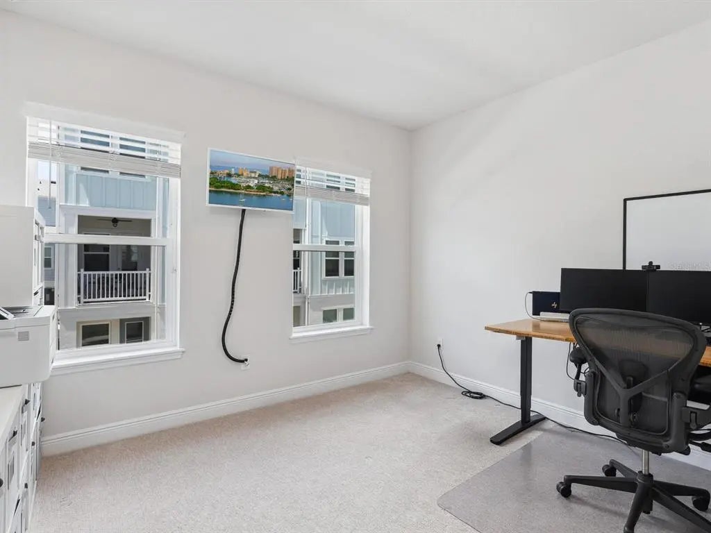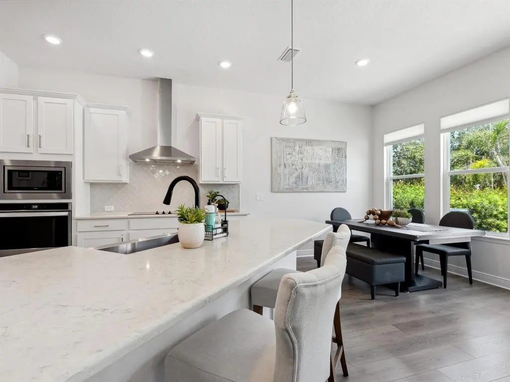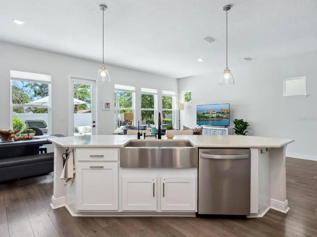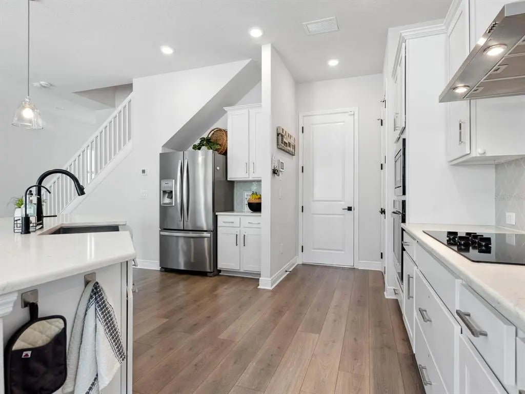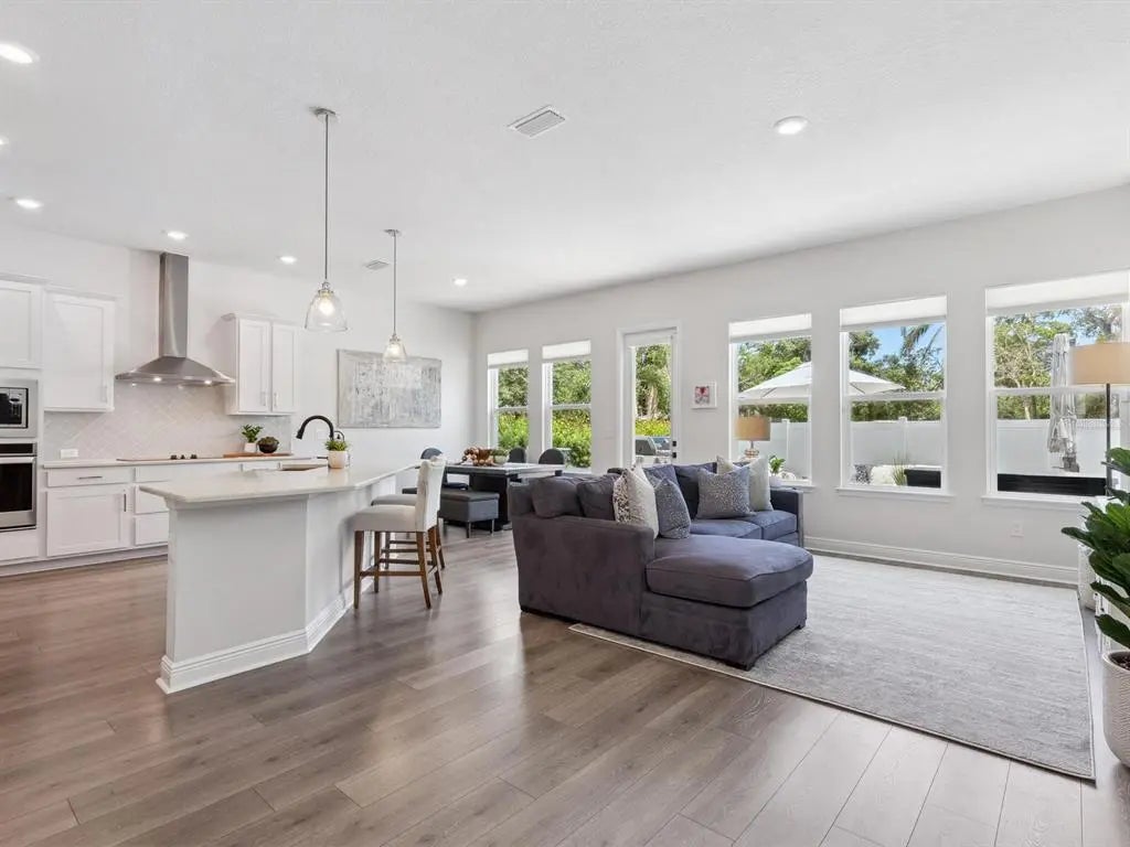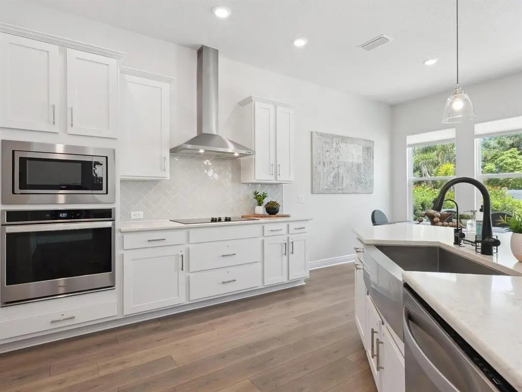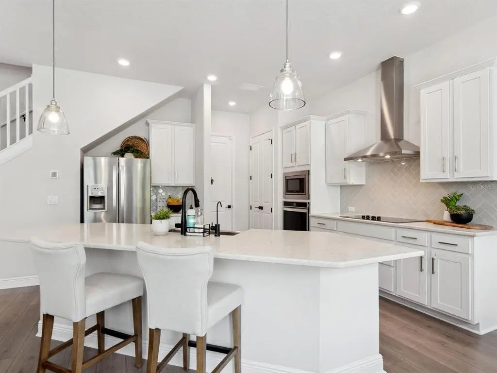 Welcome to this beautifully designed David Weekley home, in the desirable Payne Park Village in the heart of Sarasota. Built in 2020, this exceptional single-family residence features the unique and thoughtfully designed Littlebury floor plan, offering four bedrooms, 3.5 baths and approximately 2,711 square feet of sophisticated living space across three expansive levels. The first floor serves as the central gathering place of the home, boasting an open-concept layout that seamlessly connects the family room, gourmet kitchen and outdoor living space. At the center of the home, the gourmet kitchen impresses with white solid wood cabinetry, gleaming quartz countertops, and a suite of stainless-steel appliances, including a built-in oven, microwave, refrigerator and an electric cooktop. A large undermount apron-front farmhouse sink adds both charm and functionality, while the expansive island with seating provides a stylish hub for casual meals and conversation. Perfect for entertaining, this space flows effortlessly onto a newly enhanced outdoor living area featuring an oversized patio, lush tropical plantings, maintenance-free artificial turf and a privacy fence, ideal for relaxing or hosting gatherings year-round. Conveniently just off the kitchen, the attached two-car garage adds everyday practicality to this beautifully curated space and provides space for extra storage with two overhead storage racks. Many enhancements have been made with safety in mind, including hurricane-rated doors and impact windows, full home water system with a reverse osmosis system for drinking water and ultraviolet lights in the air conditioning space to avoid mold growth. Upstairs on the second floor, you'll find a serene and spacious primary suite flooded with natural light, soaring ceilings, a generous walk-in closet with custom built-ins, and a luxurious en-suite bath. The spa-like bath includes a double sink vanity, an oversized soaking tub and a sleek walk-in glass shower. Two additional guest bedrooms, a full bath, and a well-appointed laundry room complete this level. The third floor offers a private and flexible retreat, ideal for guests, a home office or media room. Here you'll find a 255-square-foot bonus room, the fourth bedroom with a walk-in closet, and another full bathroom with spacious, full double sink vanity, providing privacy and comfort. The neighborhood offers a large pool and dog park and is conveniently just steps from Payne Park, the Legacy Trail and moments from downtown Sarasota’s shopping, dining, cultural venues and Gulf Coast beaches, this home blends modern luxury with unbeatable convenience. Payne Park, formally a baseball spring training park, is now a 30-acre public park featuring a skateboard park, frisbee golf, tennis facilities, small waterpark and playground, an on-site café, and miles of recreational and biking paths around the park and lakes. Don't miss your opportunity to live in one of Sarasota’s most vibrant communities!