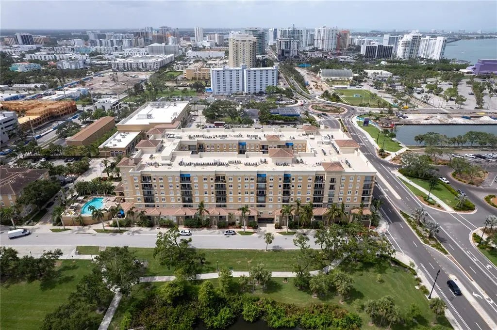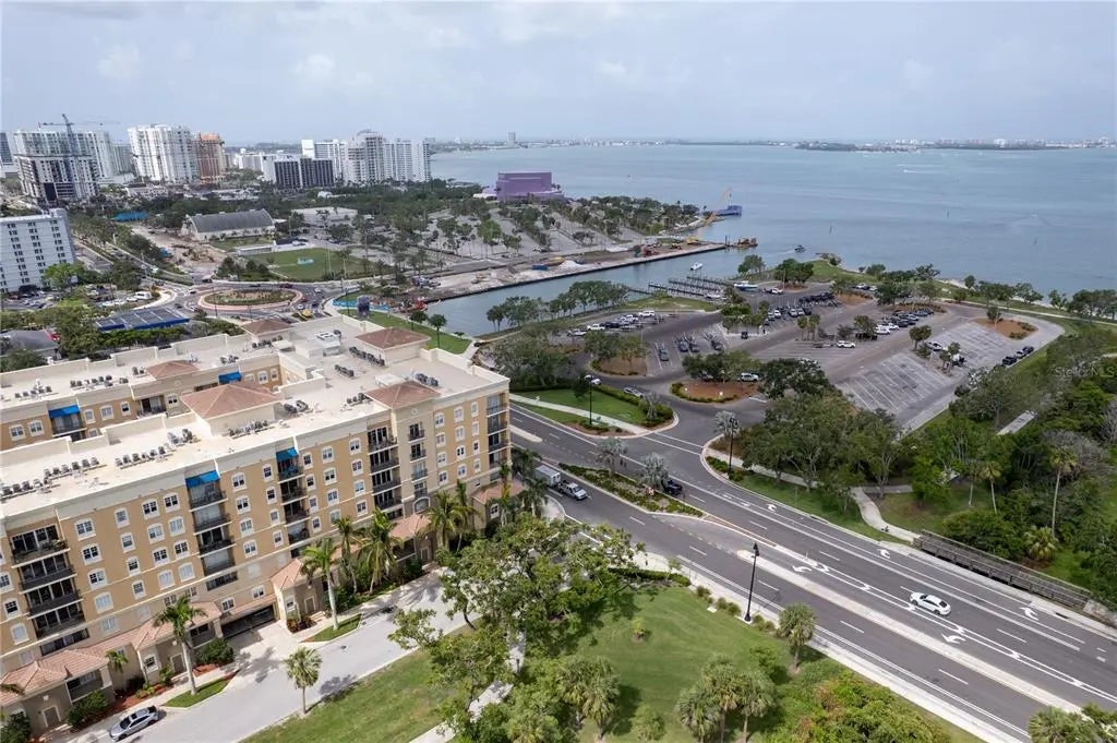 Modern Elegance Meets Downtown Sarasota Living – Pet-Friendly Parkside Oasis! Welcome to a rarely available gem in the heart of Sarasota’s vibrant Cultural Arts District, an impeccably updated first-floor corner condo that blends luxury, convenience, and lifestyle. This spacious 1,592 sq. ft. residence is one of the largest in the Broadway Promenade and features its own private street entrance directly across from lush Pioneer Park perfect for pet lovers who want to skip the elevator and step right outside with their dogs. High ceilings soar to 11 feet, creating an airy, light-filled space accented by designer lighting, contemporary ceiling fans, and custom Roman shades. A large, shaded balcony offers relaxing views of greenery and peekaboo bay scenes for your personal sanctuary in the city. The freshly painted interior features restored ceramic tile throughout the main living areas and brand-new luxury carpeting in the bedrooms. The open-concept living room flows seamlessly into a master suite that feels more like a boutique hotel, complete with floor-to-ceiling velvet wall panels and dramatic drapes. Both bathrooms have spa-inspired finishes, with the primary suite showcasing a sleek walk-in shower behind frameless Kohler glass and modern Moen fixtures. In the kitchen, sparkling quartz countertops, a flat-front stainless-steel Samsung fridge, Amana smooth-top range, and a suite of nearly new appliances (all under a year old!) complete the picture. But this home isn’t just about beautiful finishes it’s about lifestyle. Imagine walking your pup just steps outside your door into the newly revitalized Pioneer Park or launching your boat a few blocks away from the 10th Street Boat Ramp. Spend your evenings catching sunsets at The Bay Park, just across the street, or enjoy free concerts, yoga classes, movies, and mangrove walks. Downtown Sarasota, Lido Beach, and St. Armands Circle are minutes away, putting fine dining, boutique shopping, and world-class entertainment at your fingertips. Broadway Promenade offers top-tier amenities including a 24-hour concierge, heated saltwater pool and spa, two fitness centers, club room with bar, outdoor grills and kitchen, sauna, game rooms, guest suites, secure garage parking, library, and workspace in a pet-welcoming, community-focused environment. This unit isn’t just a home it’s a lifestyle upgrade.