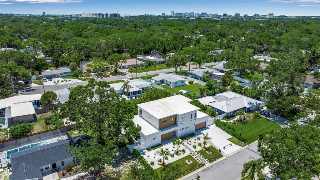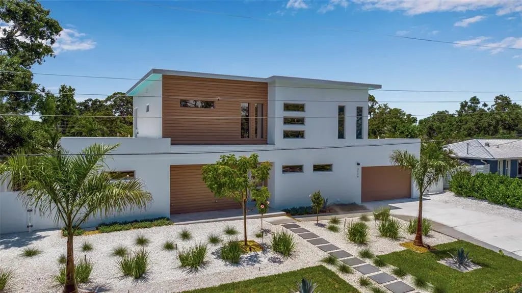 Welcome to 2124 Clematis Place, a newly completed, design-forward residence by Courtyard Modern in the heart of one of Sarasota's most desirable neighborhoods. Influenced by the Sarasota School of Architecture, this 6-bedroom, 6-bathroom home offers clean lines, bold scale, and seamless indoor-outdoor connection across 3,574 square feet of air-conditioned space. The main living area is defined by volume and natural light, with polished concrete tile floors and a minimalist material palette. Custom cabinetry, quartz countertops, and a suite of premium appliances set the tone in the kitchen, while the flexible floor plan allows space for work, guests, or a growing family. Step outside to a private courtyard oasis, complete with a saltwater pool and spa, fenced yard, and low-maintenance zeroscaping to allow for time to enjoy the amenities. Ideally located just minutes from downtown Sarasota, Southside Village, and Sarasota Memorial Hospital, with quick access to Siesta Key, Lido Beach, and St. Armands Circle. Arlington Park itself is just around the corner, offering lap swimming, tennis, a dog park, and year-round activity. In a neighborhood surrounded by custom homes and strong long-term fundamentals, this is a rare chance to own a modern architectural home that doesn't just look the part, it lives beautifully too. Schedule a showing today!