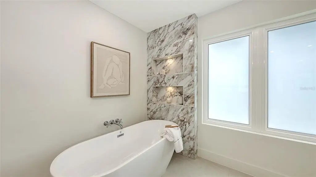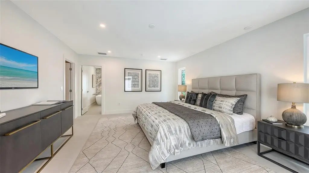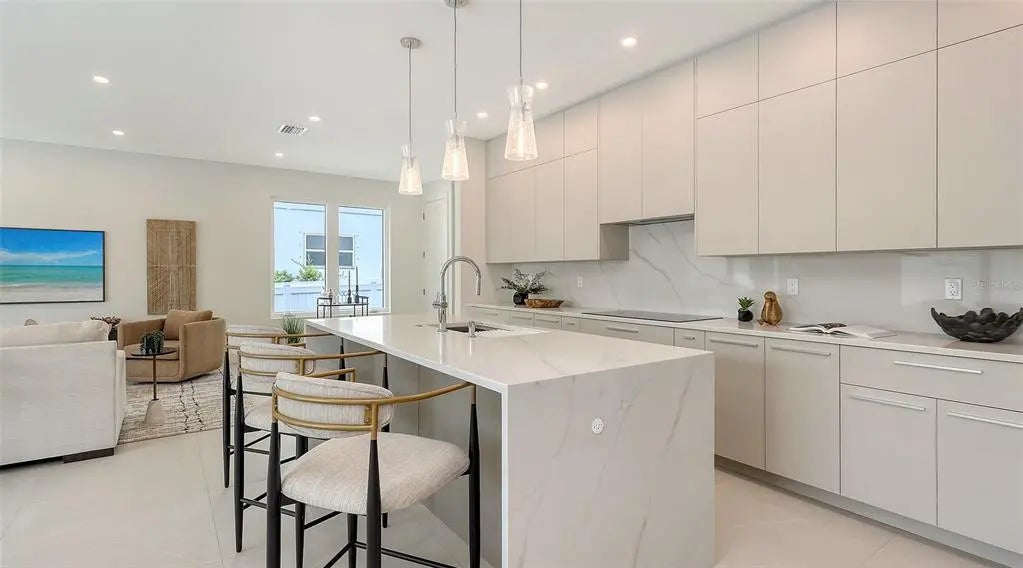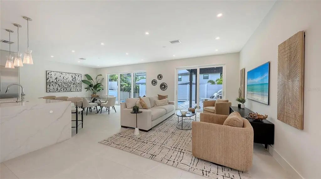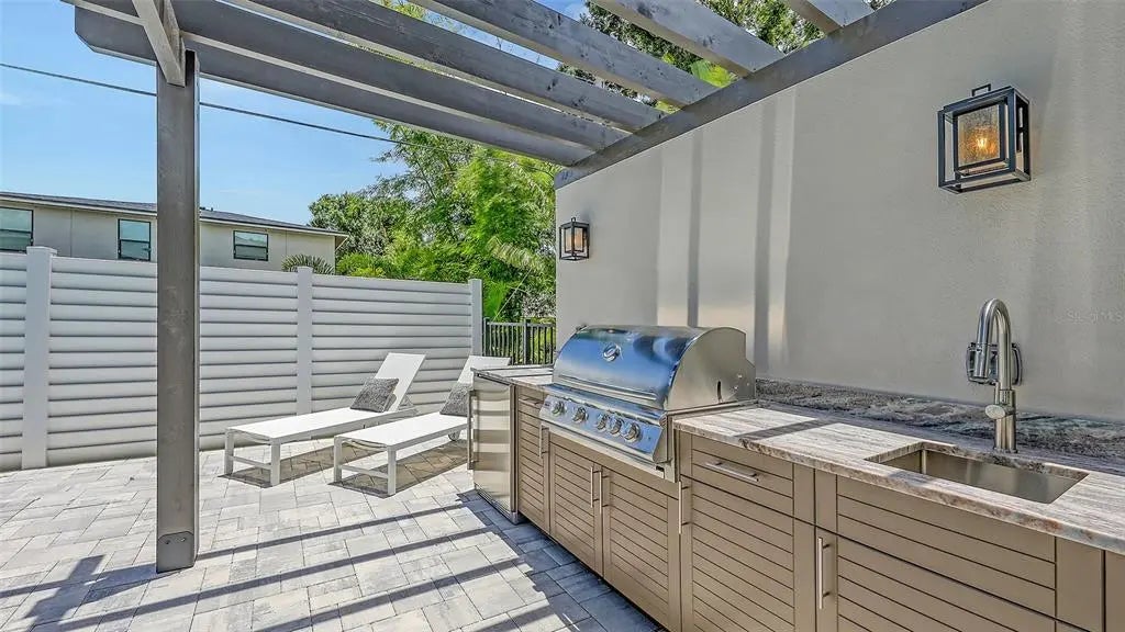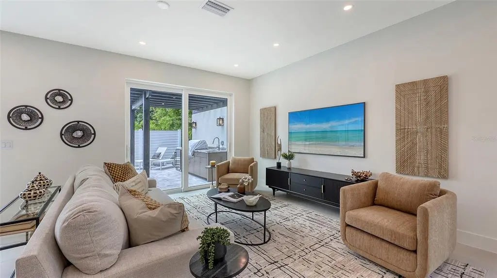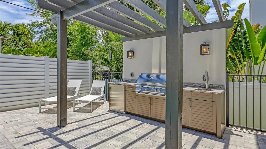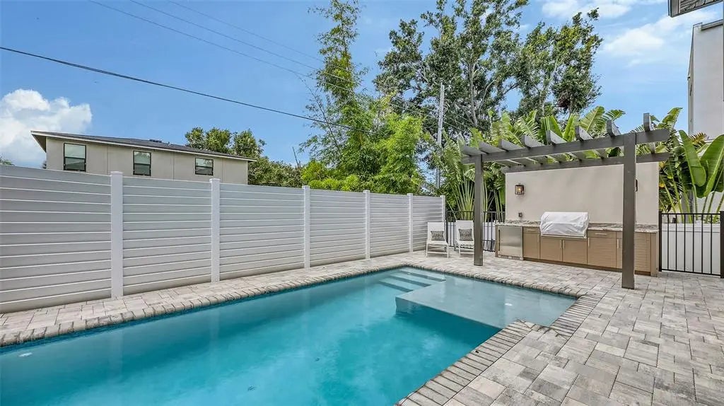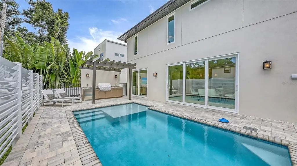 New Construction 2025 – 3 BEDROOM + DEN, 3.5 BATH home in Arlington Park. - Welcome to your dream home, ideally located in Rustic Lodge — one of the most desirable pockets within the sought-after Arlington Park neighborhood in the heart of Sarasota. Enjoy your own backyard oasis featuring a private heated saltwater pool and a fully equipped outdoor kitchen, complete with a Blaze burner grill, granite countertops, and a Zephyr beverage center. Beautiful pavers surround the outdoor entertaining space, while a grassy area offers the perfect spot for a garden or a place for pets to play. Step inside through a welcoming foyer adorned with custom porcelain tile flooring, which continues throughout the home in a large-format style for a seamless, elegant finish. Just off the entryway, you’ll find a spacious and private office. Continue into the open-concept living space, where the kitchen truly steals the show. Custom Studio Luxe cabinetry extends to the high ceilings, creating a stunning visual impact and maximizing storage. Quartz countertops are used throughout, including a full-slab backsplash and a dramatic waterfall island. The kitchen is outfitted with top-of-the-line Thermador appliances, including an induction cooktop, range hood, 42” built-in French door refrigerator, and a combination wall oven. Adjacent to the kitchen is a generous mudroom with built-in cabinetry, conveniently located near the entrance from the two-car garage, which features a durable epoxy-coated floor. Upstairs, each bedroom includes its own en-suite bathroom and walk-in closet with custom shelving to maximize space. The spacious primary suite includes a huge walk-in closet with a dedicated vanity area, while the primary bath offers a dual vanity, oversized walk-in shower, and a freestanding soaking tub. Throughout the home, you’ll find high-end finishes and fixtures, including Kohler plumbing fixtures, Daltile porcelain tile, Franklin Lighting, titanium pavers, a premium PGT window package, PVC vinyl fencing, and a sleek, wind-resistant 5V crimp metal roof. Additional features include a 21-foot-wide driveway, an irrigation system, outdoor lighting, and decorative window shutters. This home includes a one-year builder warranty and is perfectly located just minutes from downtown Sarasota, Siesta Key Beach, St. Armand's Circle, Sarasota Memorial Hospital, Legacy Trail, and top-rated local schools. Positioned within city limits, the property also qualifies as an excellent vacation rental opportunity. Private financing available.