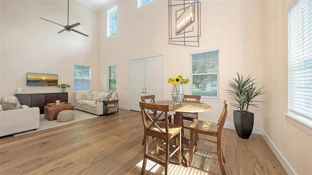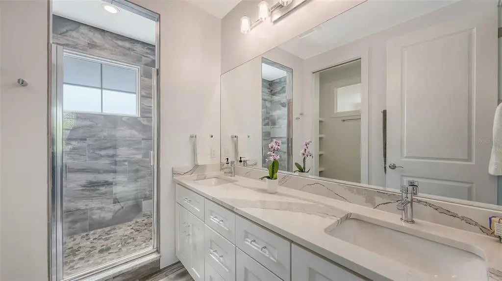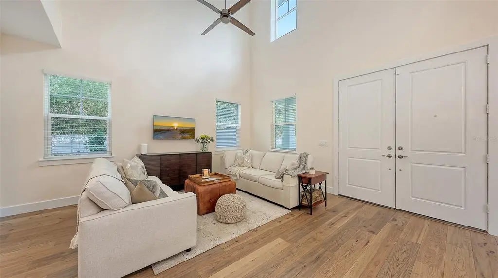Welcome to this elegant 2017 constructed 'better than new' home that combines the convenience of easy access to Sarasota’s best parks, markets, restaurants, and top-rated schools, with a quiet, friendly neighborhood— plus just a short drive to world-famous sugar-sand beaches of Siesta Key and Lido Beach. Nestled on a lush corner lot in the heart of highly sought-after Arlington Park, this 3-bedroom, 2.5-bathroom residence offers 1,969 heated Sq Ft of beautifully finished craftsman style living and a spacious 2-car garage. The home has been meticulously maintained and thoughtfully upgraded to satisfy the comfort and conveniences required by today's modern lifestyle. You’ll be immediately impressed by the pristine curb appeal and the drama of the grand foyer showcasing soaring 20+ foot ceilings, adding to the home's modern style and open feel. Thoughtful details abound, including crown molding, gorgeous hardwood floors, and exquisite finishes throughout, accented by an abundance of natural light. The formal living and dining rooms create an ideal space for entertaining, while the well-appointed chef’s kitchen is a true showstopper—complete with quartz countertops, custom solid wood cabinetry, stainless steel appliances, a large island, pendant and recessed lighting, and a beautiful backsplash. The kitchen overlooks the bright and inviting combined family and dining area, seamlessly connecting the heart of the home. Upstairs, the huge master suite offers a peaceful retreat, featuring plush carpeting, a spacious walk-in closet, and a luxurious en-suite bathroom with dual vanities and a stunning dual-head walk-in shower. Two additional light-filled bedrooms provide plenty of space for family or guests. Outside is your expansive covered brick-paved patio, perfect for quiet evenings or entertainment, all within a fully fenced backyard with ample room to add a pool. Lush landscaping has been strategically positioned to provide the home with privacy while maintaining a sleek contemporary theme. Additional upgrades include a new A/C unit, new gutters, new washer & dryer, an alarm system, insulated garage door, EV charger, and a new refrigerator. This move-in ready charmer is truly better than new, and offers it all — style, space, and a prime Sarasota location!