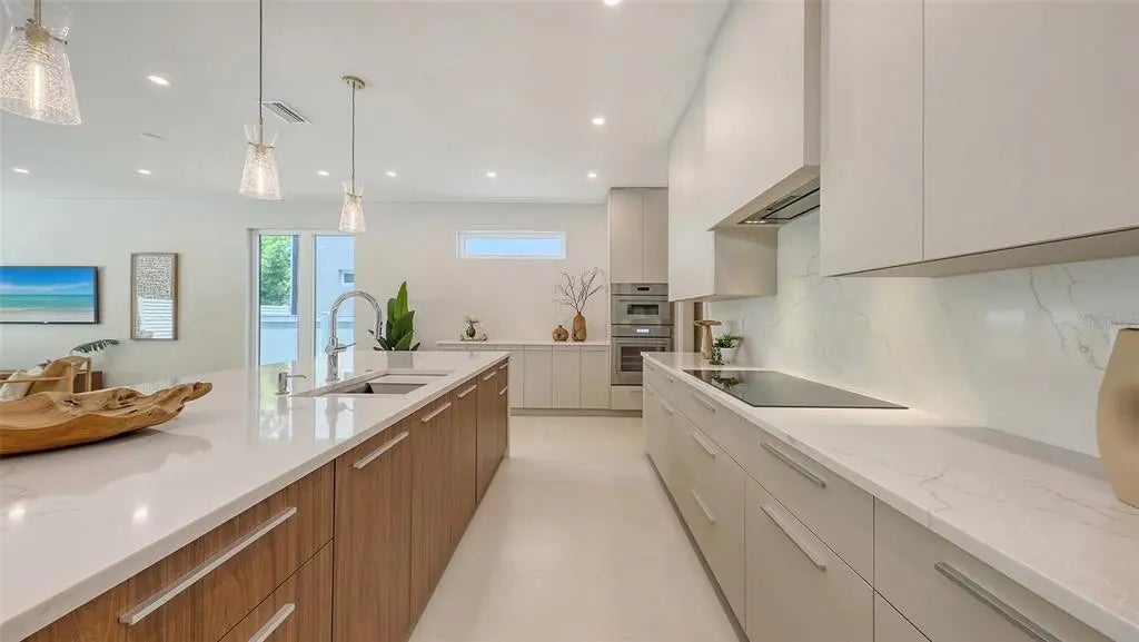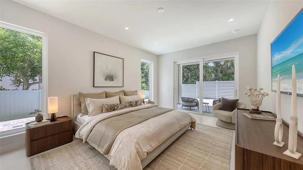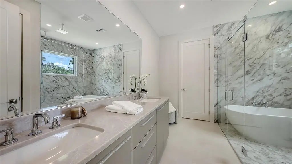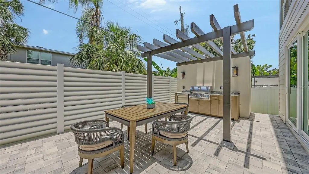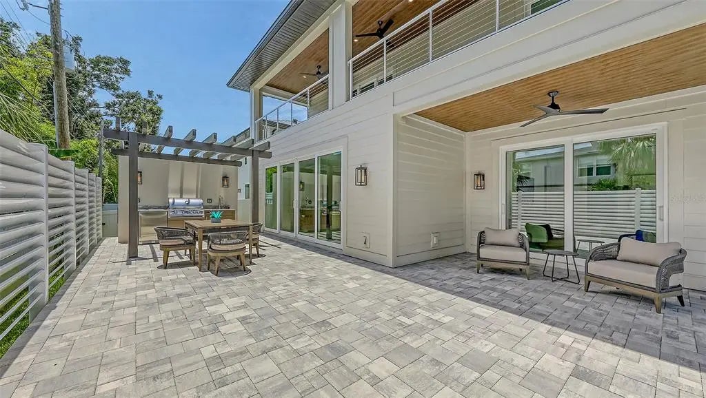 BRAND NEW 2025 – Seller is offering a $25,000 design credit and 10 free hours of consultation with an interior designer. Tucked away in Rustic Lodge, one of the most coveted corners of Arlington Park neighborhood, is just minutes from the energy & charm of downtown Sarasota. Enjoy a private outdoor sanctuary designed for elevated living. The heated saltwater pool and spa offers a resort-style escape, while the fully equipped outdoor kitchen — featuring a premium Blaze grill, granite countertops, and a sleek Zephyr beverage center — makes al fresco entertaining effortless. Beautifully laid pavers define the sophisticated space, and a generous green area adds a touch of tranquility — perfect for a garden, a game of fetch, or just lounging in the sun. Inside, large-format porcelain tile flooring creates a sleek and modern tone, flowing from the stylish foyer into a light-filled, open-concept living space designed for both comfort and sophistication. At the heart of the home lies a show-stopping chef’s kitchen, where floor-to-ceiling Studio Luxe custom cabinetry, quartz countertops, a full-slab backsplash, and a bold waterfall island deliver both elegance and functionality. The high-performance Thermador appliance suite — including a 42” French door refrigerator, induction cooktop, wall oven combo, and sleek range hood — brings professional-grade style to everyday cooking. Bonus cabinetry just off the kitchen adds a pop of style and extra storage while an oversized pantry holds all of your culinary essentials and keeps life feeling tidy. The built-in mudroom connects to the two-car garage that features a durable epoxy-coated floor. This home features four spacious bedrooms, each with its own ensuite bathroom and custom walk-in closet designed for effortless organization. The primary suite is thoughtfully located on the first floor for ultimate privacy and convenience, offering a luxurious walk-in closet and a spa-inspired bathroom with dual vanities, an oversized walk-in shower, and a freestanding soaking tub — the perfect place to unwind in comfort. Upstairs, you’ll find a bonus room and a large sitting area, giving you all the space you need for lounging, movie marathons, or game nights. Outdoor living is elevated with two beautiful balconies: a generous covered balcony along the entire width of the back of the home, and a quaint front-facing balcony on the second floor, ideal for quiet mornings or evening stargazing. Luxury details throughout include Kohler plumbing fixtures, Toto commodes, Daltile porcelain tile, Franklin Lighting, titanium pavers, premium PGT windows, PVC vinyl fencing, and a wind-resistant 5V crimp metal roof ready to take on the Florida elements in style. A 21-foot driveway, irrigation system, exterior lighting, and decorative shutters round out the curb appeal. Enjoy a one-year builder warranty, because in this home peace of mind pairs perfectly with luxury living. Located just minutes from downtown Sarasota, Siesta Key Beach, St. Armand's Circle, Sarasota Memorial Hospital, Legacy Trail, and top-rated schools, this property offers unmatched convenience. Plus, being within city limits means it qualifies for use as a vacation rental — making it a perfect choice for full-time living, a luxury retreat, or an investment opportunity. This is more than just a home — it’s a thoughtfully crafted lifestyle. Schedule your private tour today. Private financing available.