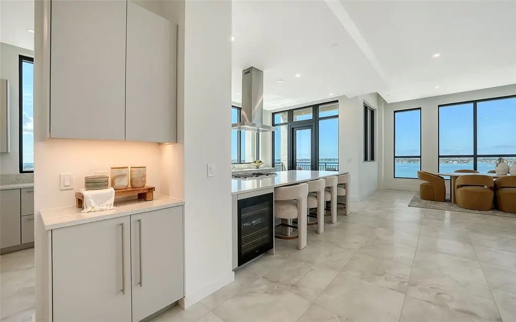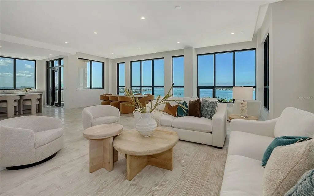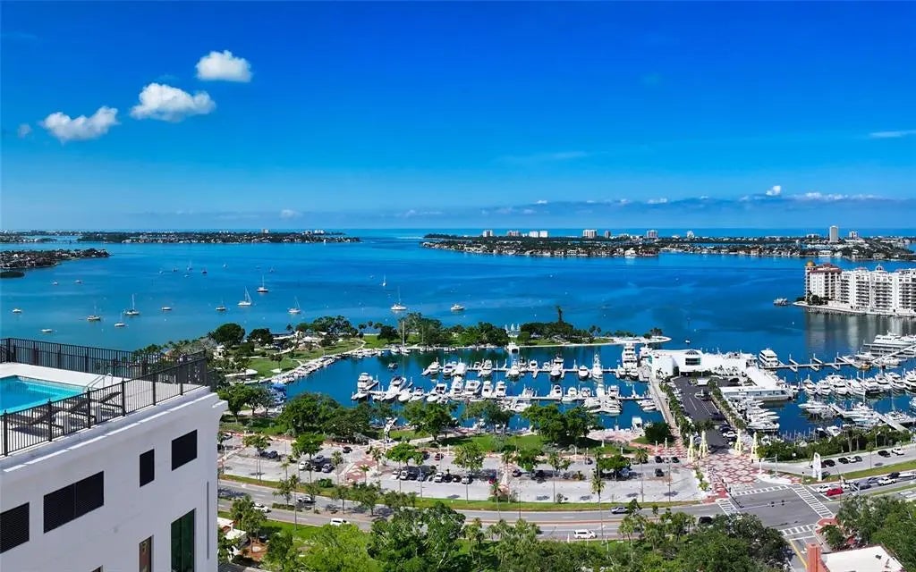 Penthouse Collection residence on the 15th floor of the newly-built DeMarcay, offering sky-high views of the city, Sarasota Bay, Big Pass, and beyond to the Gulf of Mexico. Best location in the city by the intersection of Main Street and Palm Avenue. Walk to art galleries, restaurants, boutiques, theaters, farmers’ market, city marina, wellness services, live music, and all downtown Sarasota amenities. Only three miles over the Ringling Bridge to St. Armands Circle and Lido Beach. DeMarcay stands alone in Sarasota for raising the amenities and pool to such impressive heights. Residents have exclusive access to a state-of-the-art fitness center and club lounge, as well as an outdoor kitchen, sparkling pool and expansive bi-level terrace on the 18th floor, all providing 360-degree vistas of Sarasota’s breathtaking scenery. Located on the 15th floor bayside, this elegant 3,407-square-foot residence has three private bedroom suites, an office/den, a powder room, an open living area, laundry facilities, and a private bayfront balcony. Volume ceilings and large windows maximize views and natural light throughout. The gourmet kitchen showcases imported Italian cabinetry, quartz countertops, a Miele five-burner gas cooktop, and seamlessly integrated Miele appliances. The primary suite offers a spa-inspired ensuite bath featuring designer Italian cabinets, porcelain undermount sinks, an elegant soaking tub, and a spacious walk-in shower. Residents enjoy 24/7 access to dedicated on-site staff for personalized services. The DeMarcay is an 18-story boutique condominium community of only 39 residences that uniquely blends modern luxury with Sarasota’s rich history. The development thoughtfully preserves and restores the historic facades of the original DeMarcay Hotel, built in 1922, and the Roth Cigar Factory, which operated from 1923 to 1938. This fusion of historic charm and contemporary design creates a distinctive living experience. Live the good life at DeMarcay — luxurious and casual — so Sarasota! Please note that some images are artist renderings representative of the interior finishes and may not exactly match the actual finishes of this residence.