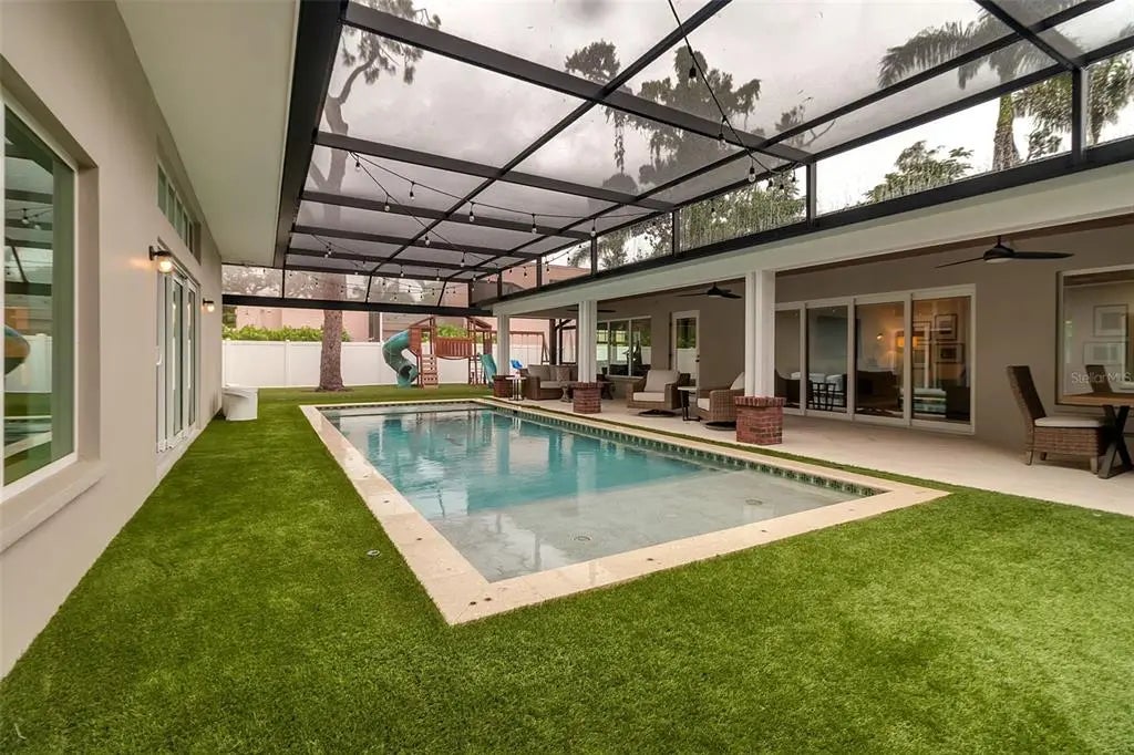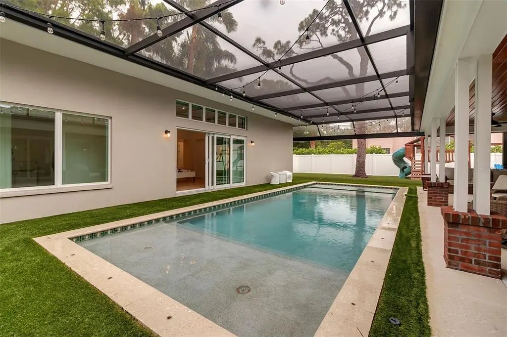 Ensconced in the heart of the highly esteemed West-of-Trail Avondale neighborhood, this stunning 5-bedroom, 4.5-bath, 4400 square foot residence seamlessly blends timeless charm with modern luxury. Situated on a rare 14,750 sq ft oversized lot, the original 1952 home was extensively renovated and thoughtfully expanded in 2022, more than doubling its original square footage—all on a single level. Step inside to discover an open-concept layout designed for both comfort and entertaining, featuring a state-of-the-art kitchen with custom cabinetry, high-end appliances, a spacious eating area, and an impressive full butler’s pantry. The kitchen flows effortlessly into the elegant dining room and the great room, all bathed in natural light and finished with premium materials throughout. The home offers a separate formal living room and a versatile bonus room overlooking the pool—ideal for a home office, library, or sunlit sitting room. The owner's suite features sliding glass doors to access the pool, transom windows that filter in natural light, two walk-in closets, and top of the line finishes in the spa-like bath. The guest wing offers an over-sized bedroom, perfect for a home gym or private in-law suite, and provides privacy and flexibility for guests or multigenerational living. Every detail has been meticulously curated, from designer finishes to thoughtful storage solutions. Outside, enjoy lush landscaping, generous green space, and the perfect setting for outdoor entertaining. The lap pool and spa offer privacy and access to indoor-outdoor living spaces. All of this is located in the highly sought after Southside Elementary School district, and within walking distance to downtown Sarasota and Southside Village, placing dining, shopping, and cultural attractions just steps from your door.