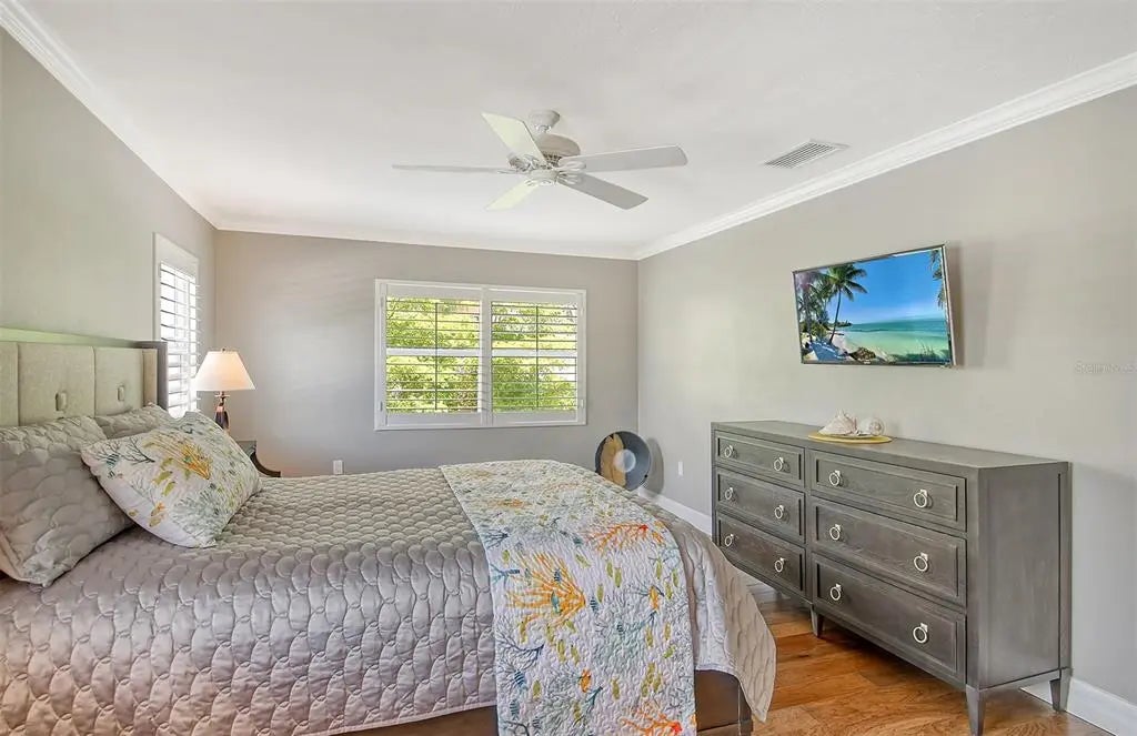 - Interior FeaturesCeiling Fan(s), Crown Molding, Eating Space In Kitchen, Kitchen/Family Room Combo, Living Room/Dining Room Combo, Open Floorplan, Primary Bedroom Main Floor, Solid Surface Counters, Solid Wood Cabinets, Window Treatments