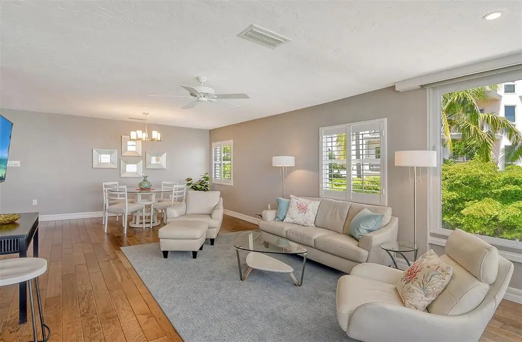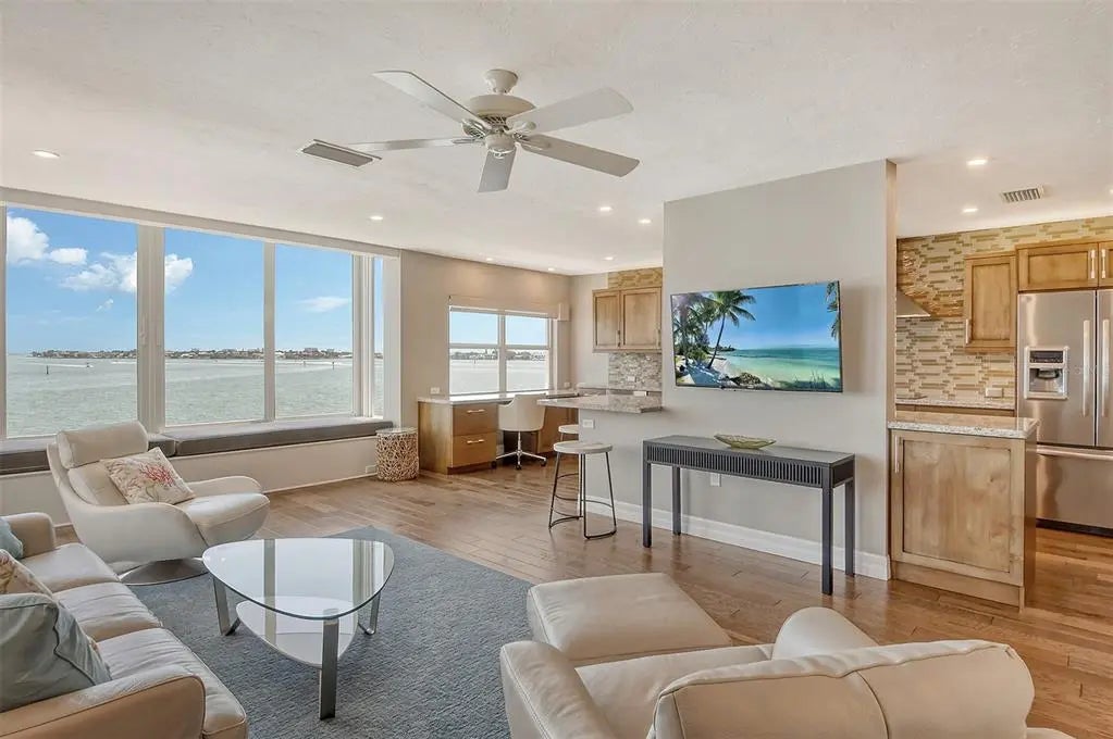 Experience Exquisite living at Harbor House South, where every moment is framed by breathtaking 180-degree Southerly views across Sarasota Bay. This stunning 3rd-floor, 2-bedroom, 2-bath end unit offers an expansive array of windows, the large one incorporates a cozy window seat that invites you to savor ever-changing vistas of the bay. From the privacy of your home, witness marine wildlife, yachts, and sailboats gliding by, all while enjoying the stunning daily show of sunrises and sunsets. Elegant and thoughtfully designed, this home boasts high-end finishes including porcelain tile, crown molding, plantation shutters, solid core doors, and spa-inspired bathrooms. Ideal for both entertaining and relaxation, the open and well-appointed floor plan features a spacious living and dining area, as well as a built-in office perfectly positioned to face the water. The chef's kitchen is a culinary dream with soft-close wood cabinets, quartz countertops, a state-of-the-art induction cooktop with stainless steel hood, a built-in convection oven, microwave, and a striking counter-to-ceiling glass-tiled accent wall. Perfectly situated near Marina Jack, the Ringling Bridge, and Downtown Sarasota, this private oasis is just minutes from everything Sarasota has available. Discover the perfect blend of luxury, privacy, and convenience. Add this exceptional residence to your must-have list today!