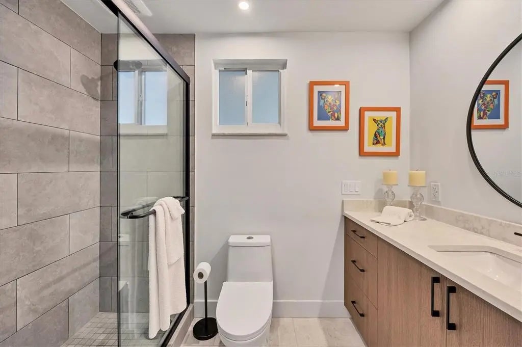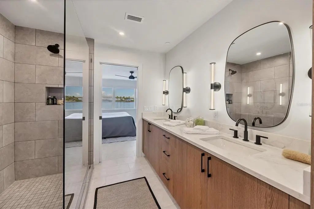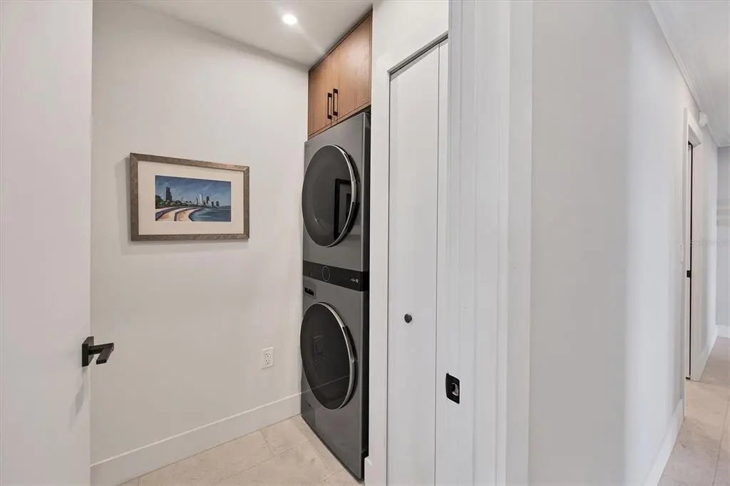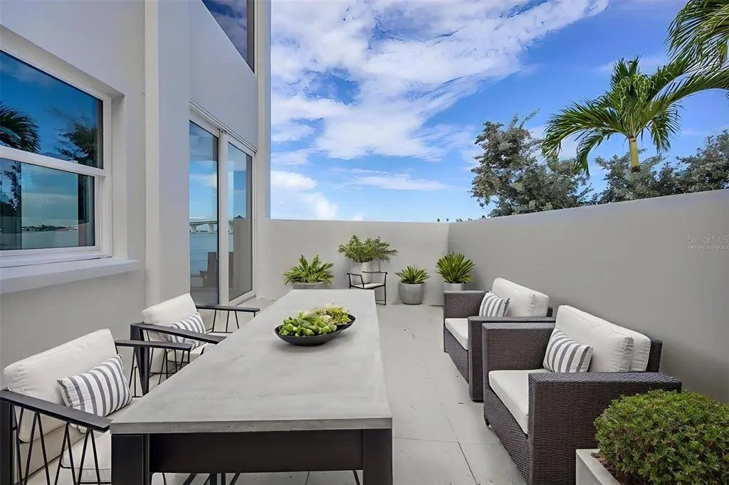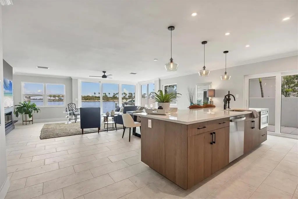 One or more photo(s) has been virtually staged. Positioned on Sarasota’s sought-after Golden Gate Point, this exceptional Harbor House West residence combines waterfront luxury with the ultimate in city convenience. Just moments from the vibrant energy of downtown, enjoy effortless access to world-class dining, boutique shopping, cultural venues and waterfront promenade, all while returning home to a serene retreat with captivating views of Sarasota Bay, the Ringling Bridge and the barrier islands beyond. Reimagined in 2025, this residence showcases a fresh, refined aesthetic and thoughtful enhancements that make it the remarkable home it is today. Go through the glass front door into a light-filled open layout enhanced by tile flooring and crown molding in the main areas. The great room centers around a striking fireplace accent wall, while a wall of sliders frames an unforgettable panorama of the bay and bridge, where the water glistens by day and sunsets ignite the sky each evening. Just beyond, a concrete-enclosed patio offers a private setting for dining and lounging against the stunning waterfront backdrop. The beautiful new kitchen is a showpiece, featuring GE stainless steel appliances, including an induction cooktop, microwave drawer, and oven, plus a Fisher Paykel refrigerator, quartz countertops, tile backsplash and abundant wood cabinetry with upgraded hardware. A convenient laundry room with a stackable washer and dryer and extra storage enhances everyday functionality. Three spacious bedrooms ensure comfort and privacy. The primary suite boasts an expansive custom walk-in closet, oversized window with breathtaking bridge and bay views, and a spa-like bath with a long dual-sink vanity, linen cabinet and walk-in shower. Two guest suites each offer large closets and picture windows with water views. Additional highlights include assigned covered parking accessible from the unit with EV charger wiring run to carport ceiling for future installation, a day dock, ample guest parking, and pet-friendly living. Harbor House West provides a secure, well-managed community in a prime waterfront setting, delivering a balance of coastal serenity and downtown sophistication.