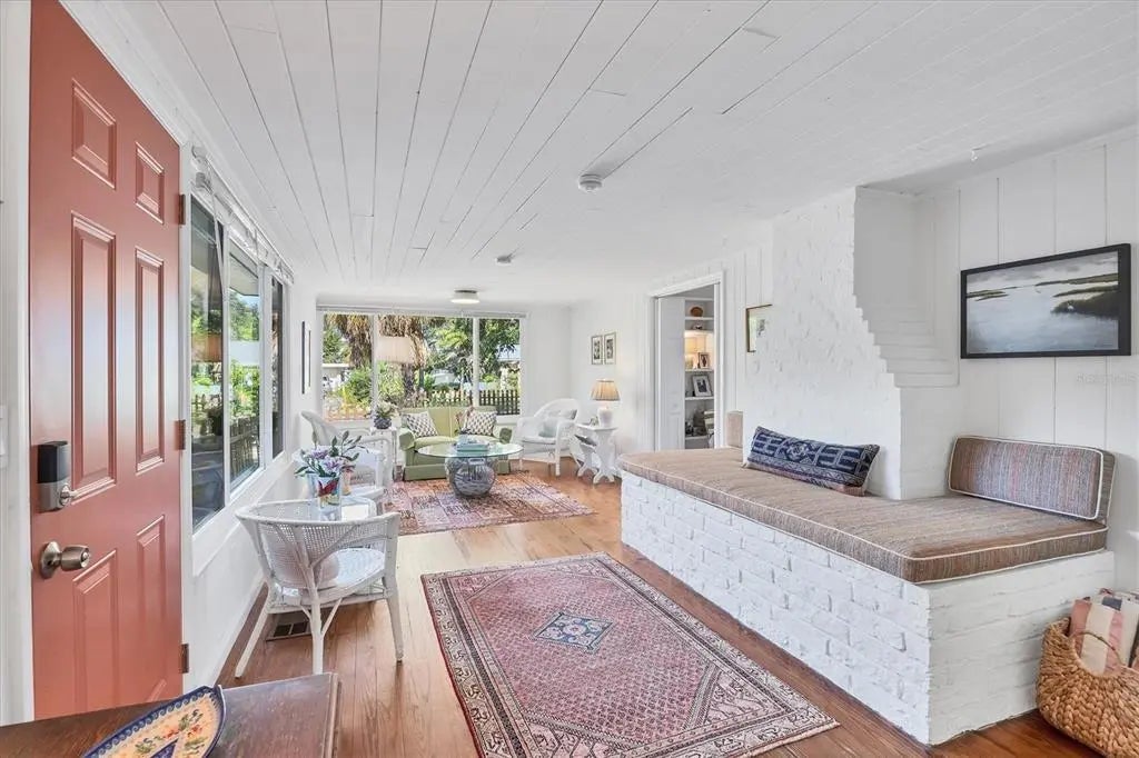 WEST OF TRAIL CHARM, NOT IN A FLOOD ZONE AND JUST MERE BLOCKS TO SARASOTA BAY SUNSETS! THIS TROPICAL BUNGALOW IS YOUR IDEAL SARASOTA OASIS! Your charming tropical oasis awaits in the desired neighborhood of Indian Beach, located west of trail just blocks from Sarasota Bay! Step into this meticulously cared-for and loved bungalow, where classic charm meets modern tranquility, just moments from downtown and sugary-sand beaches. This spacious and inviting home immediately embraces you with its warm ambiance, enhanced by beautiful hardwood floors flowing throughout, combined with modern touches and an inviting, cozy flair. Thoughtfully renovated and beautifully painted inside and out, every detail reflects pride of ownership. Enjoy unparalleled serenity and protection with hurricane windows installed on each and every window (2025), including the skylight, ensuring both abundant natural light and storm protection. A newer roof (2021) and newer a/c (2023) will add to your peace of mind. Beyond the captivating interior, discover outdoor living with a courtyard ideal for your potted plants, colorful flowers or simply a space to savor your morning coffee. Enjoy a natural element to your outdoor space, with a beautiful, fully private, spa-like outdoor shower to refresh under the stars, after a day at the beach or an invigorating start to your day! This bungalow's unbeatable location is key to a coveted lifestyle. You're just minutes from Sarasota's vibrant downtown, offering endless dining and entertainment options, a short drive from the area's pristine beaches and mere minutes to Sarasota International Airport. Don't miss the opportunity to own this Indian Beach gem- A true blend of charm, comfort, and coastal convenience!